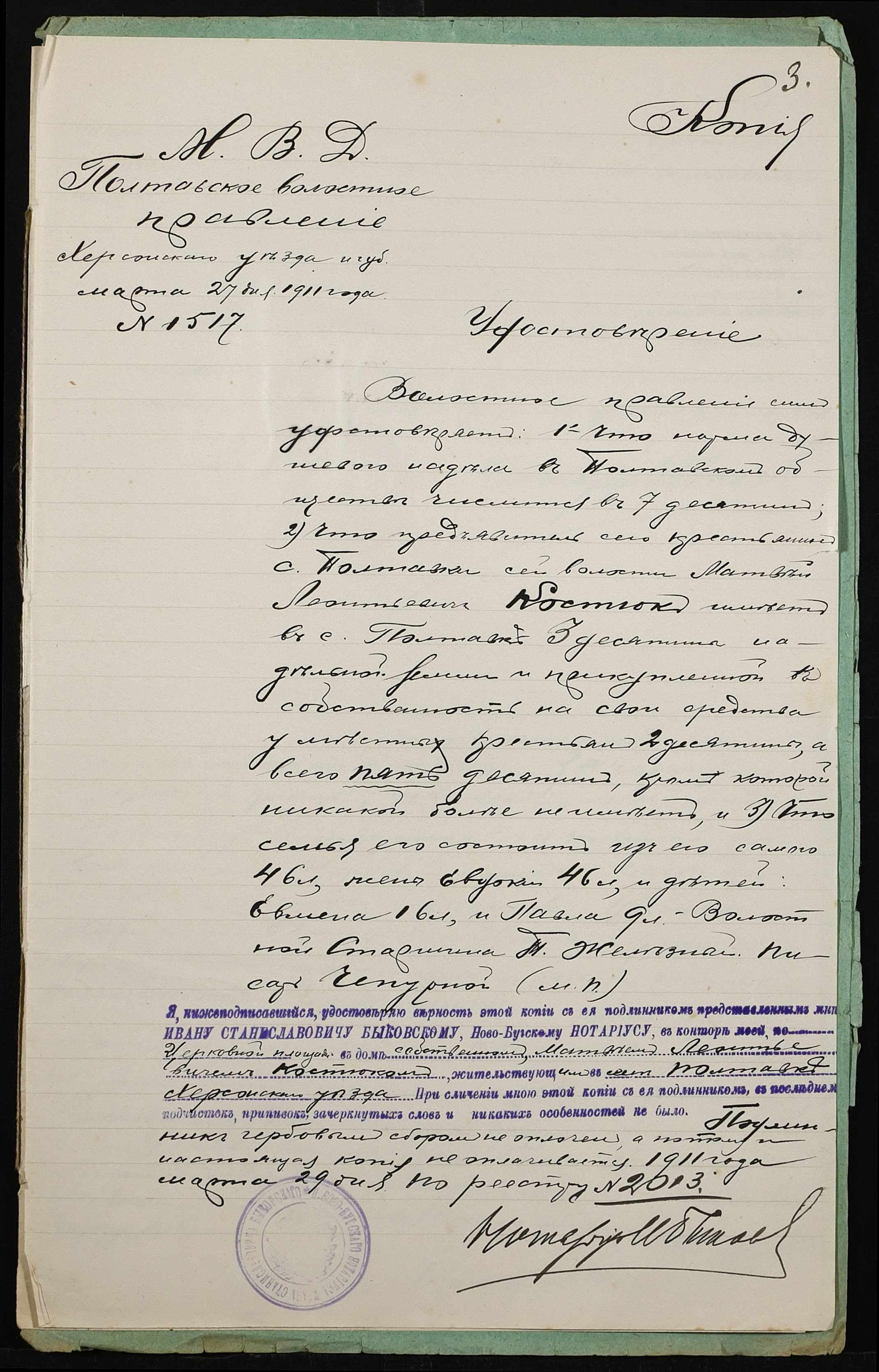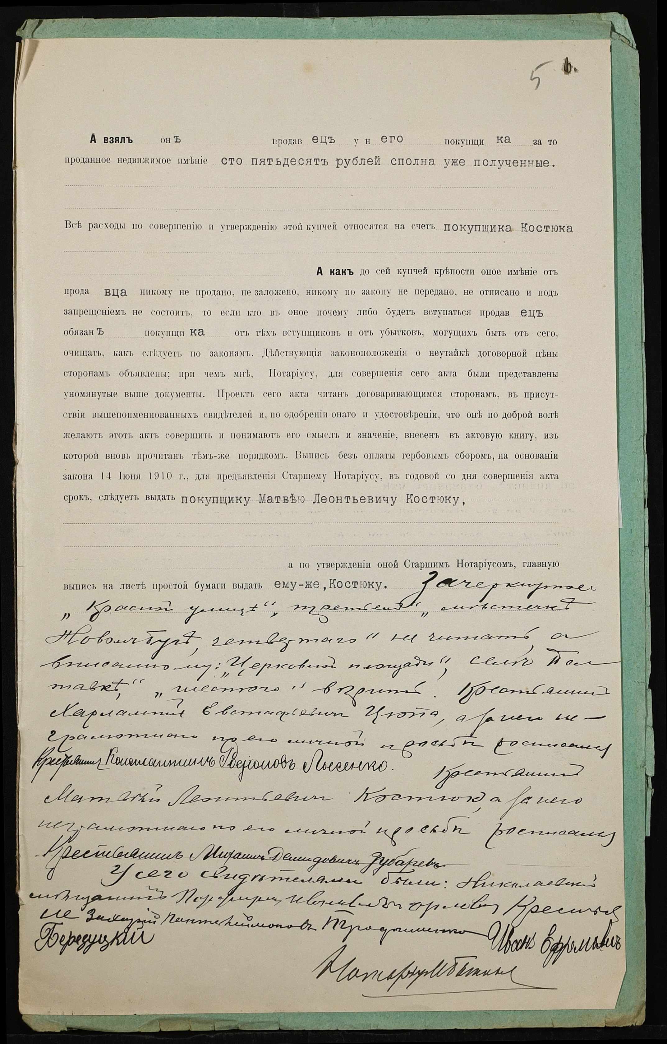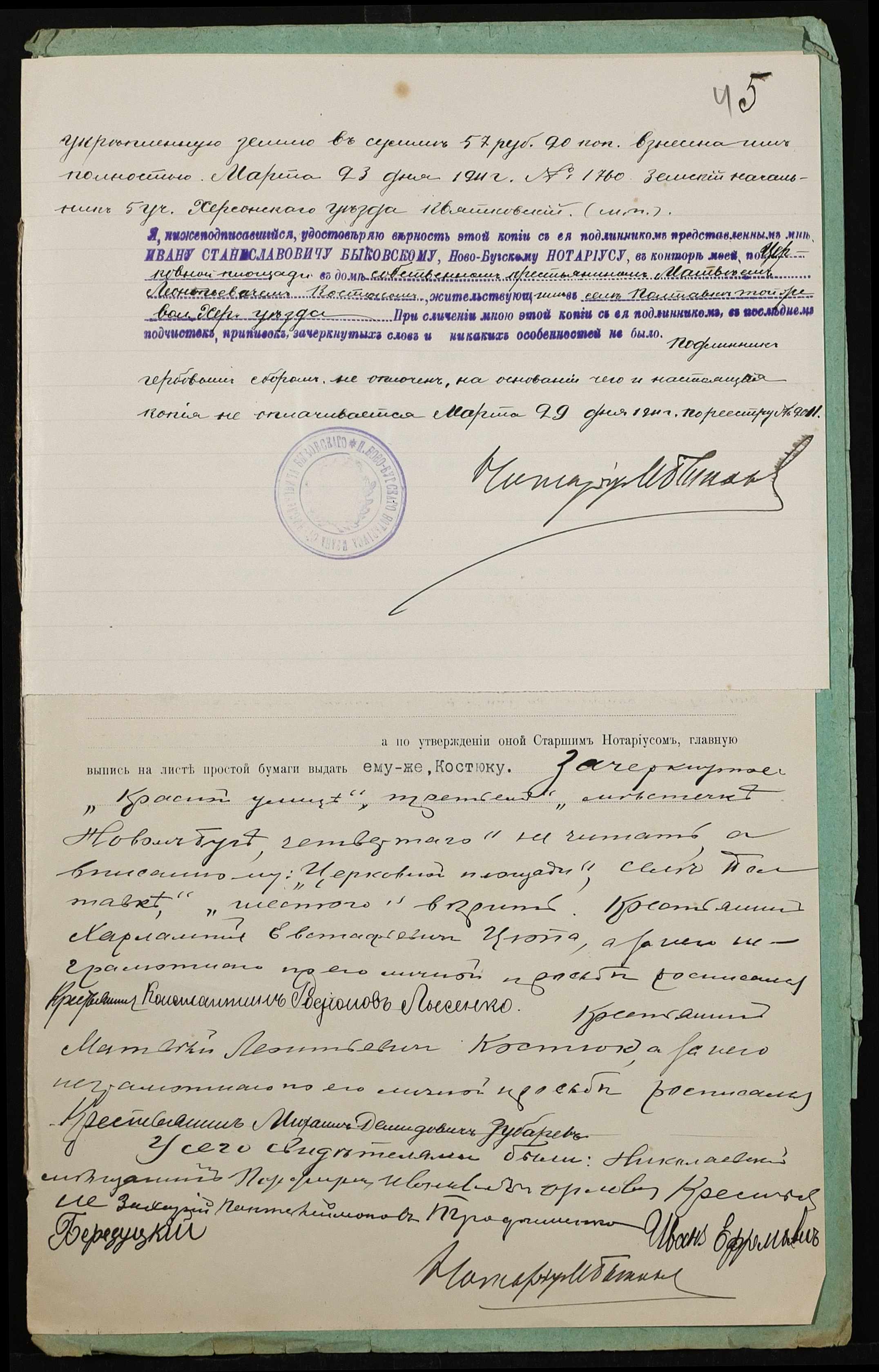 • • • • Справа № 401 “Справа про вчинення купчої про продаж землі селянином Цюпою Харлампієм Євстафійовичем (Цюпой Харлампием Евстафьевичем) на користь селянина Костюка Матвія Леонідовича (Матвея Леонидовича)”