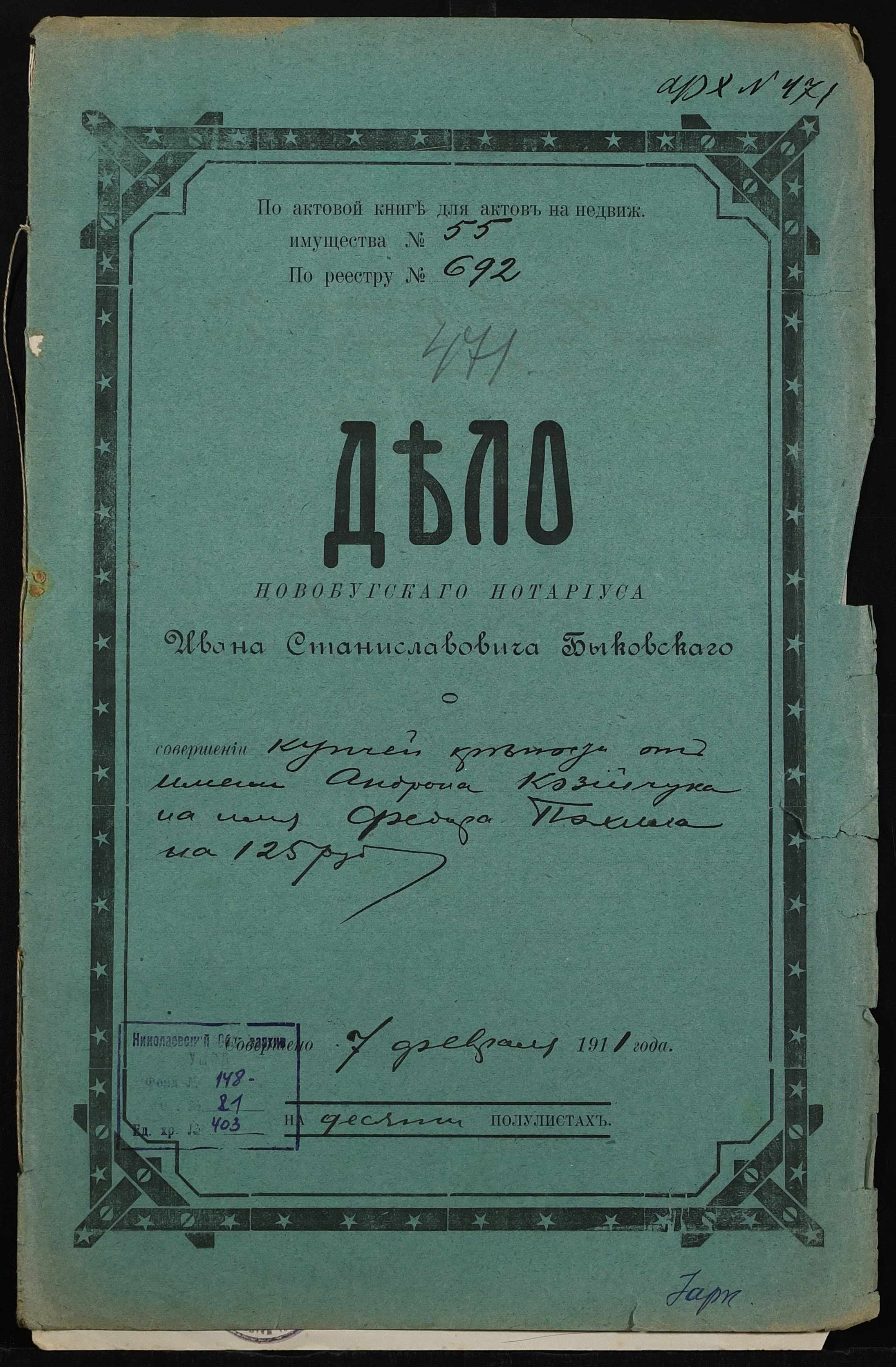 ◦ ◦ Фонд № 148 “Контора новобузького нотаріуса Биковського Івана Станіславовича”