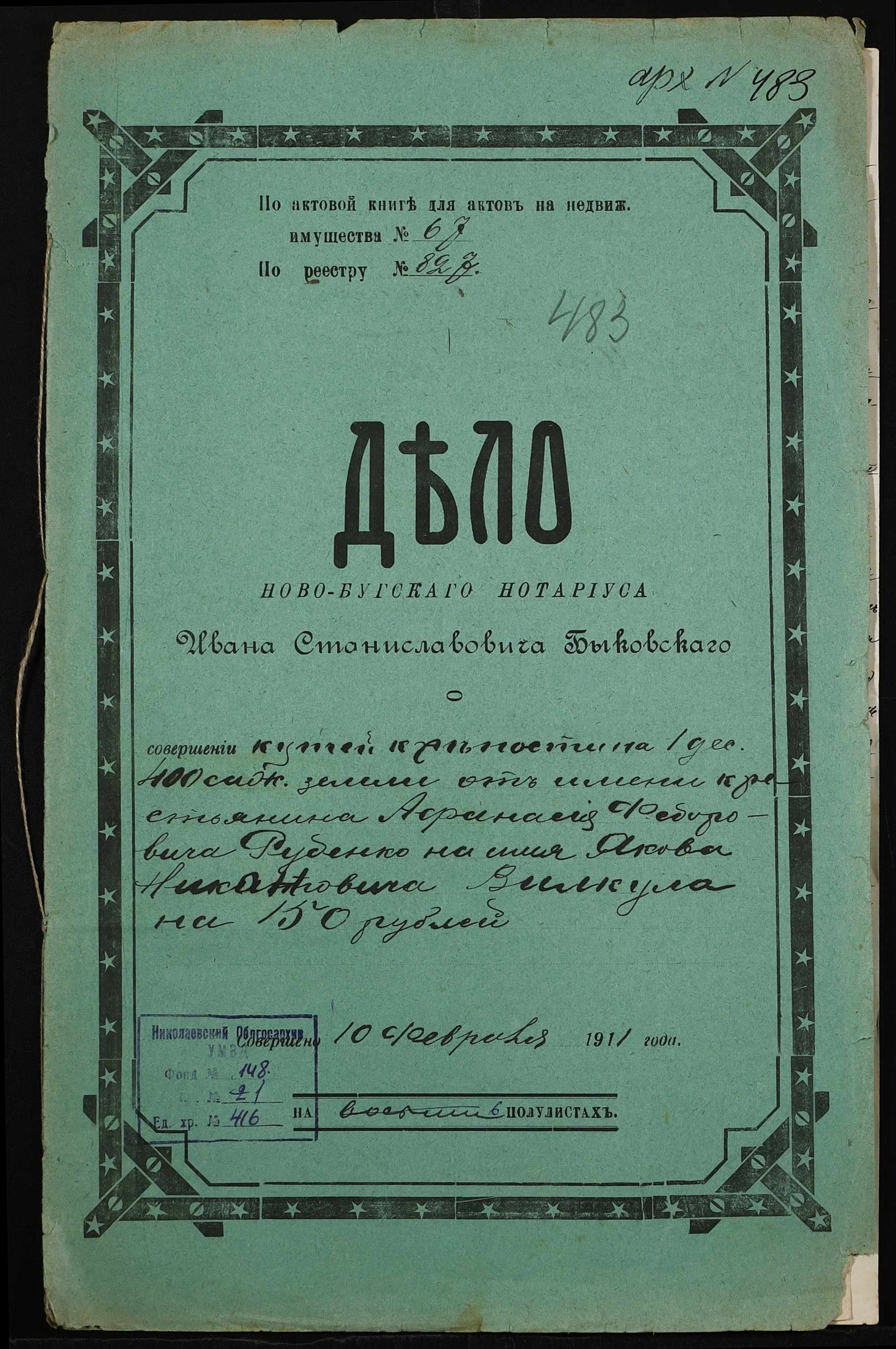 ◦ ◦ Фонд № 148 “Контора новобузького нотаріуса Биковського Івана Станіславовича”
