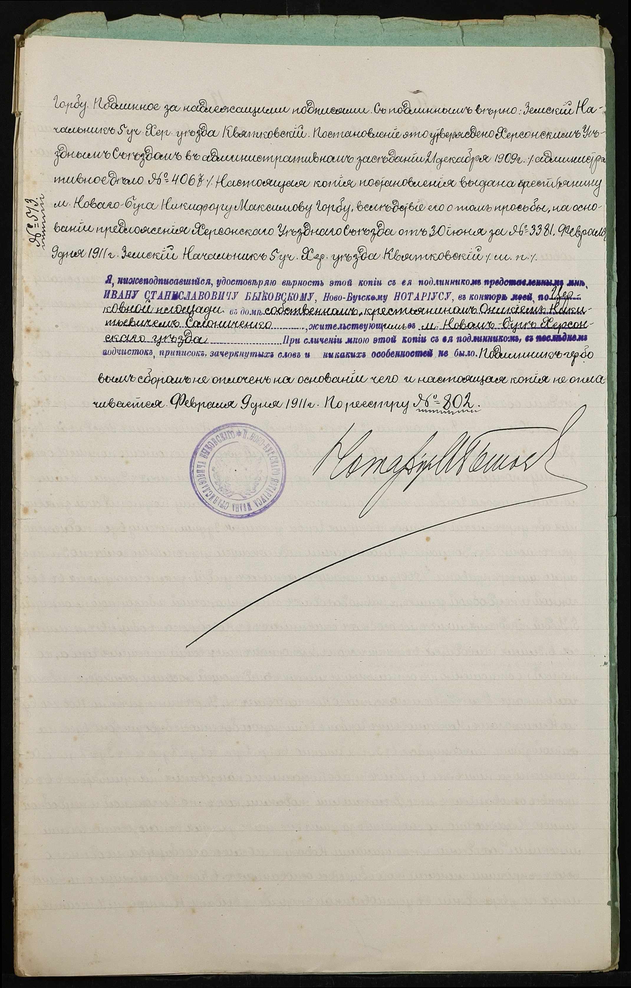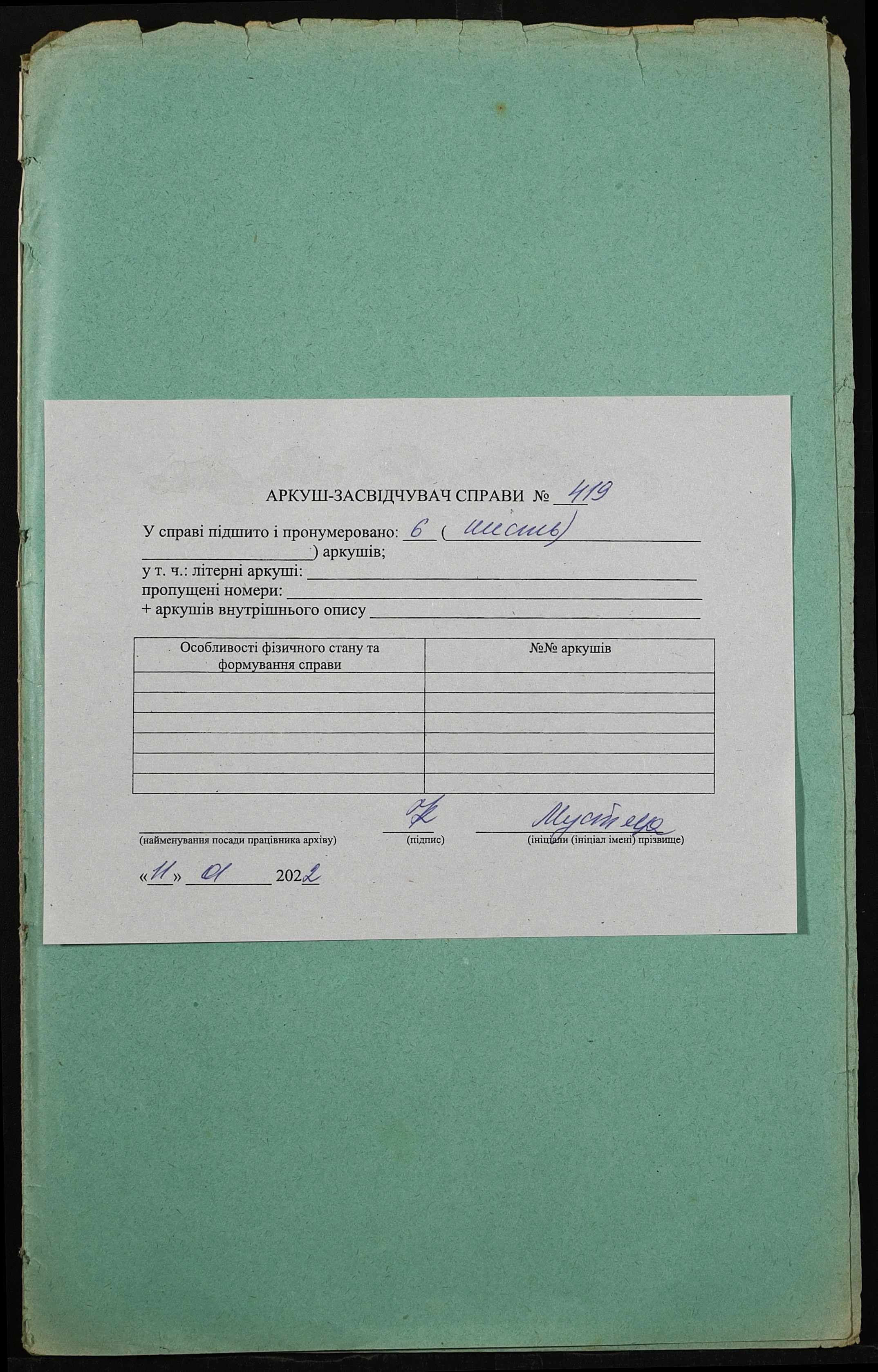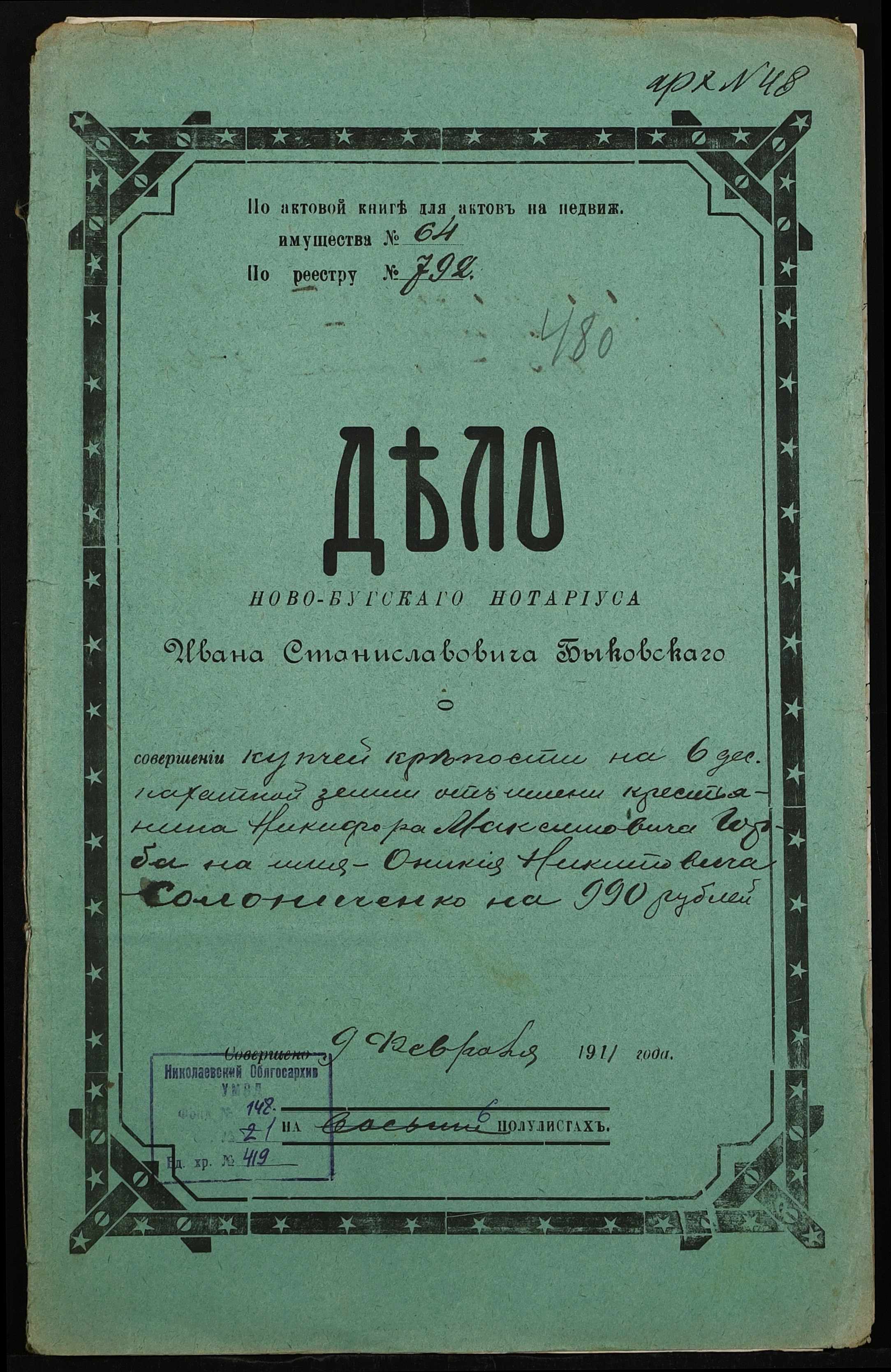 • • • • Справа № 419 “Справа про вчинення купчої про продаж землі селянином Горбом Никифором Максимовичем на користь селянина Солониченка Оникія Микитовича (Солониченко Аникия Никитовича)”
