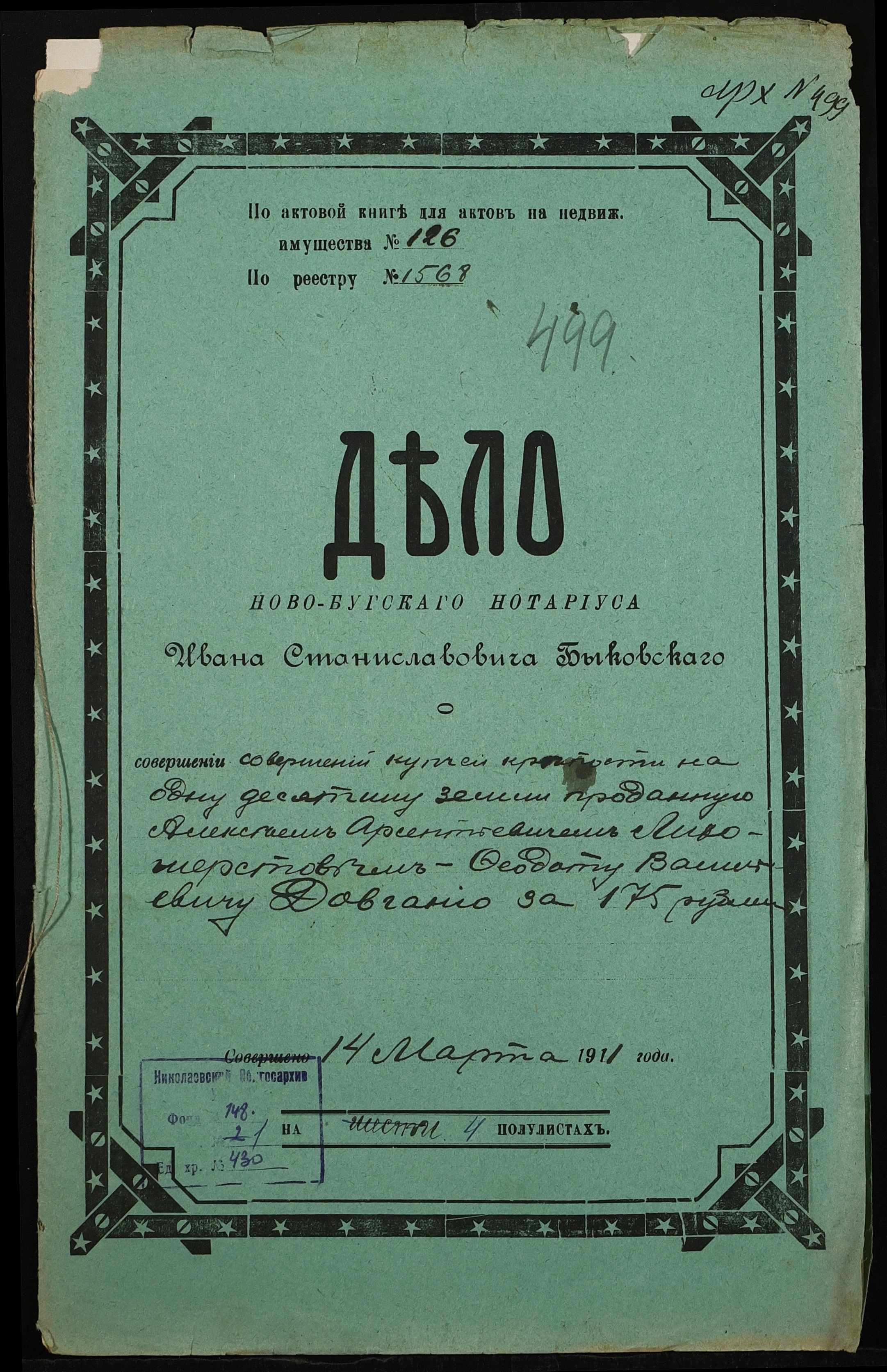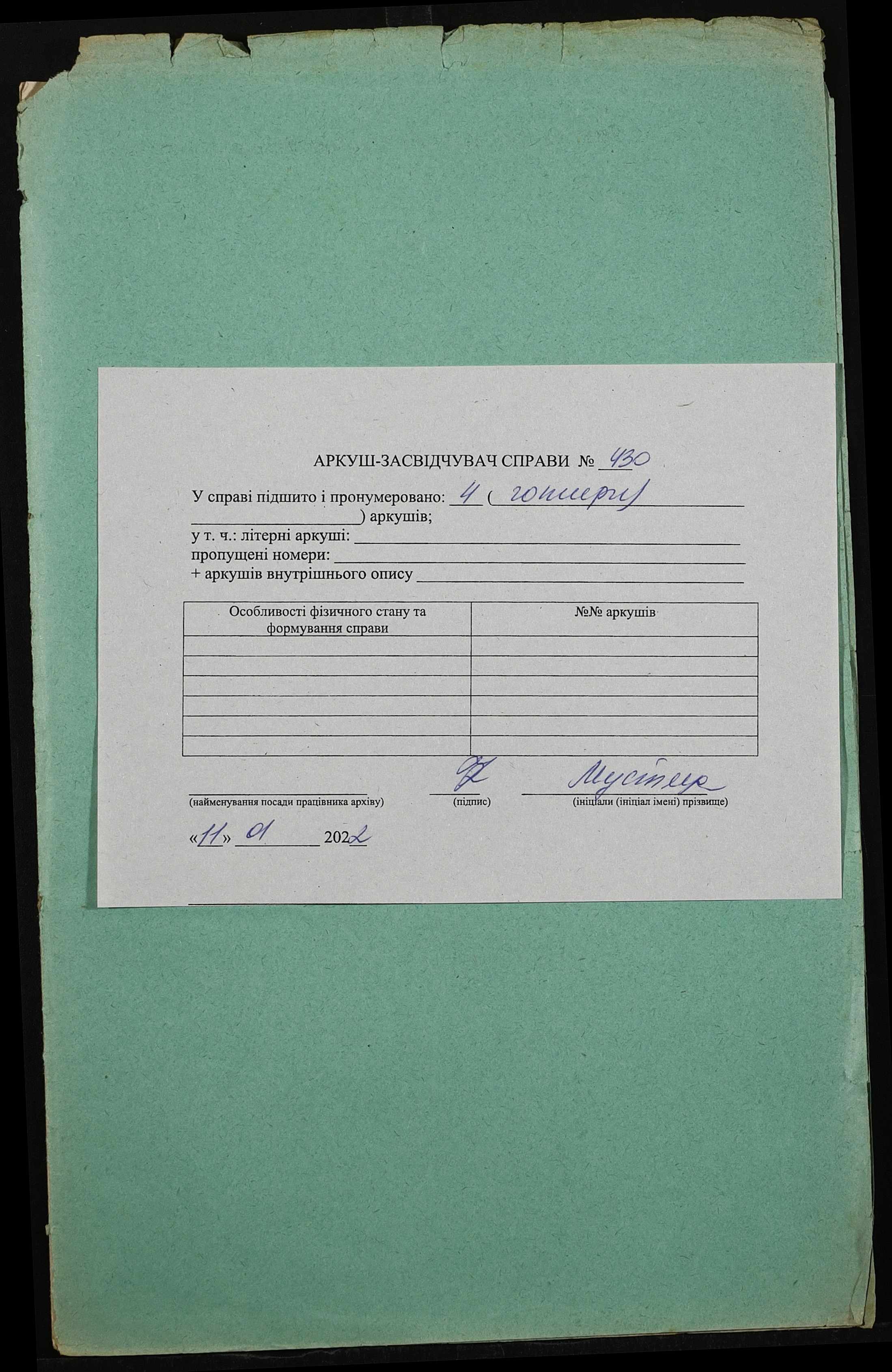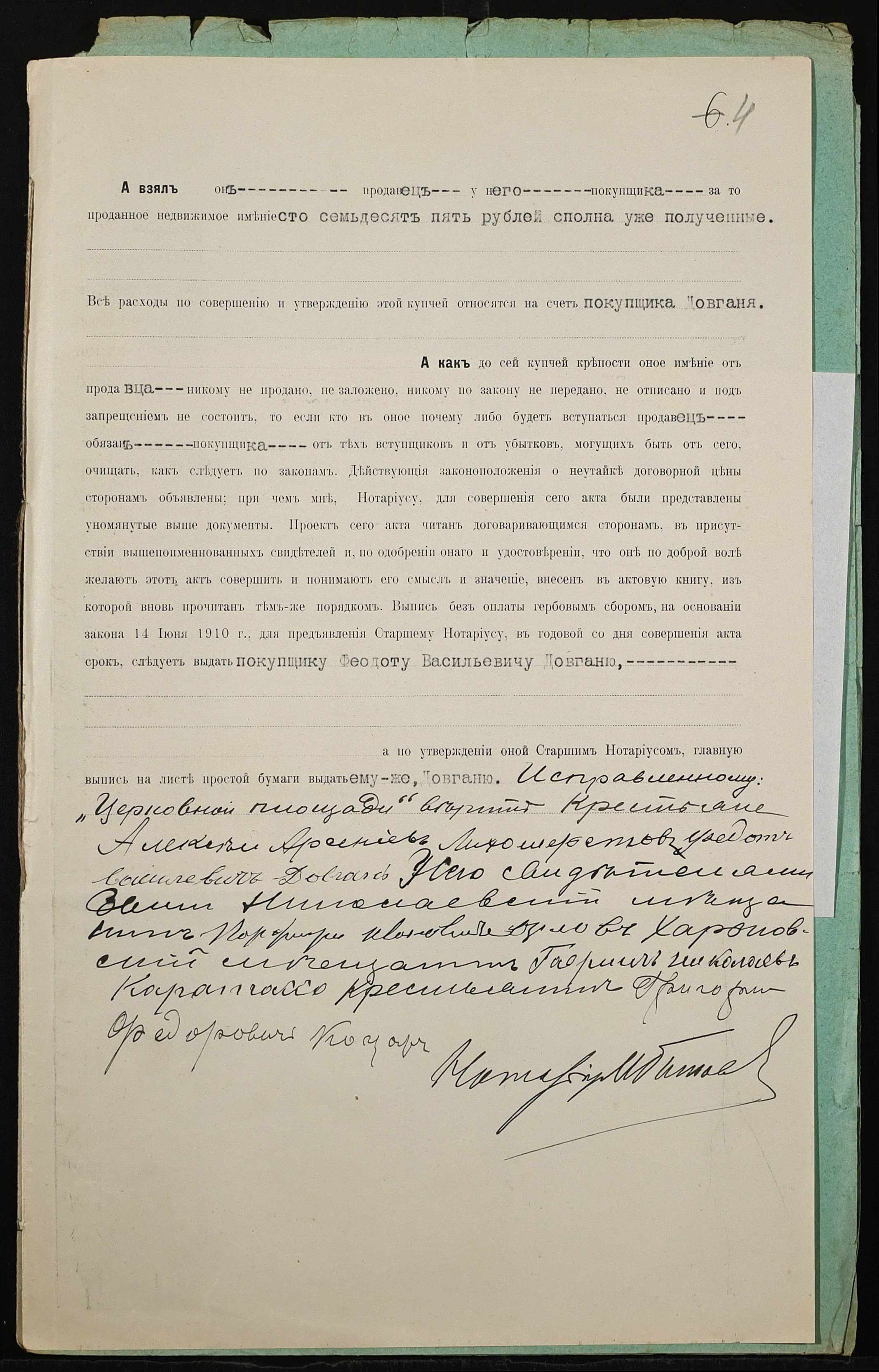 • • • • Справа № 430 “Справа про вчинення купчої про продаж землі селянином Лихошерстовим Олексієм Арсентійовичем (Лихошерстовым Алексеем Арсентьевичем) на користь селянина Довганя Федота Васильовича (Васильевича)”