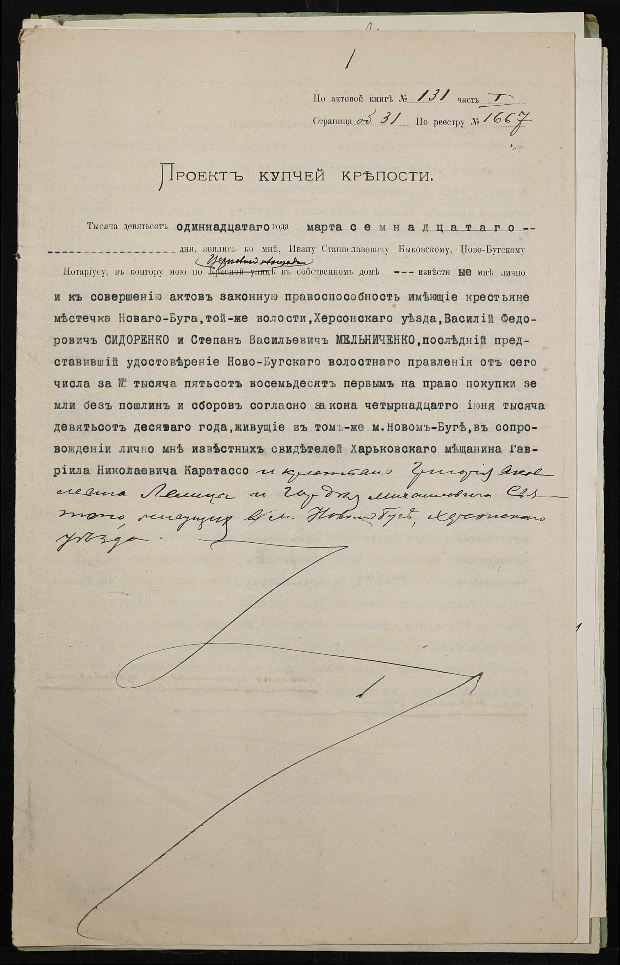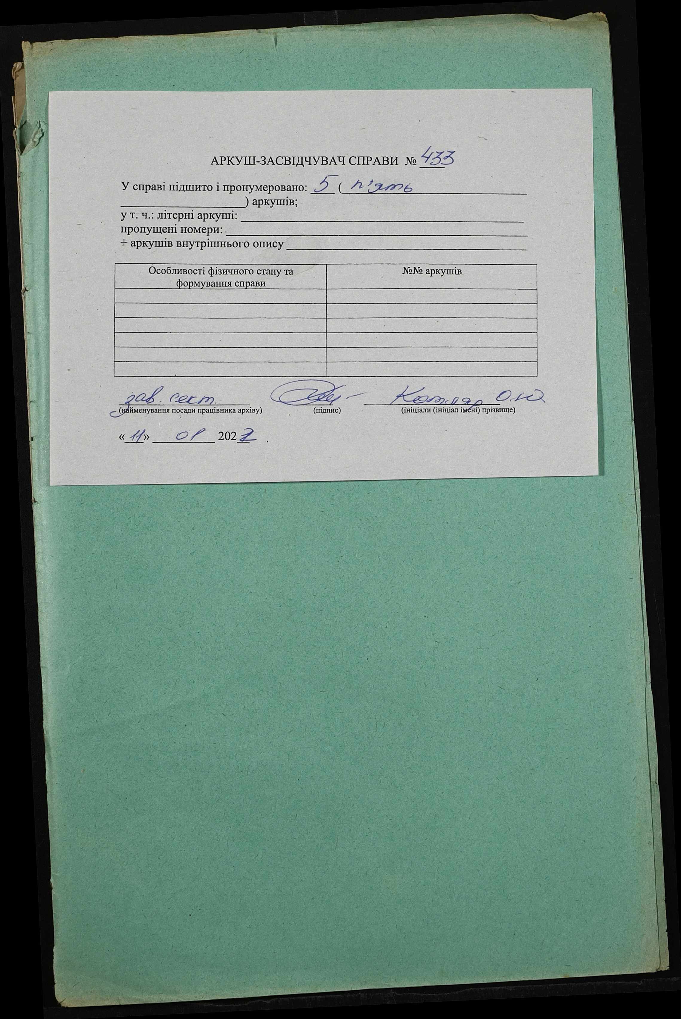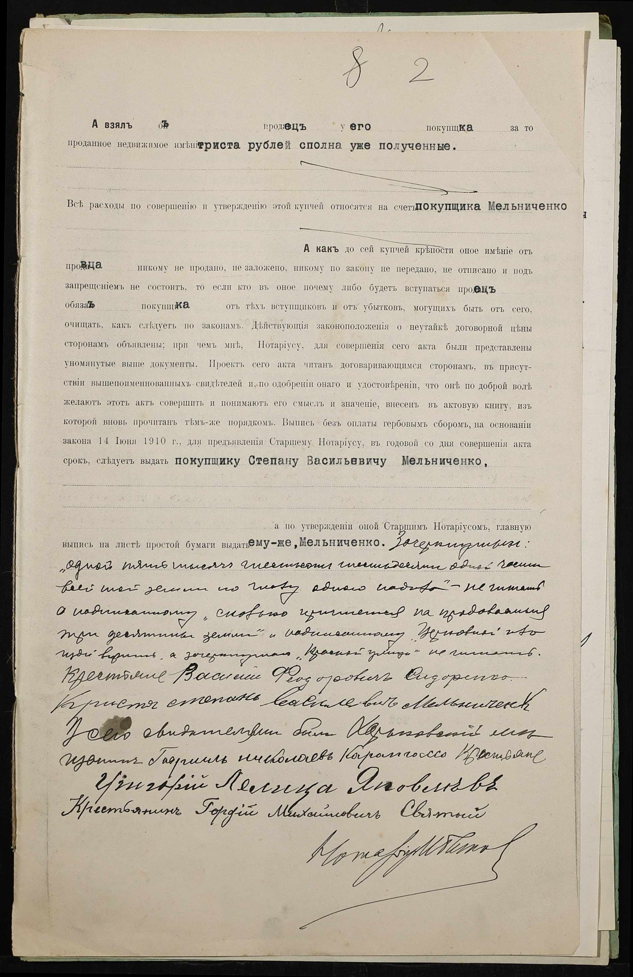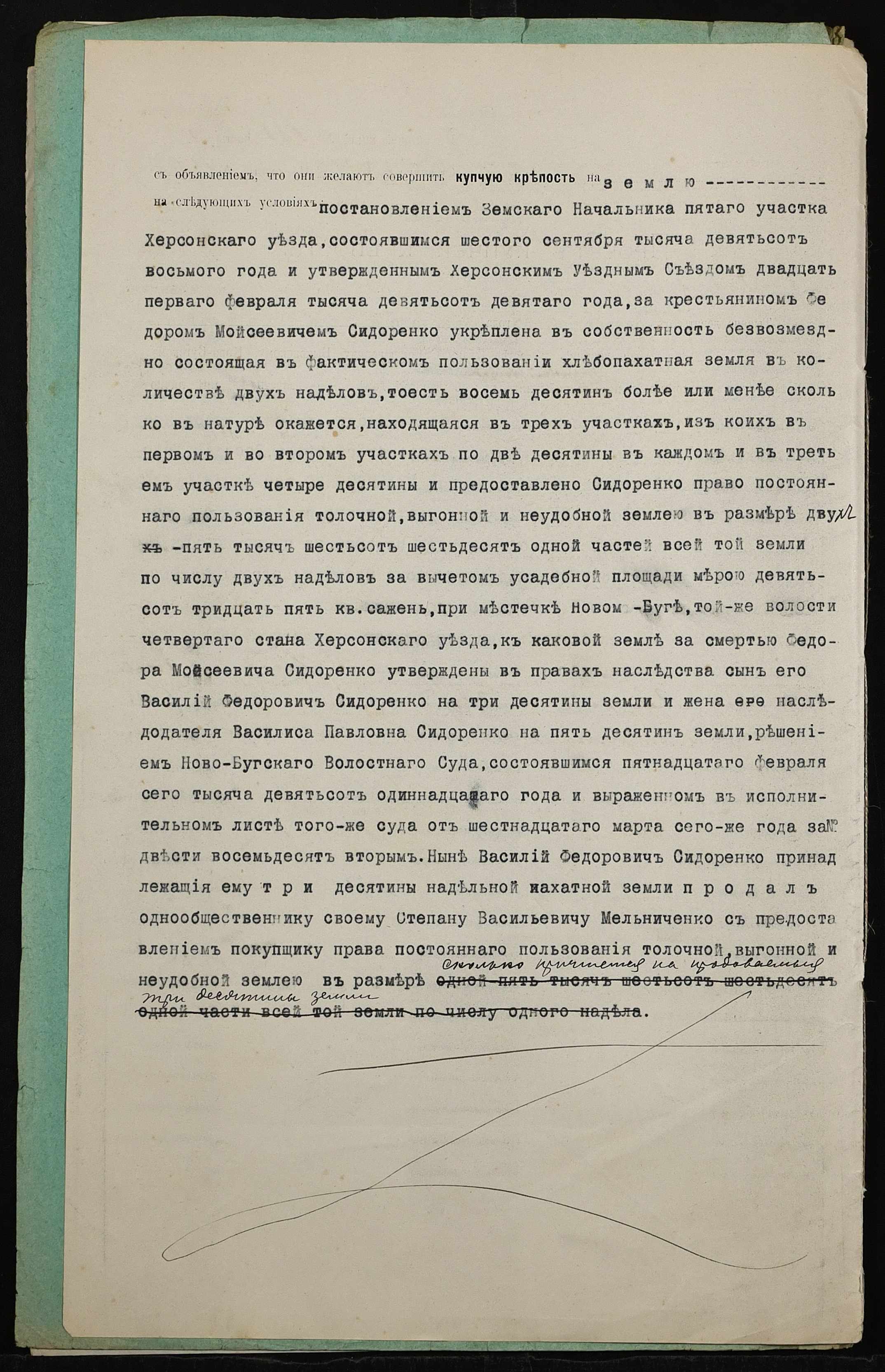 • • • • Справа № 433 “Справа про вчинення купчої про продаж землі селянином Сидоренком Василем (Сидоренко Василием) Федоровичем на користь селянина Мельниченка (Мельниченко) Степана Васильовича (Васильевича)”