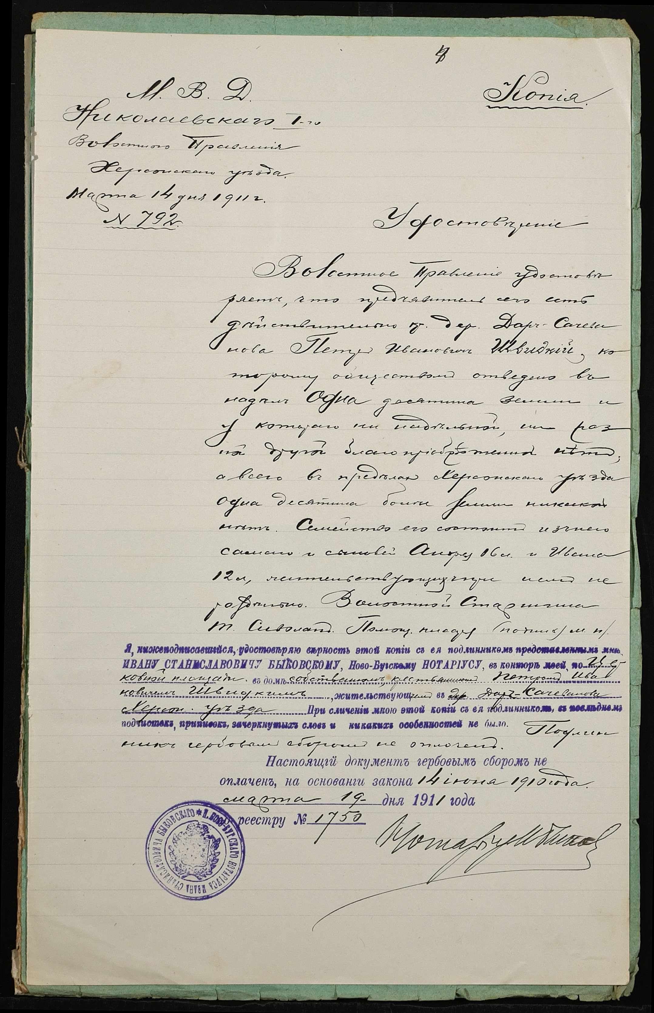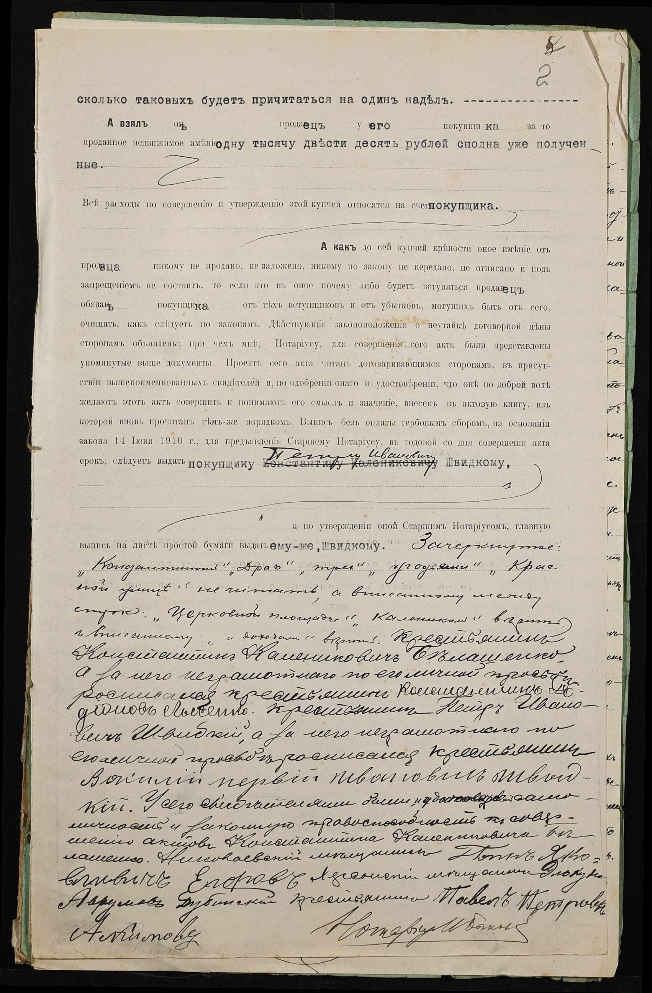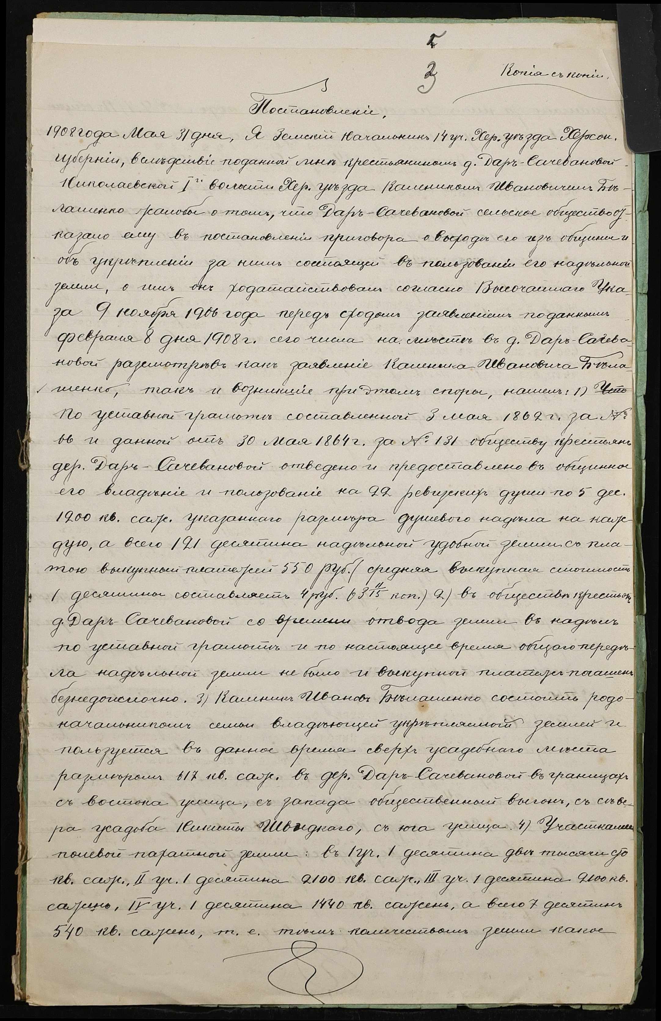 • • • • Справа № 436 “Справа про вчинення купчої про продаж землі селянином Бєлошенком Костянтином (Белошенко Константином) Калиновичем на користь селянина Швидкого Петра Івановича (Швыдкого Петра Ивановича)”