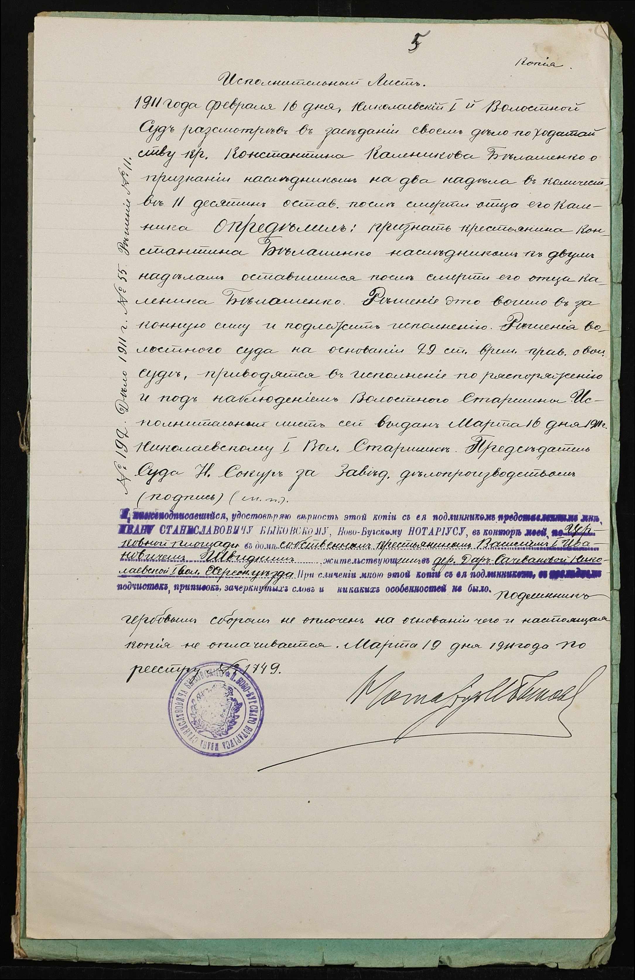 ◦ ◦ Фонд № 148 “Контора новобузького нотаріуса Биковського Івана Станіславовича”