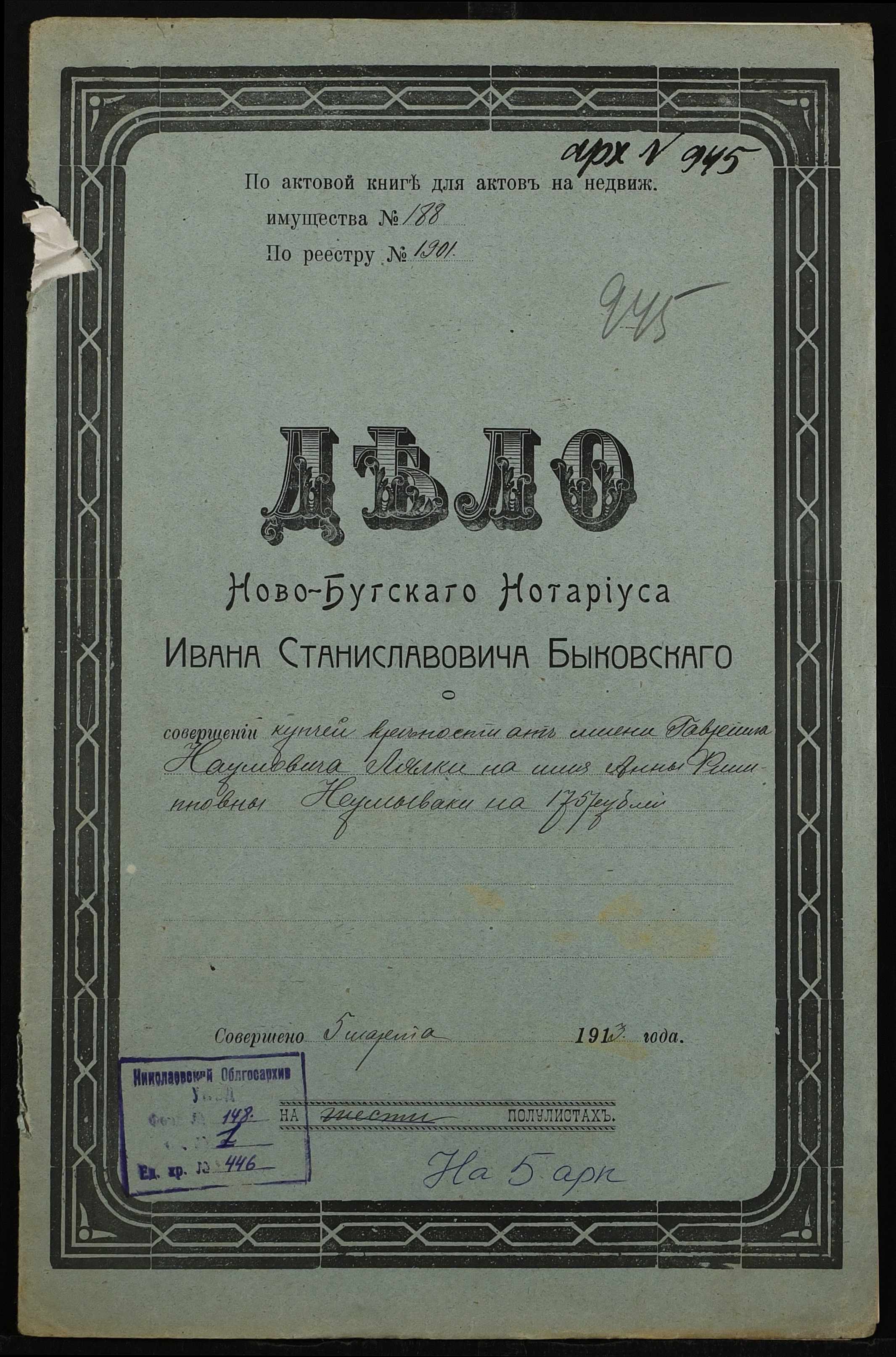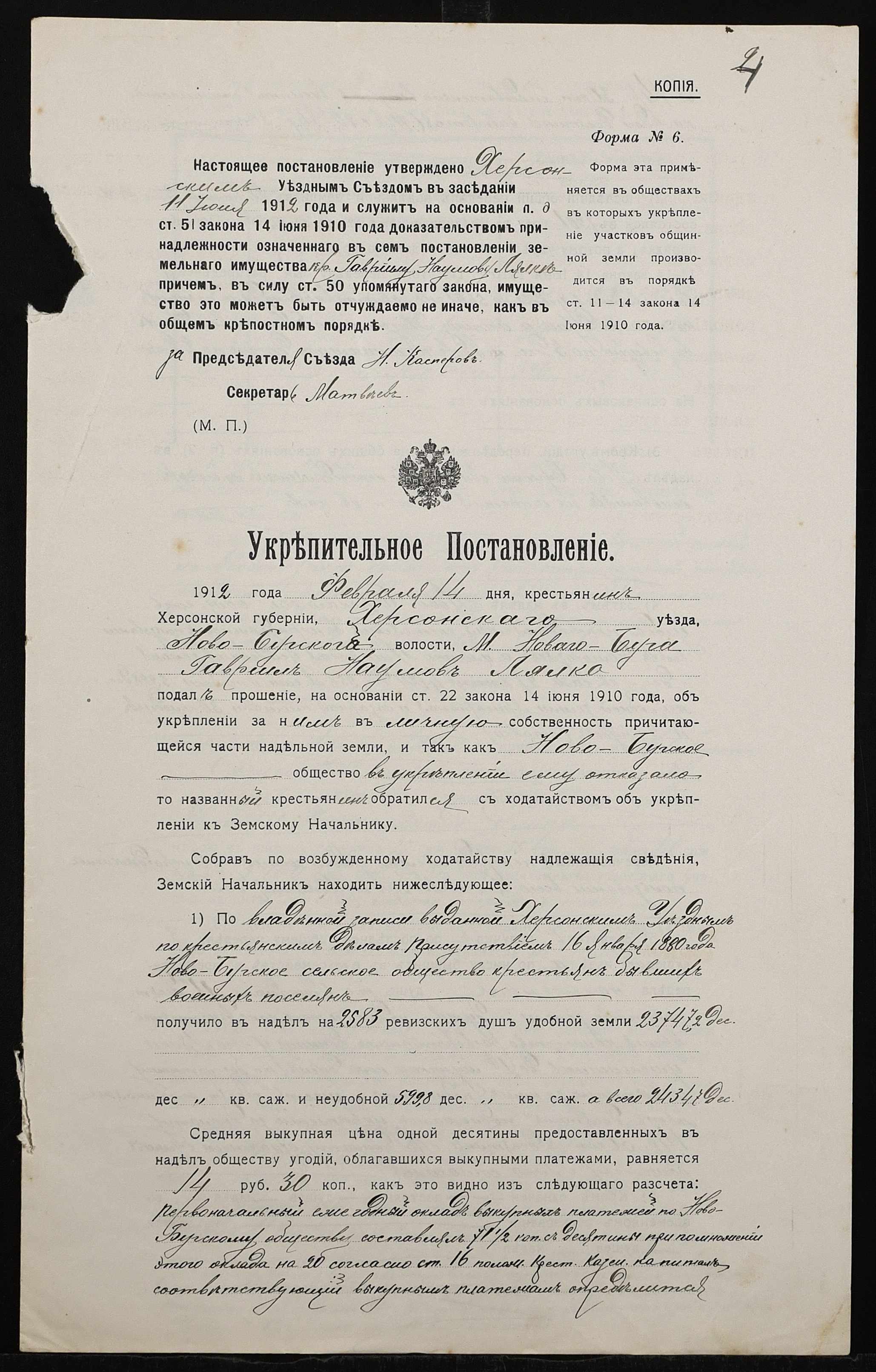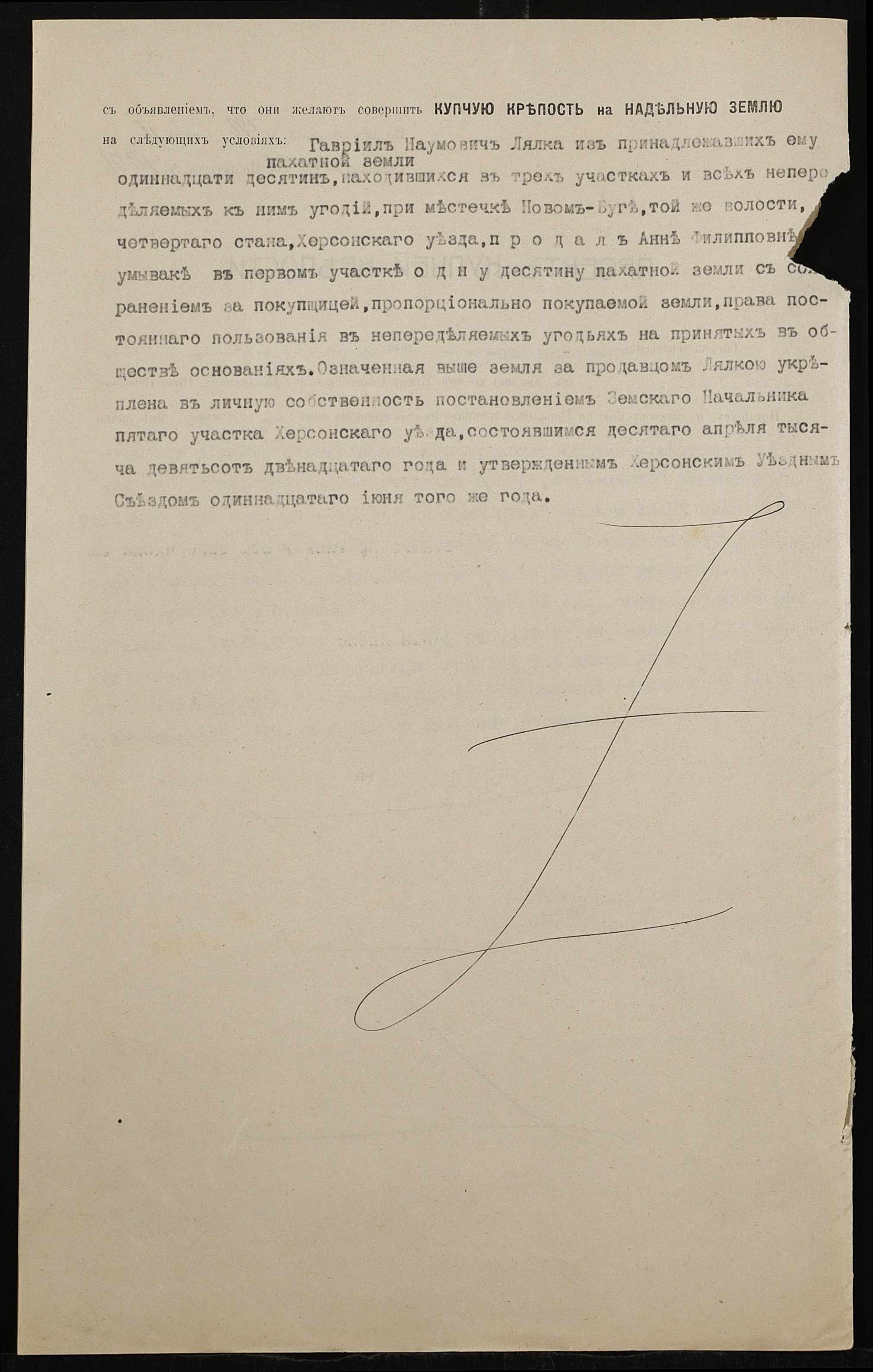 • • • • Справа № 446 “Справа про вчинення купчої про продаж землі селянином Лялкою Гаврилом (Лялкой Гавриилом) Наумовичем на користь селянки Неумиваки Ганни Пилипівни (Неумываки Анны Филипповны)”