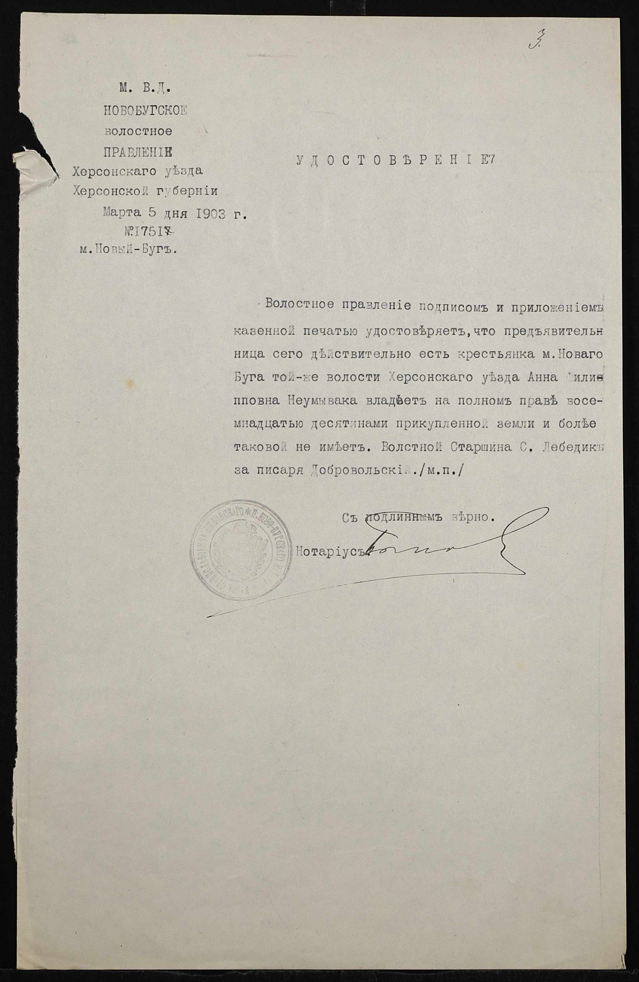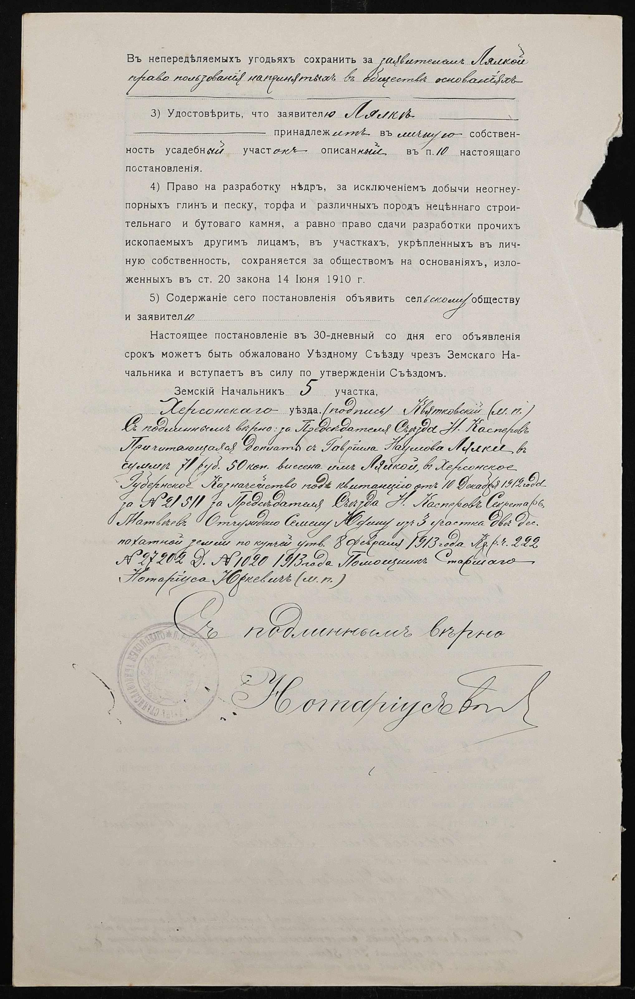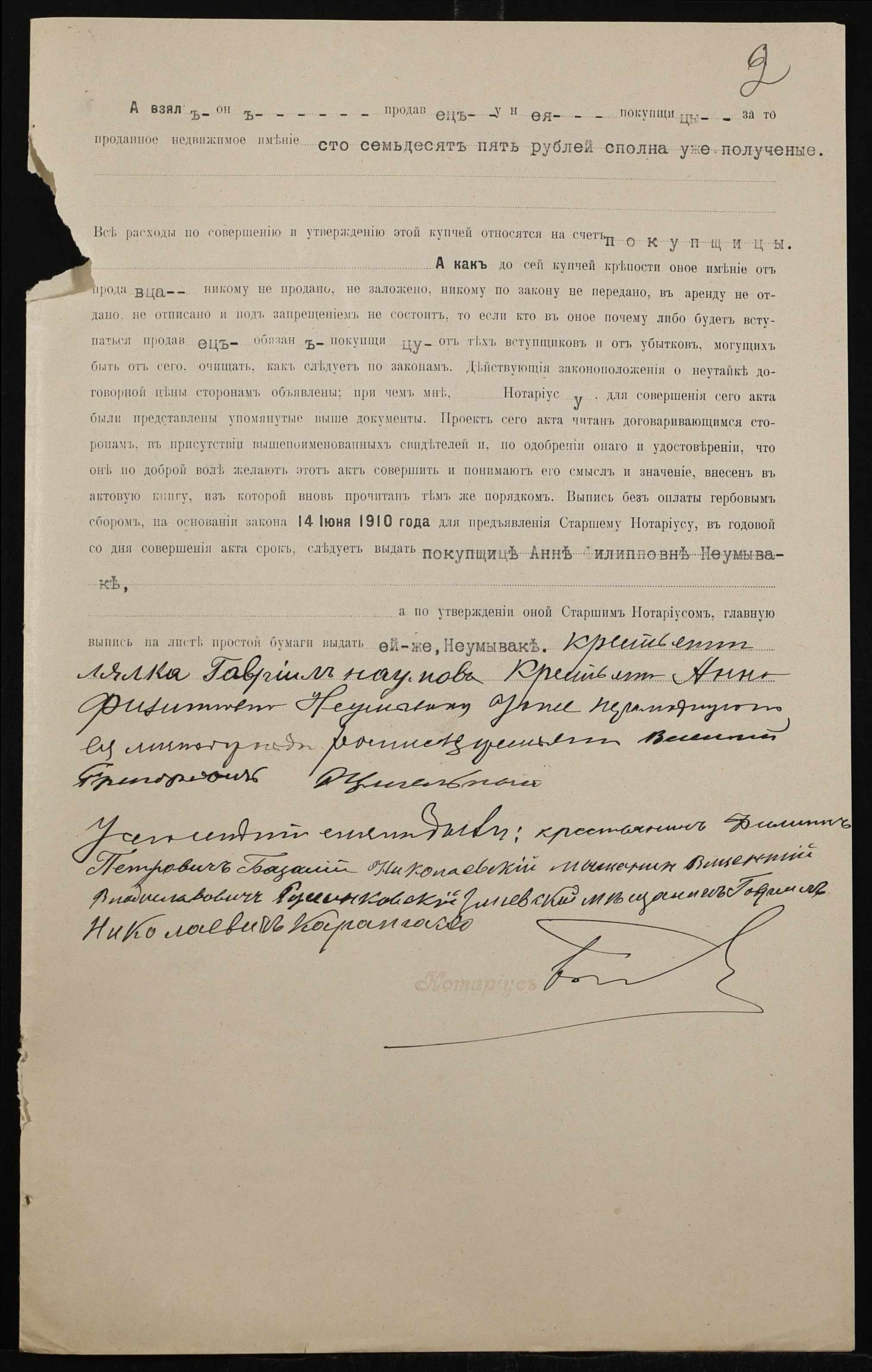 • • • • Справа № 446 “Справа про вчинення купчої про продаж землі селянином Лялкою Гаврилом (Лялкой Гавриилом) Наумовичем на користь селянки Неумиваки Ганни Пилипівни (Неумываки Анны Филипповны)”