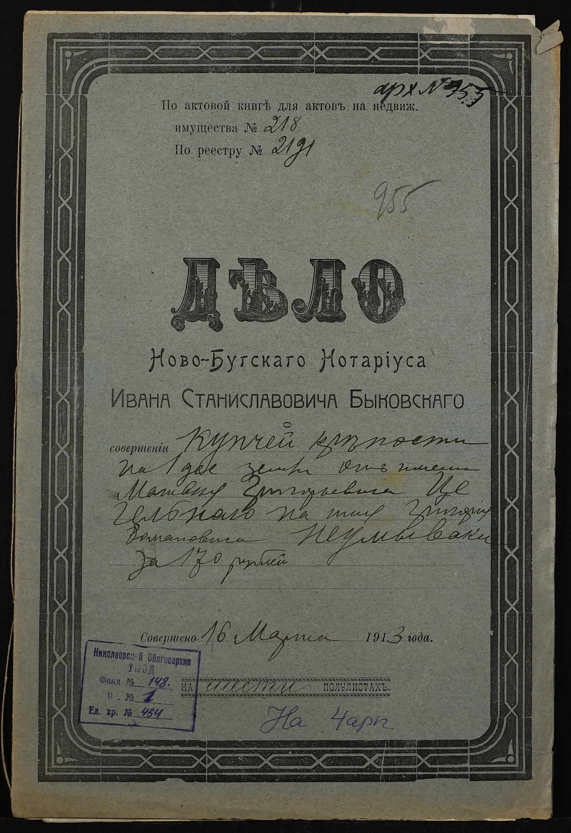 ◦ ◦ Фонд № 148 “Контора новобузького нотаріуса Биковського Івана Станіславовича”