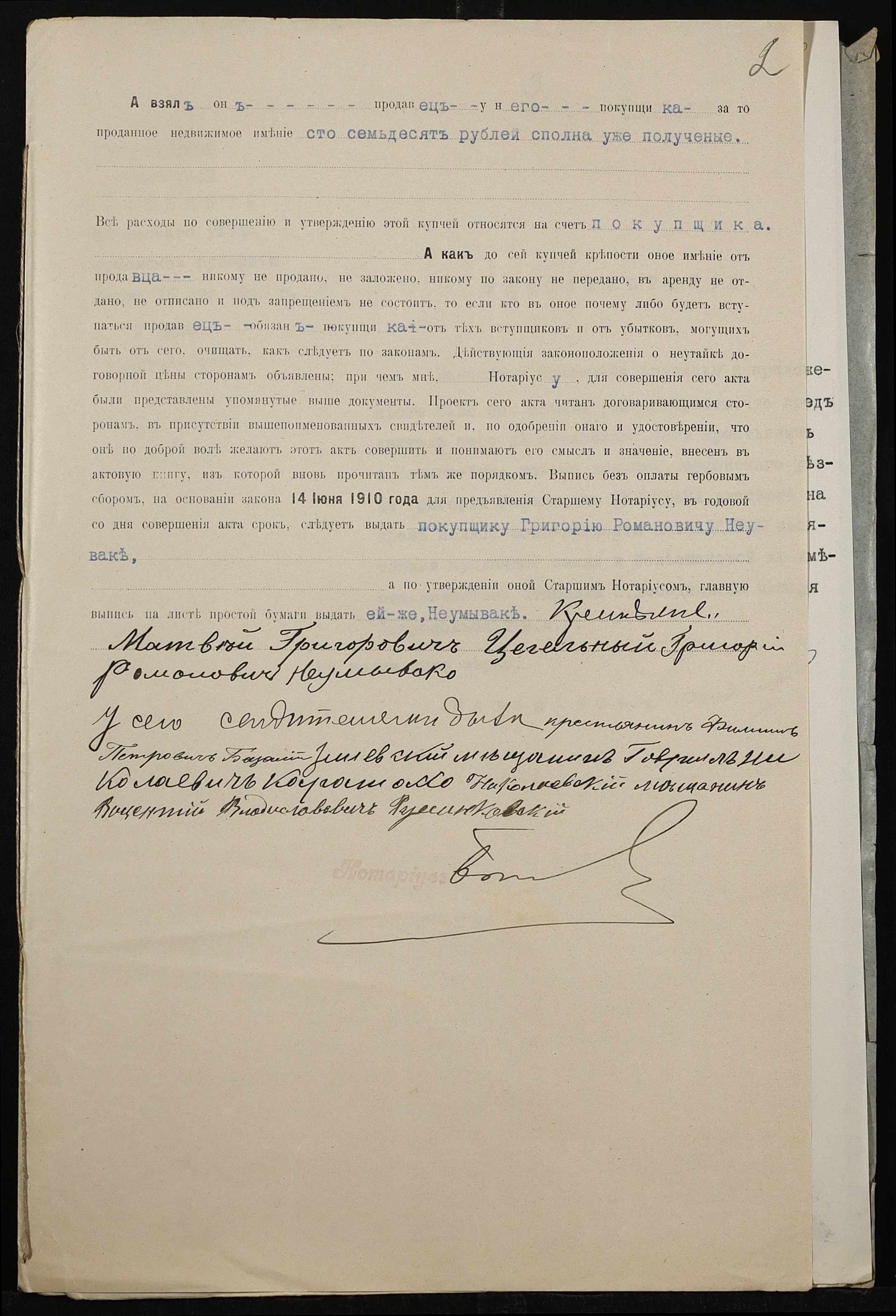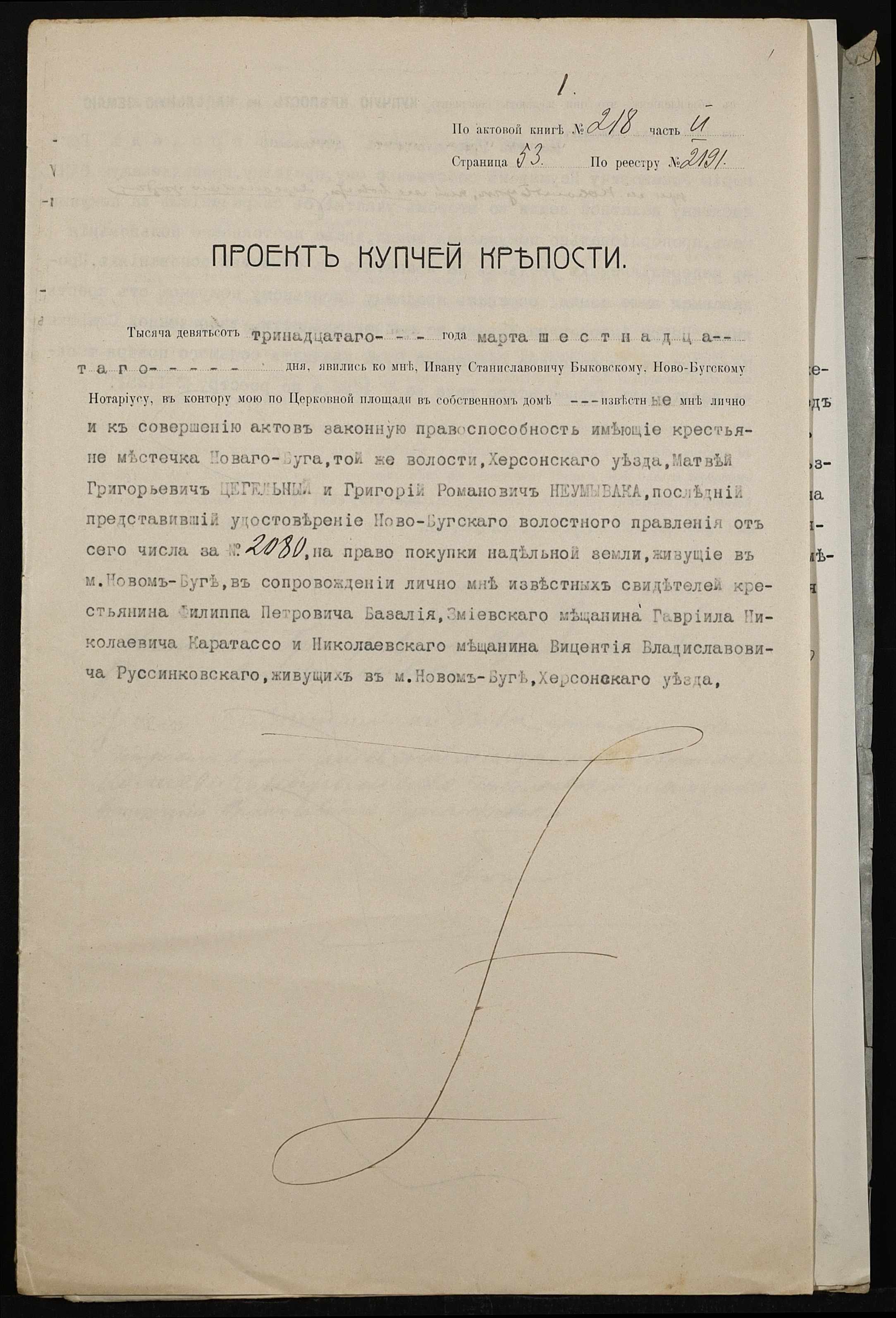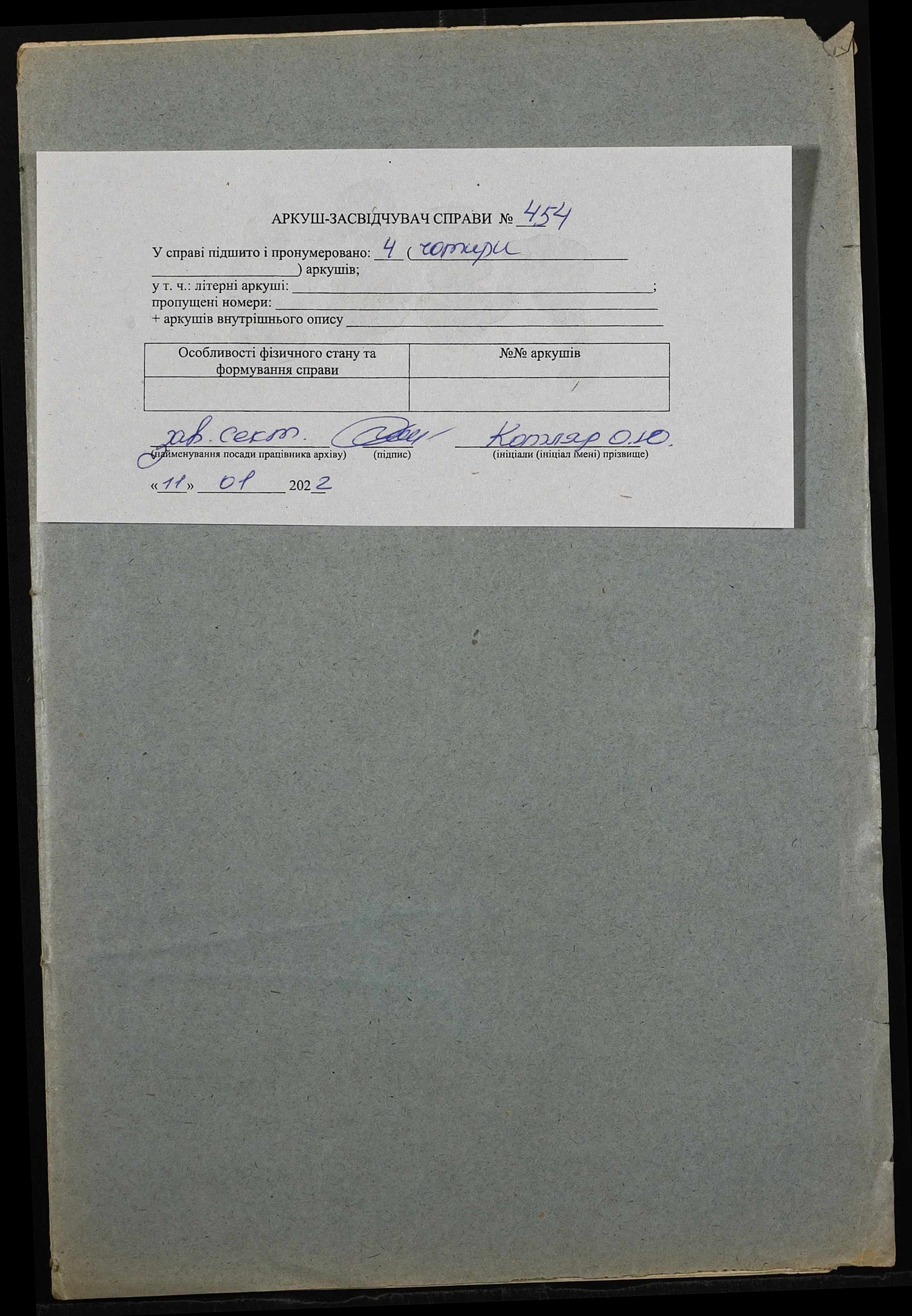 • • • • Справа № 454 “Справа про вчинення купчої про продаж землі селянином Цегельним Матвієм Григоровичем (Цегельным Матвеем Григорьевичем) на користь селянина Неумиваки Григорія (Неумываки Григория) Романовича”