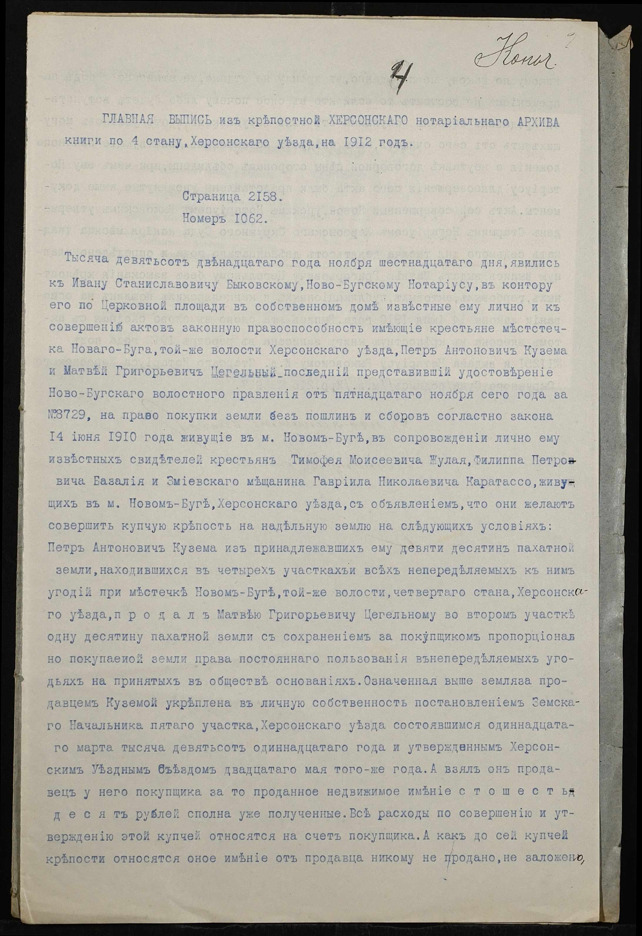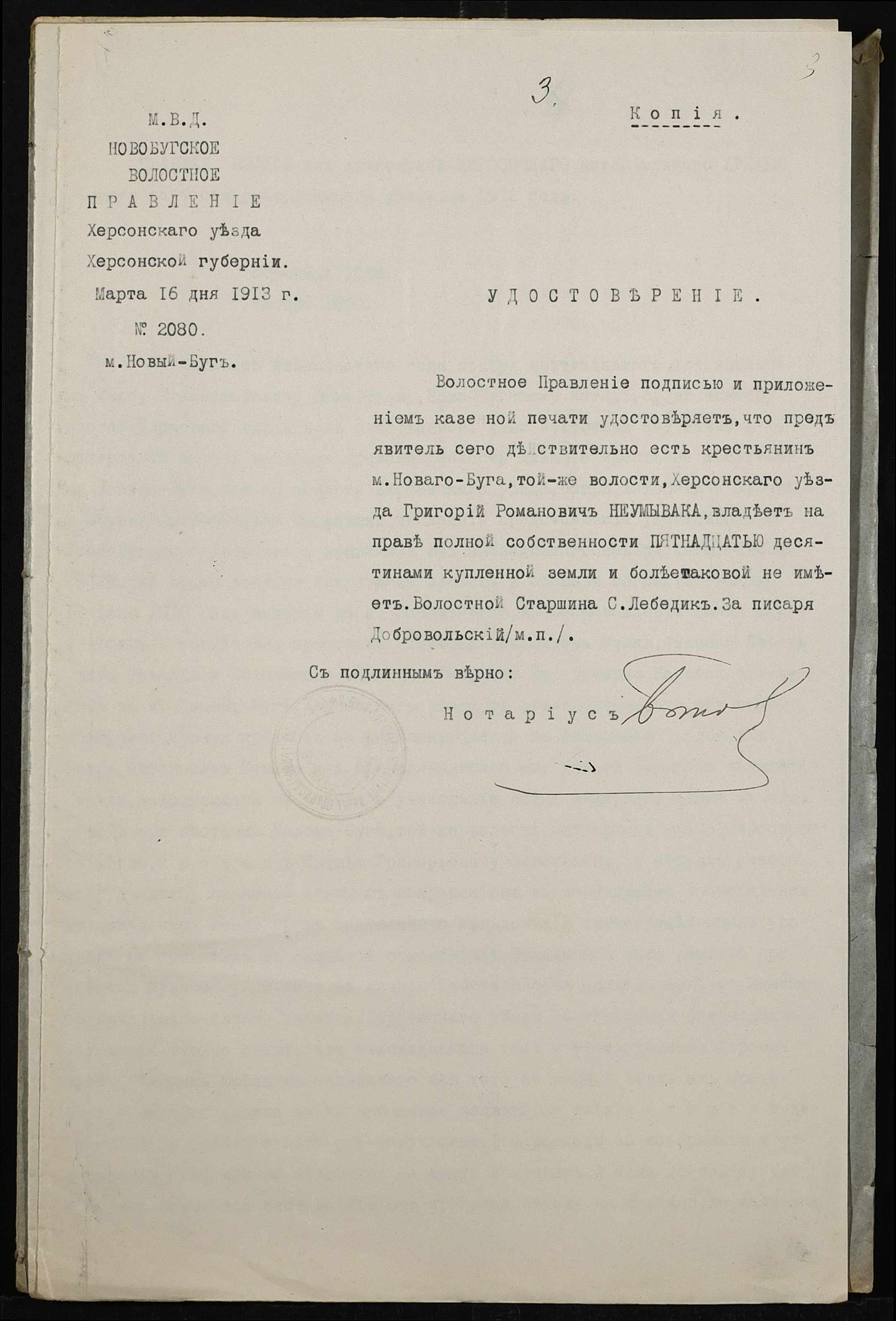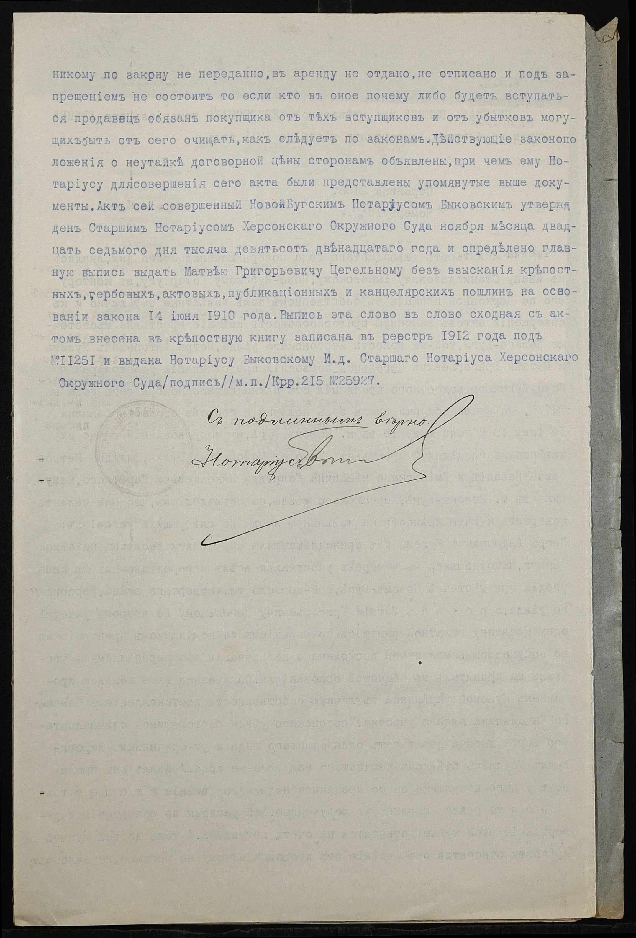 • • • • Справа № 454 “Справа про вчинення купчої про продаж землі селянином Цегельним Матвієм Григоровичем (Цегельным Матвеем Григорьевичем) на користь селянина Неумиваки Григорія (Неумываки Григория) Романовича”