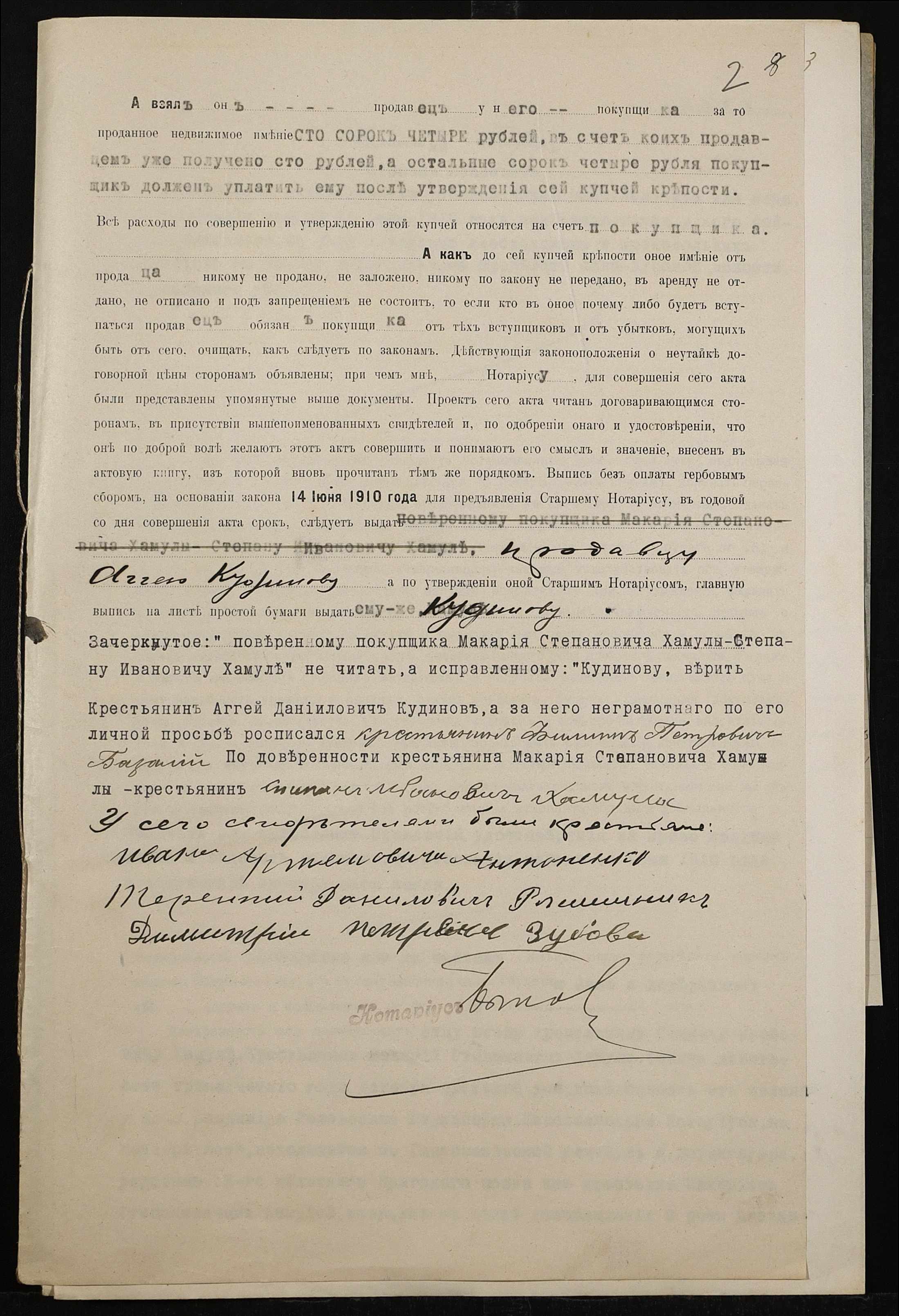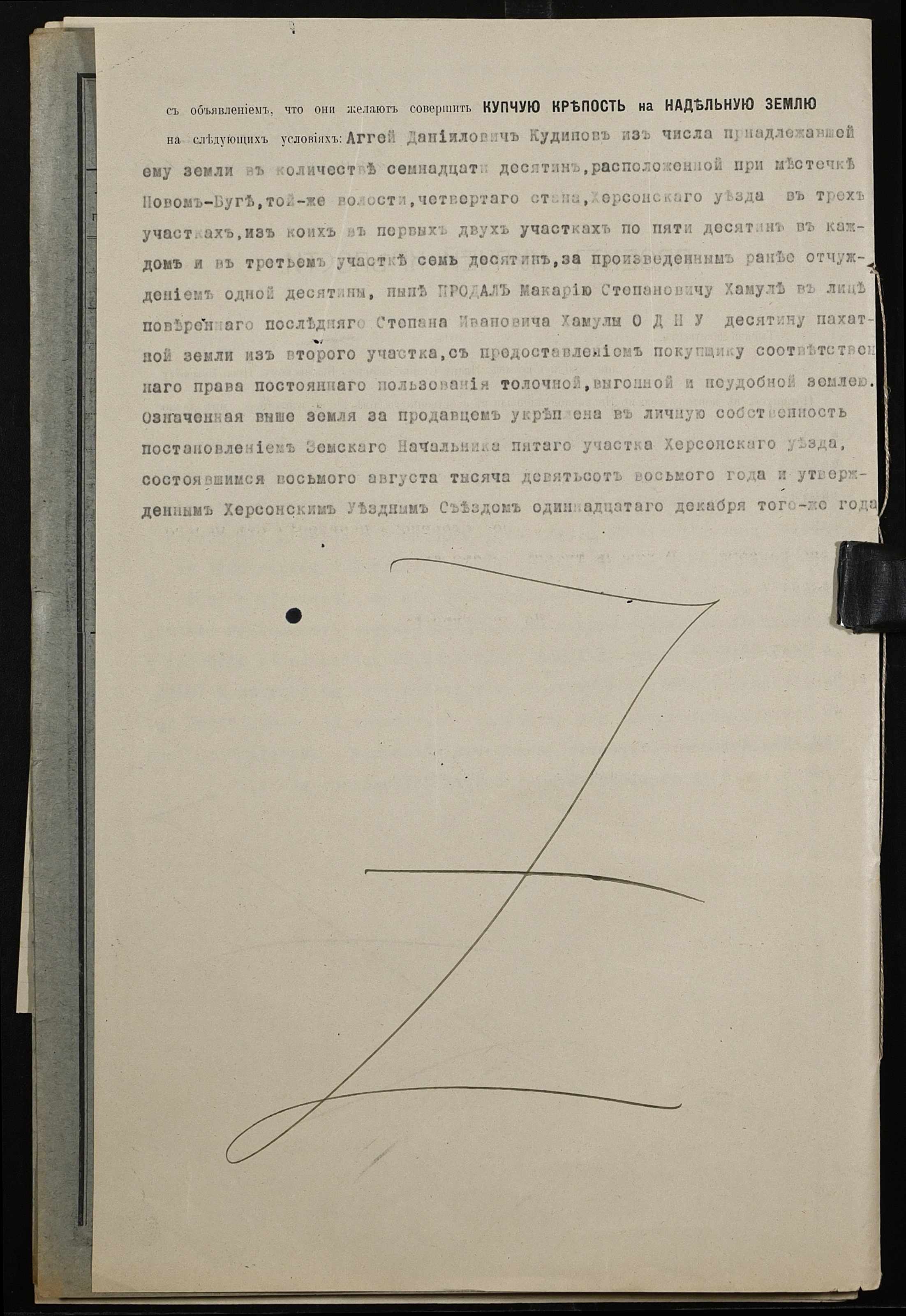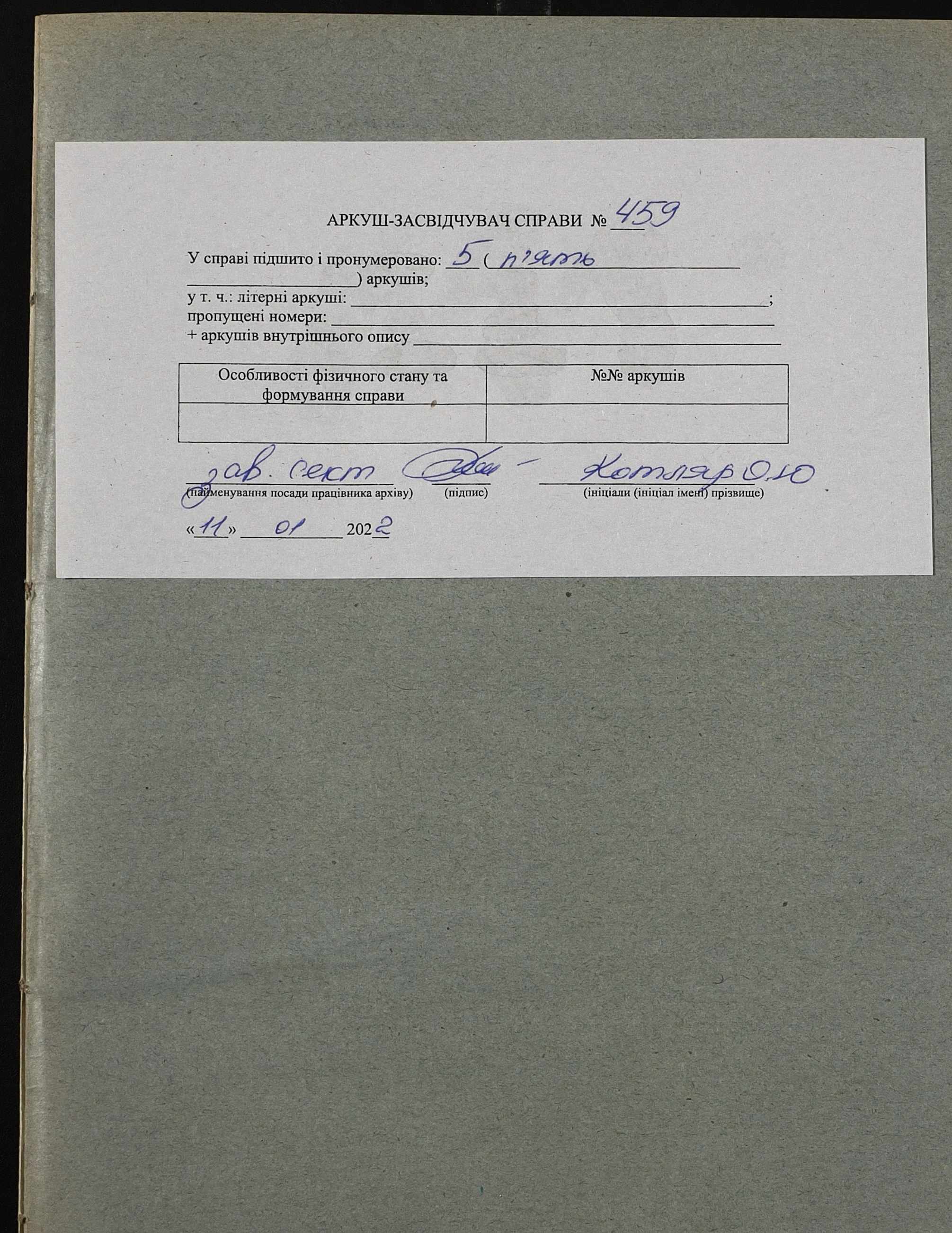 • • • • Справа № 459 “Справа про вчинення купчої про продаж землі селянином Кудіновим Огієм (Кудиновым Аггеем) Даниловичем на користь селянина Хамули Макарія (Хамулы Макария) Степановича”