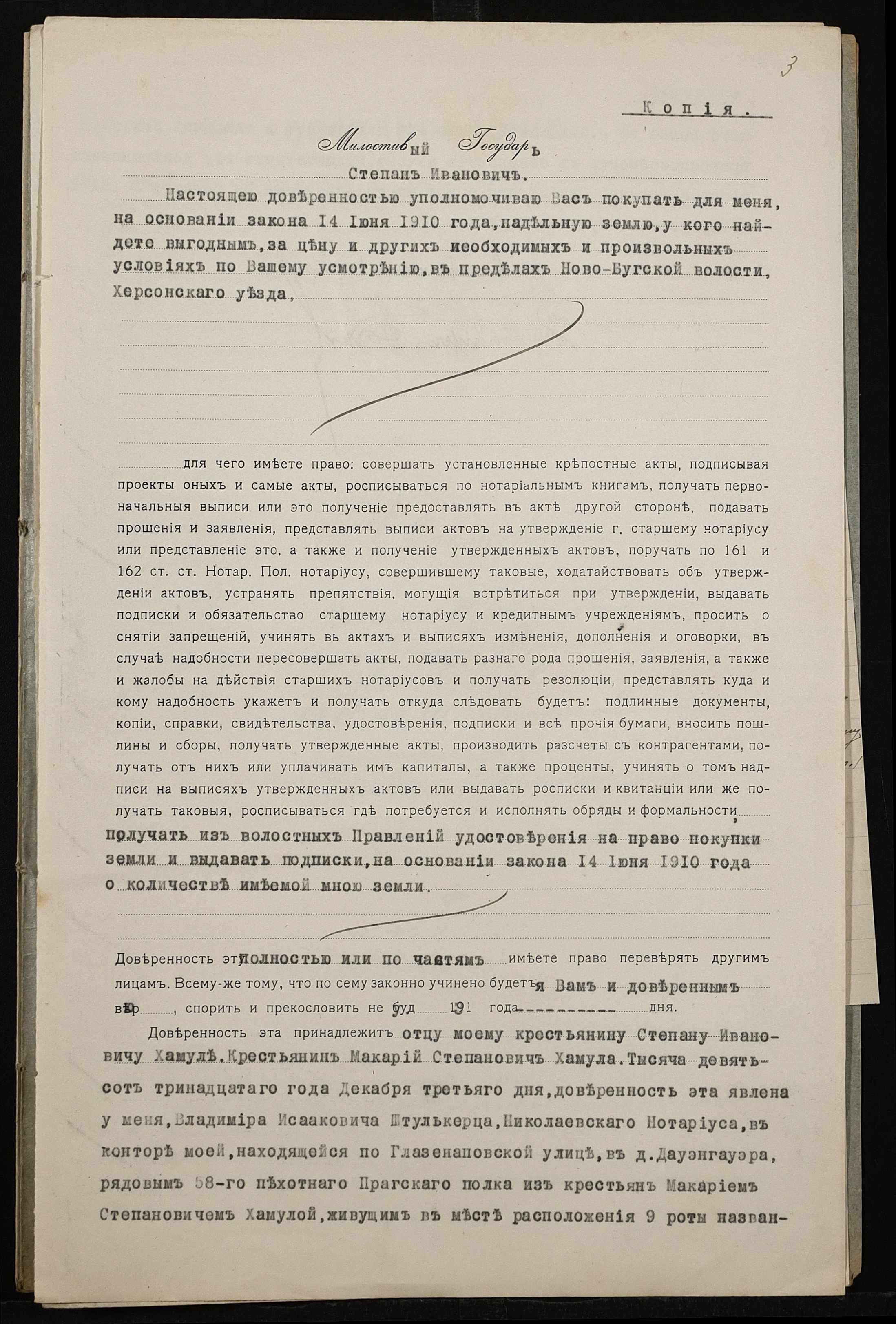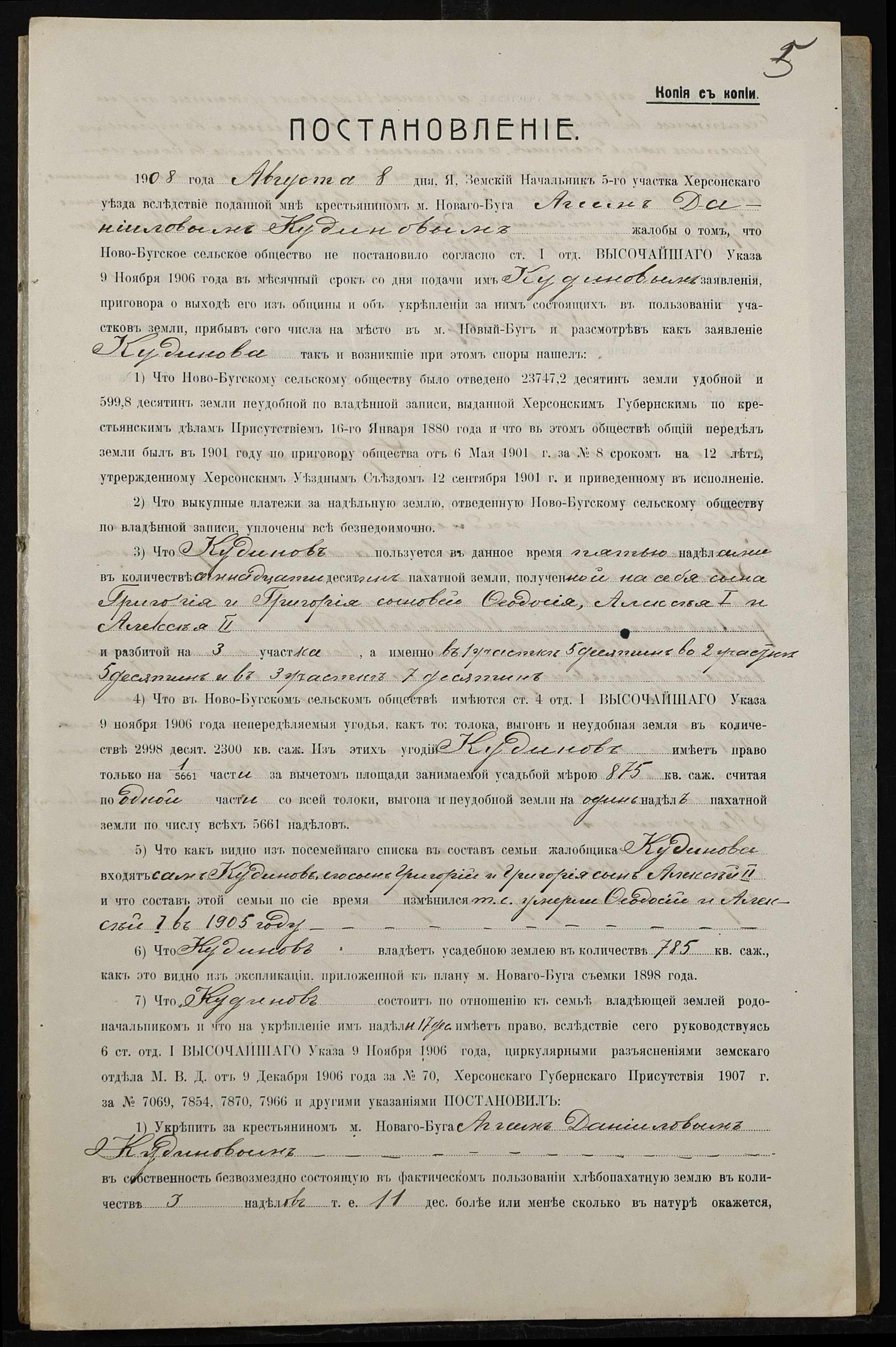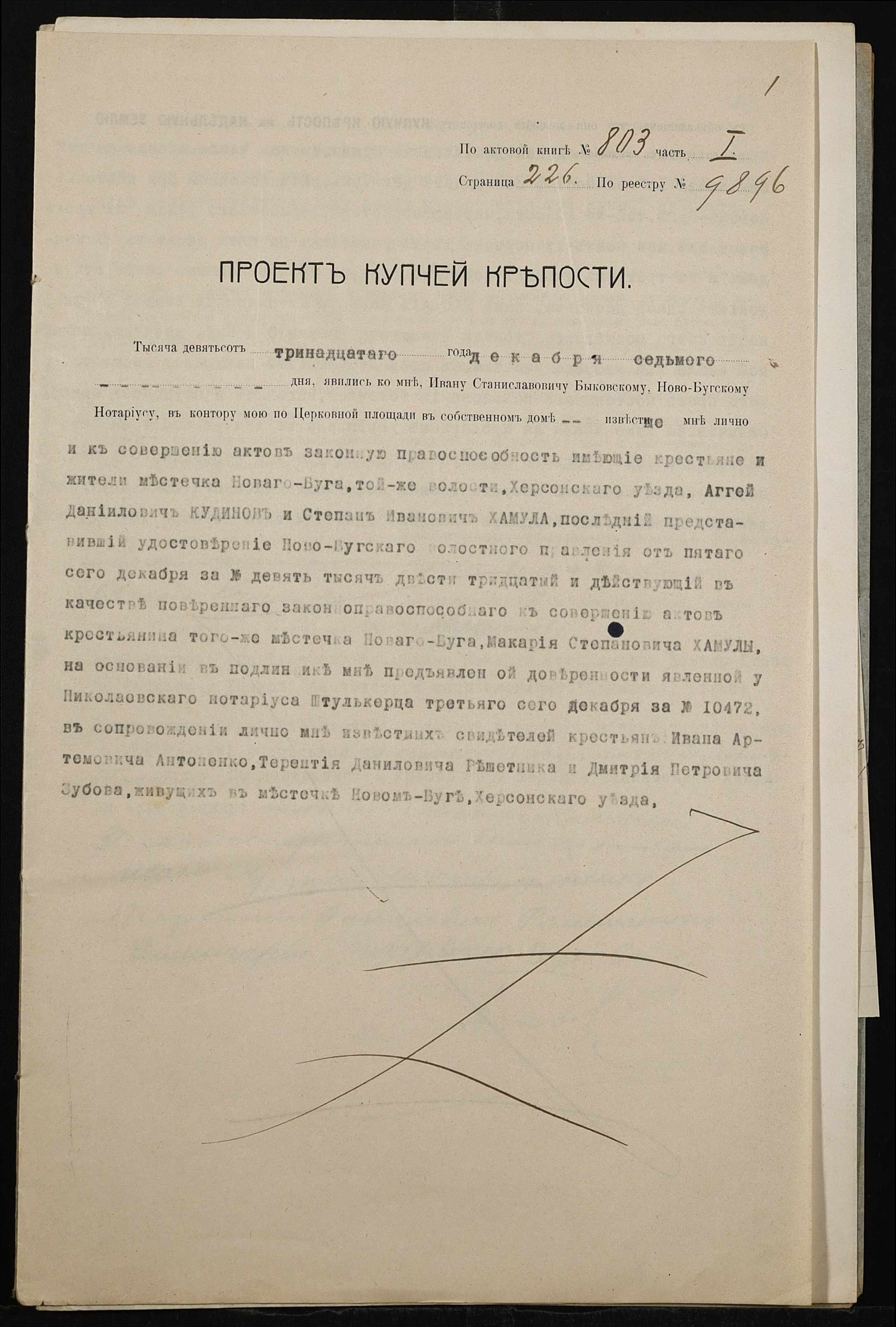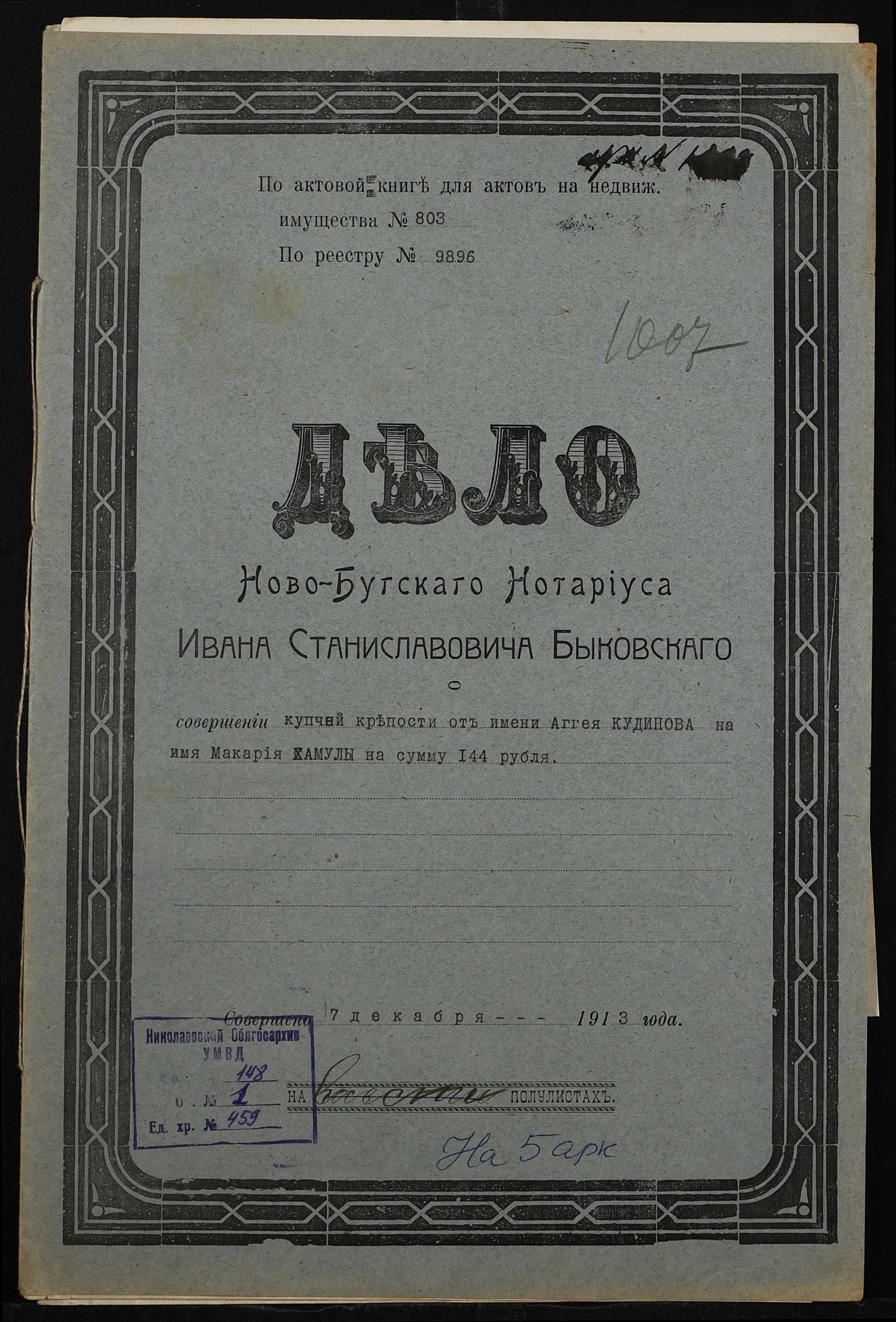 • • • • Справа № 459 “Справа про вчинення купчої про продаж землі селянином Кудіновим Огієм (Кудиновым Аггеем) Даниловичем на користь селянина Хамули Макарія (Хамулы Макария) Степановича”