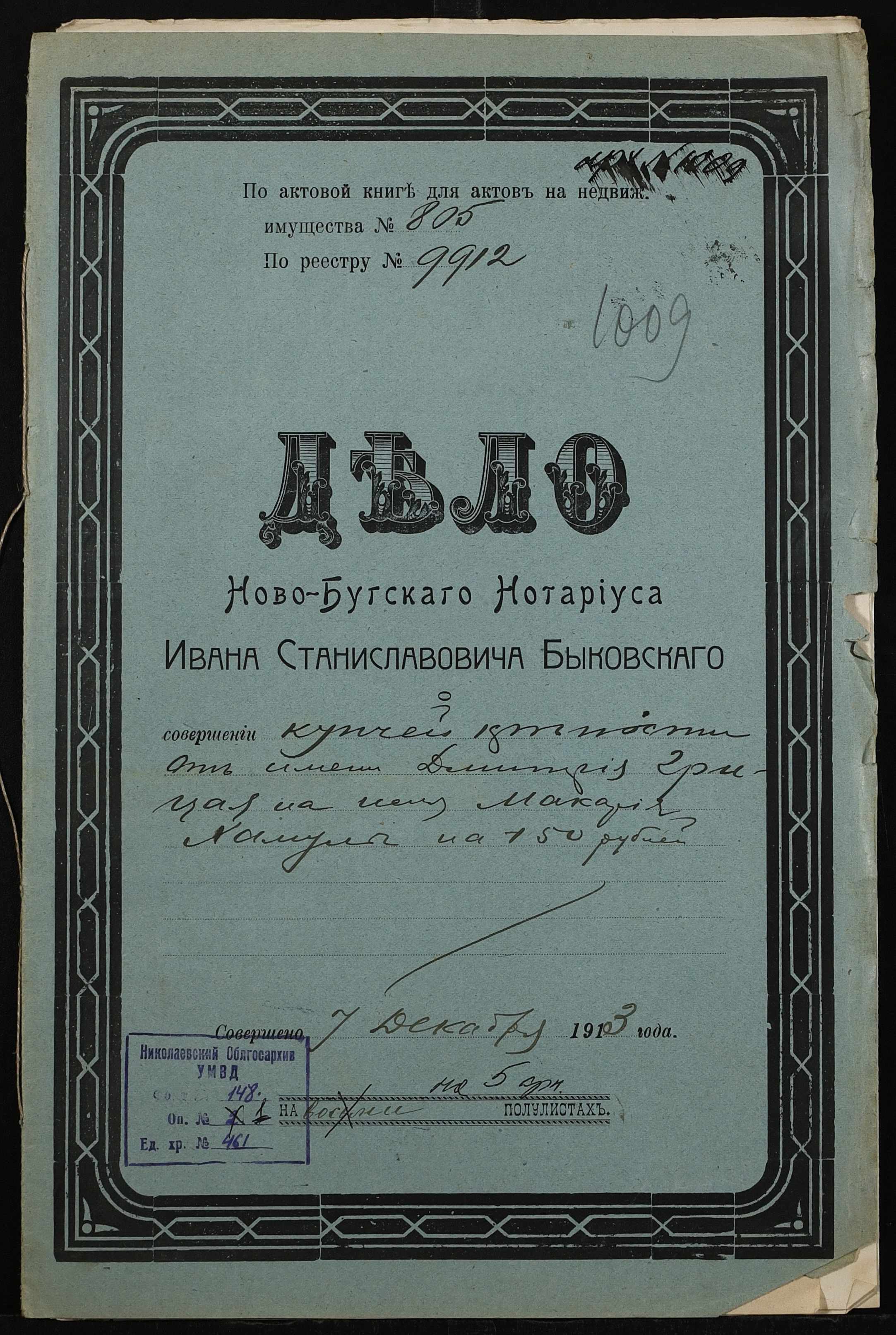 ◦ ◦ Фонд № 148 “Контора новобузького нотаріуса Биковського Івана Станіславовича”