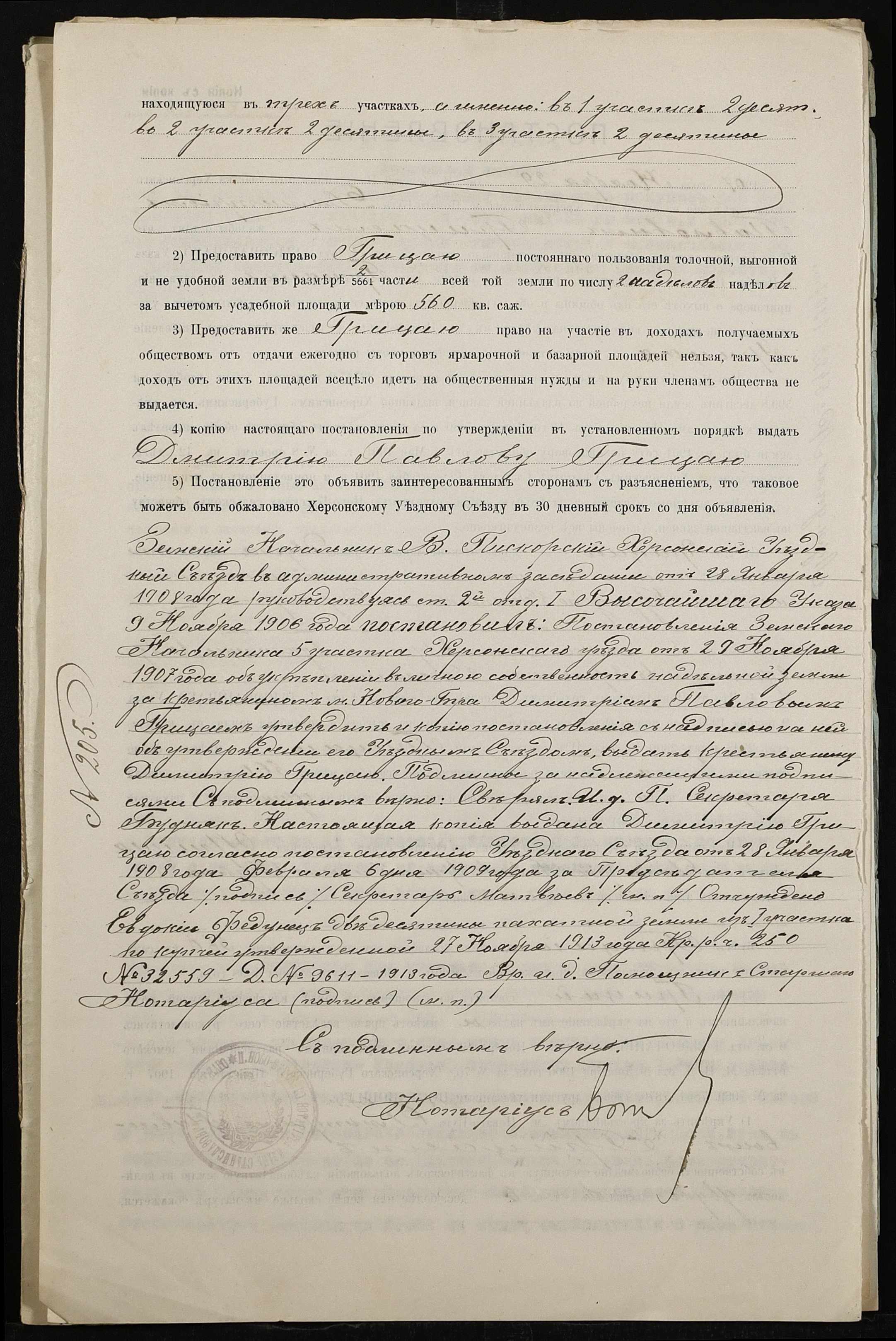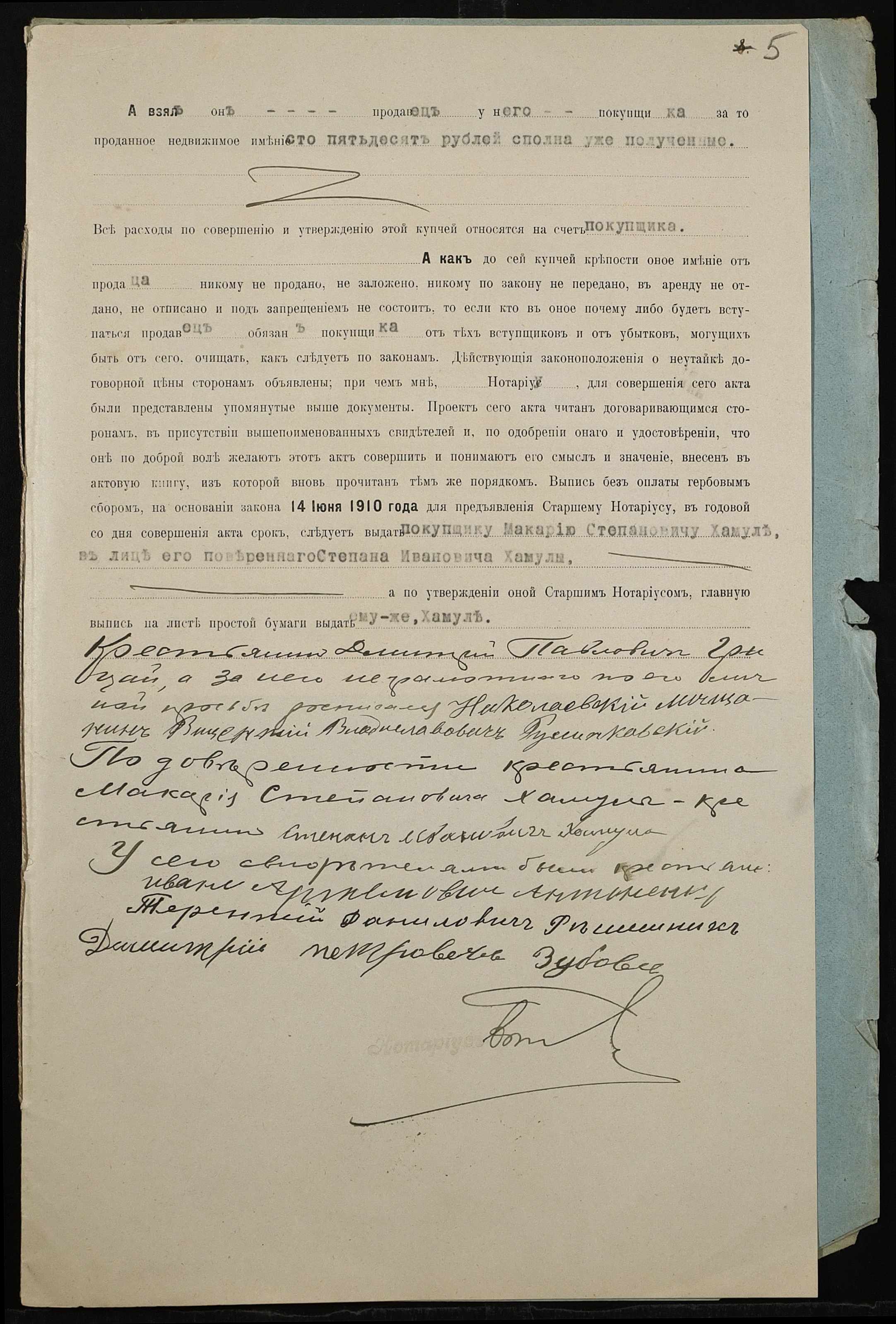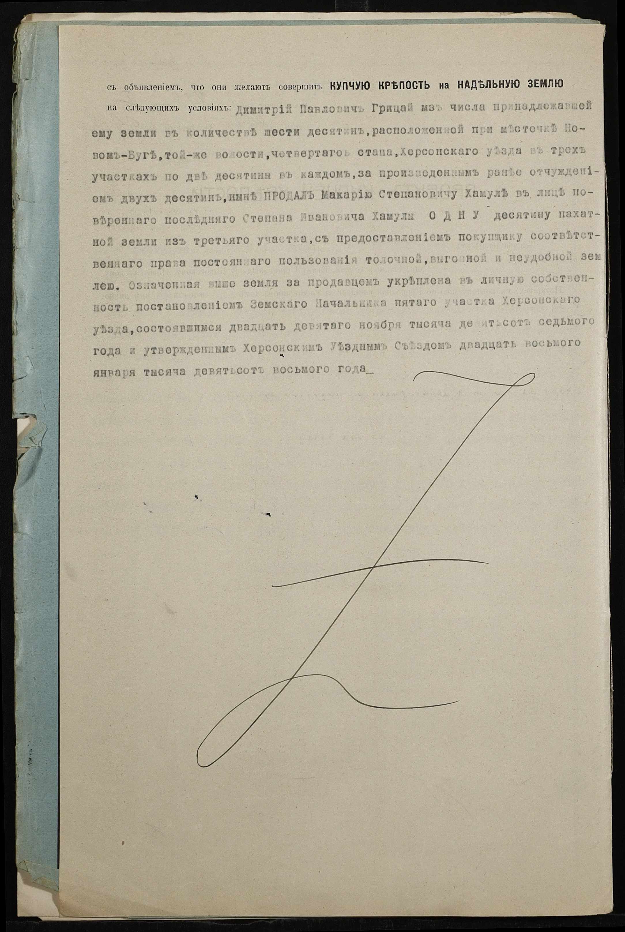 • • • • Справа № 461 “Справа про вчинення купчої про продаж землі селянином Грицаєм Дмитром (Грицаем Дмитрием) Павловичем на користь селянина Хамули Макарія (Хамулы Макария) Степановича”
