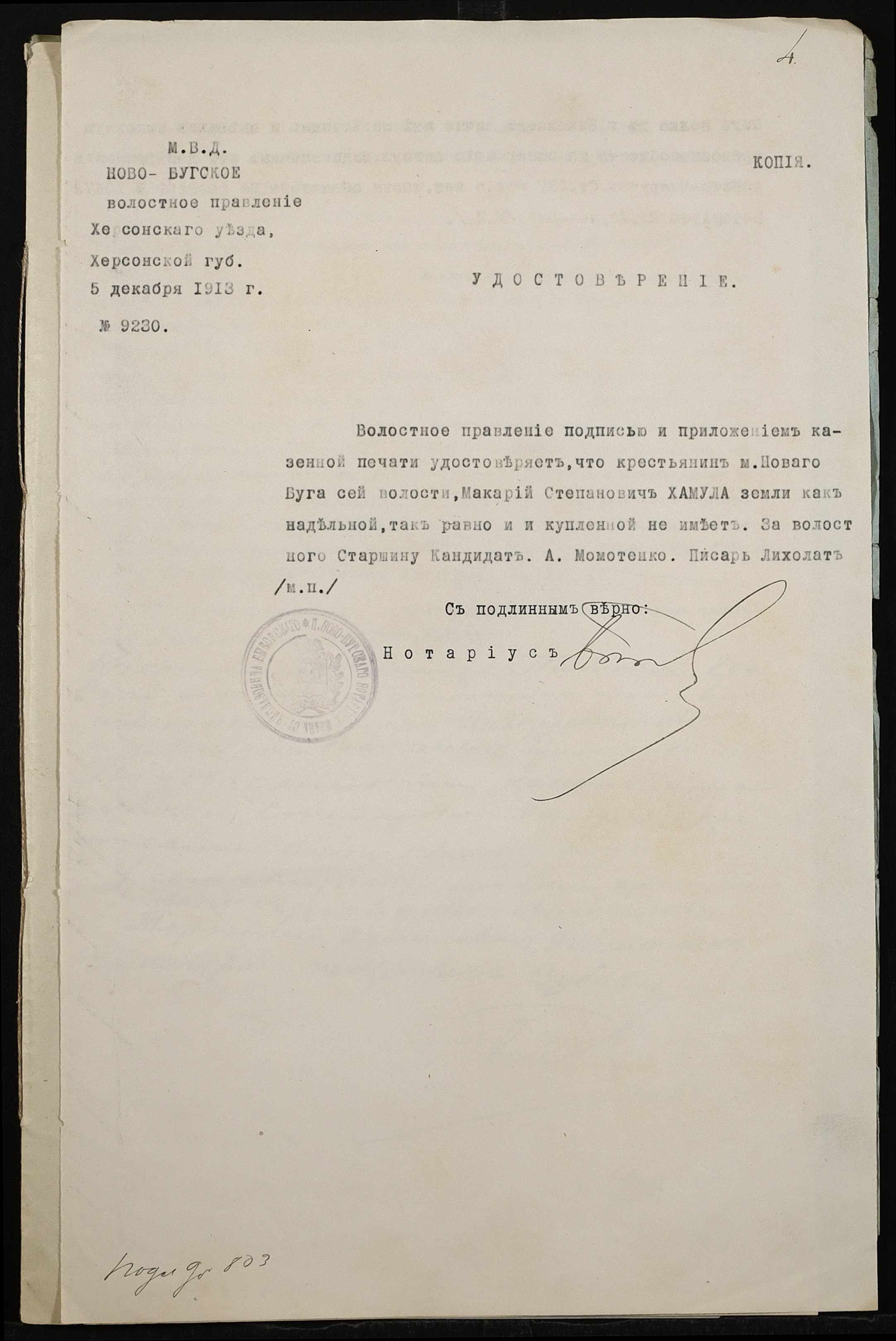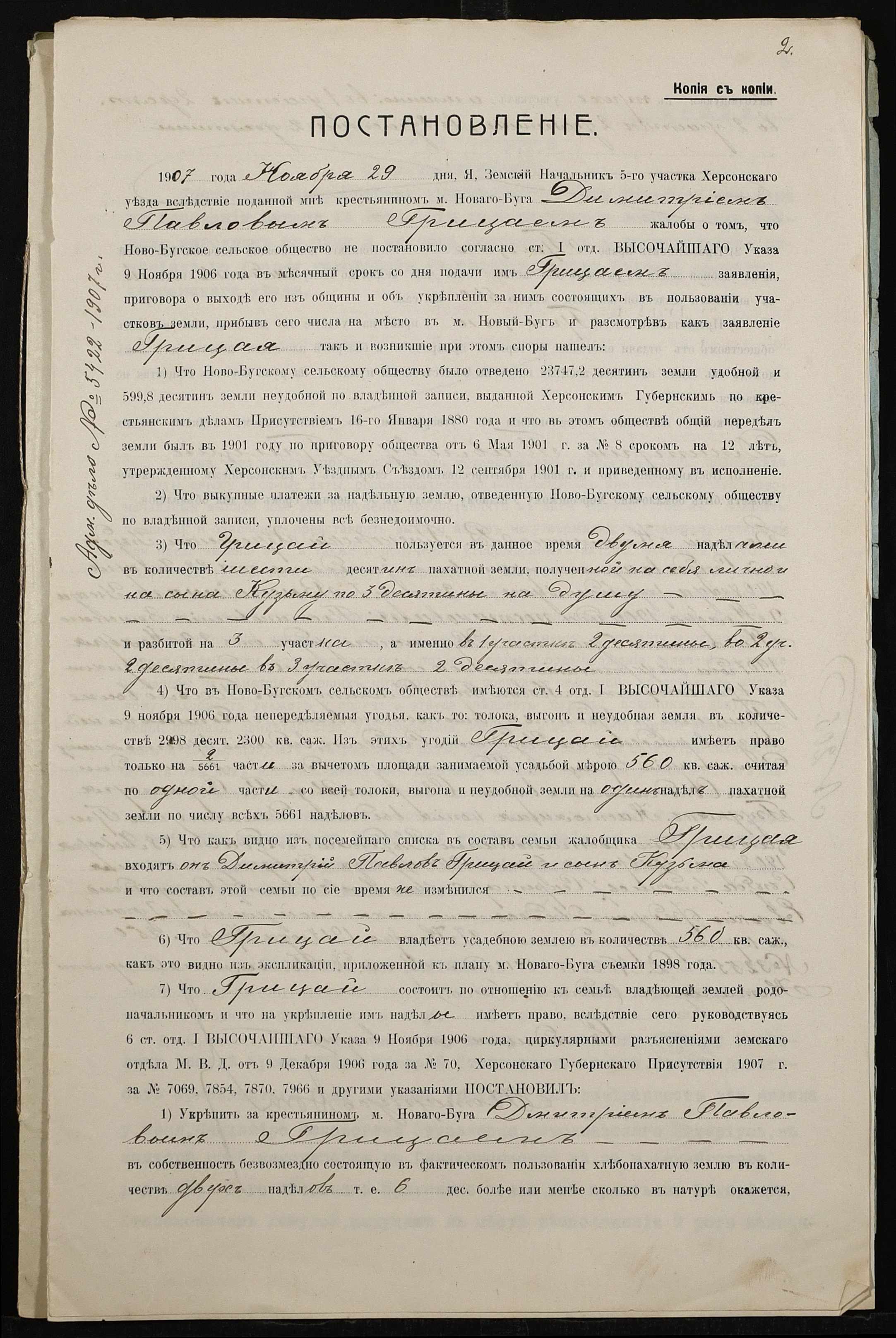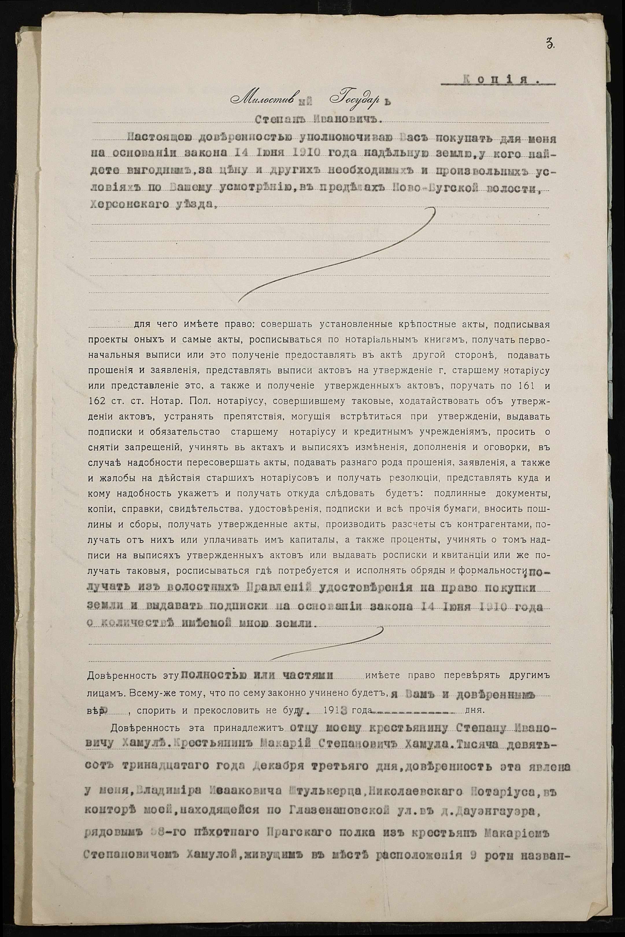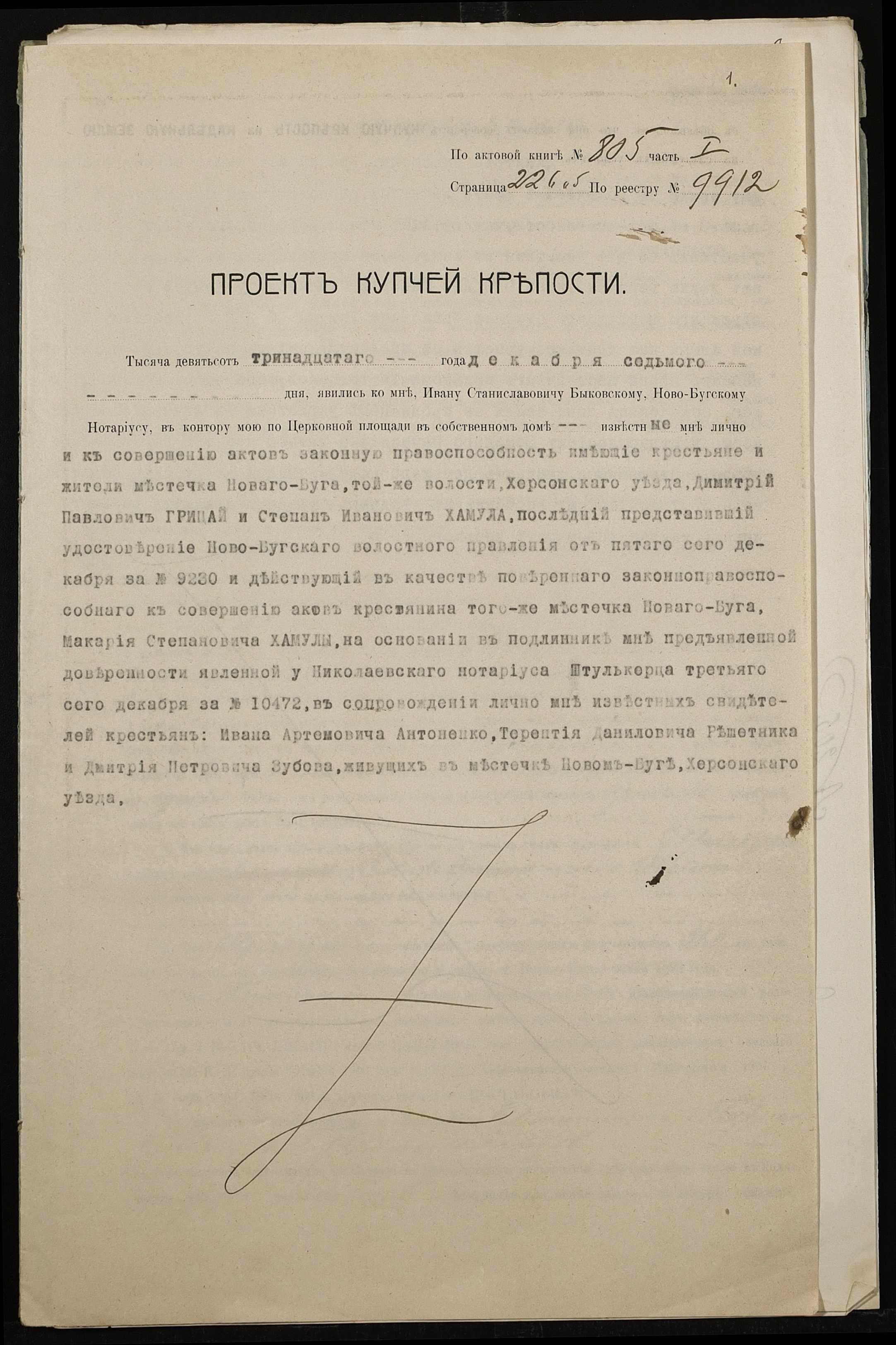 • • • • Справа № 461 “Справа про вчинення купчої про продаж землі селянином Грицаєм Дмитром (Грицаем Дмитрием) Павловичем на користь селянина Хамули Макарія (Хамулы Макария) Степановича”