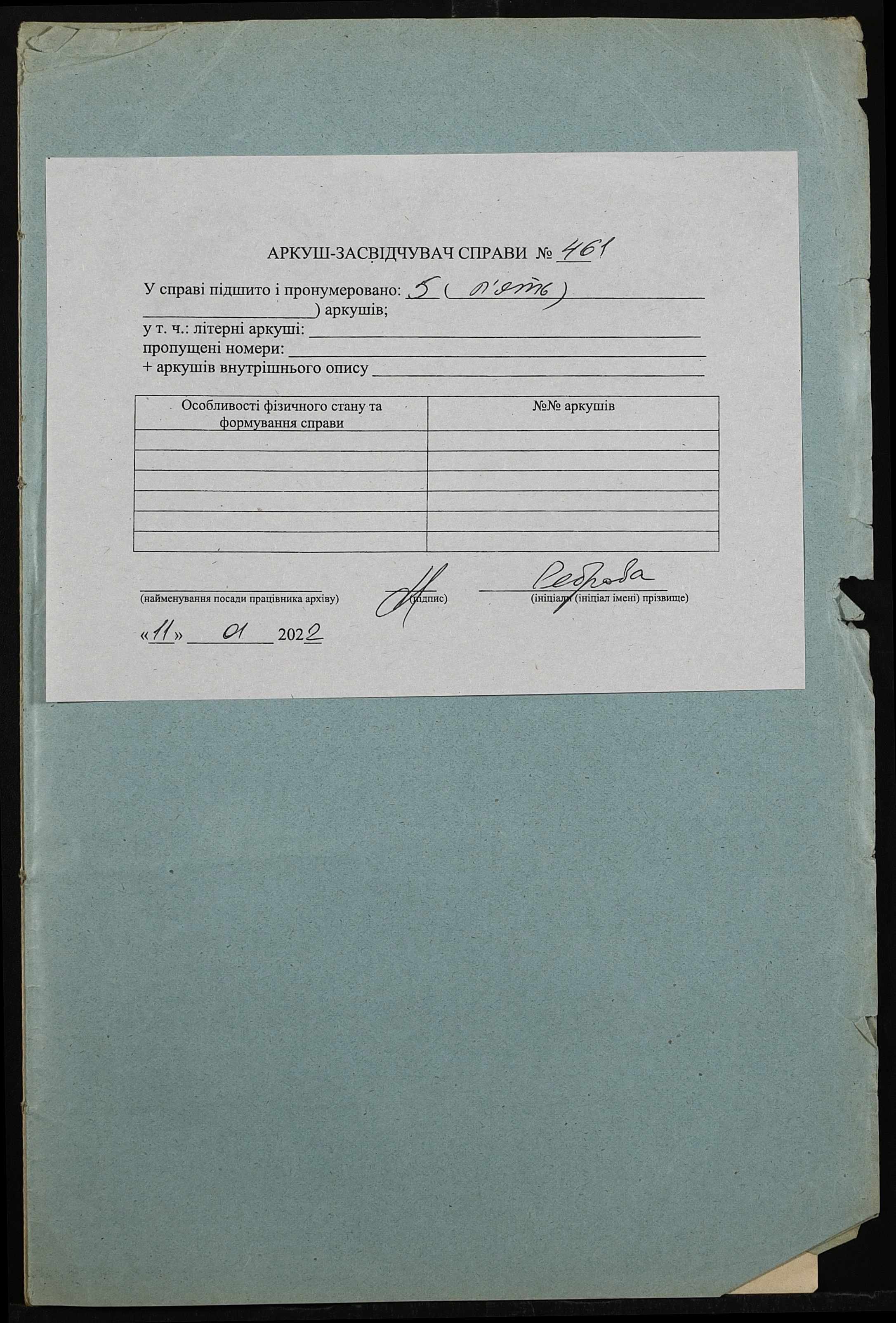 Фонд 148 / Опис 1 / Справа 461