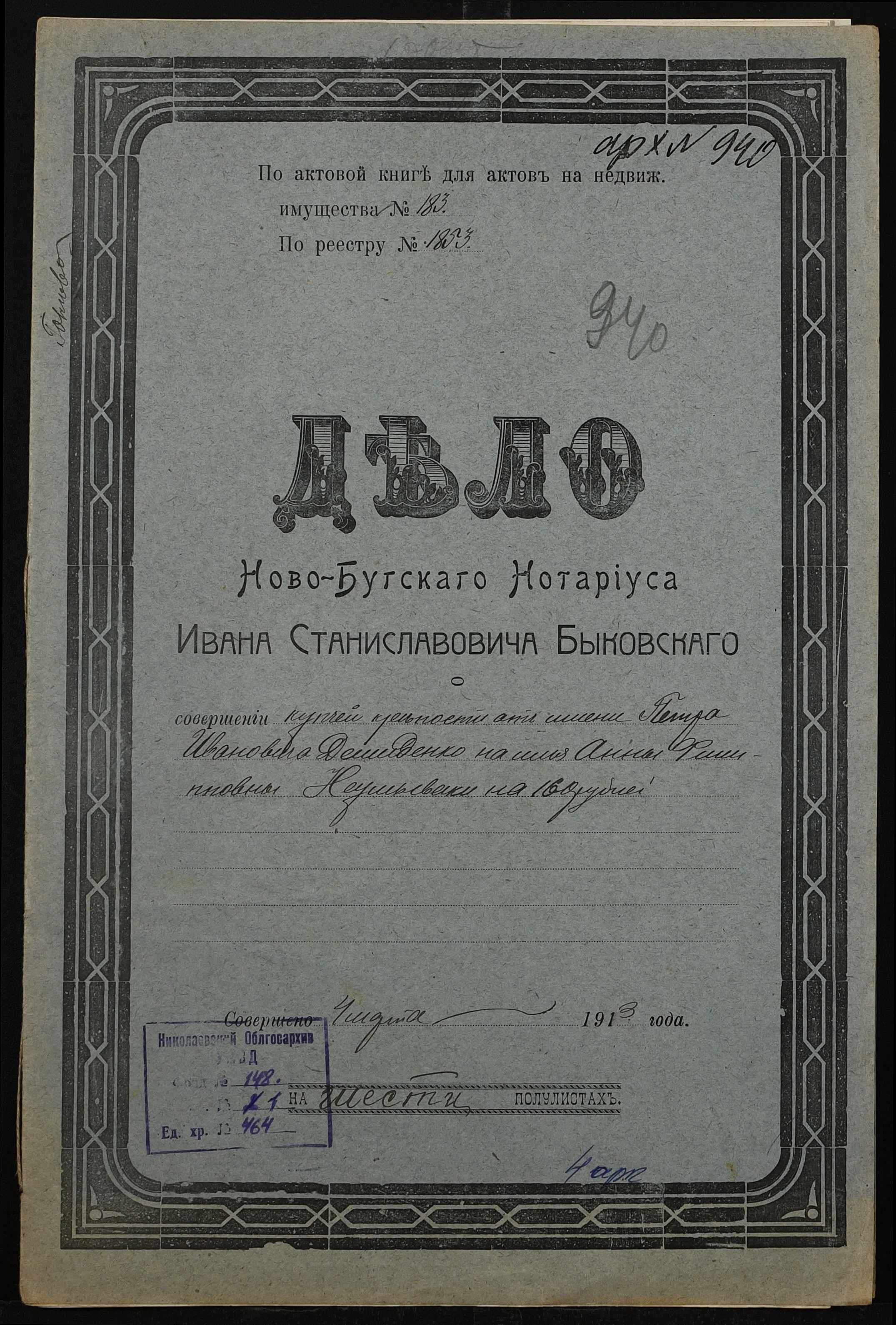 ◦ ◦ Фонд № 148 “Контора новобузького нотаріуса Биковського Івана Станіславовича”