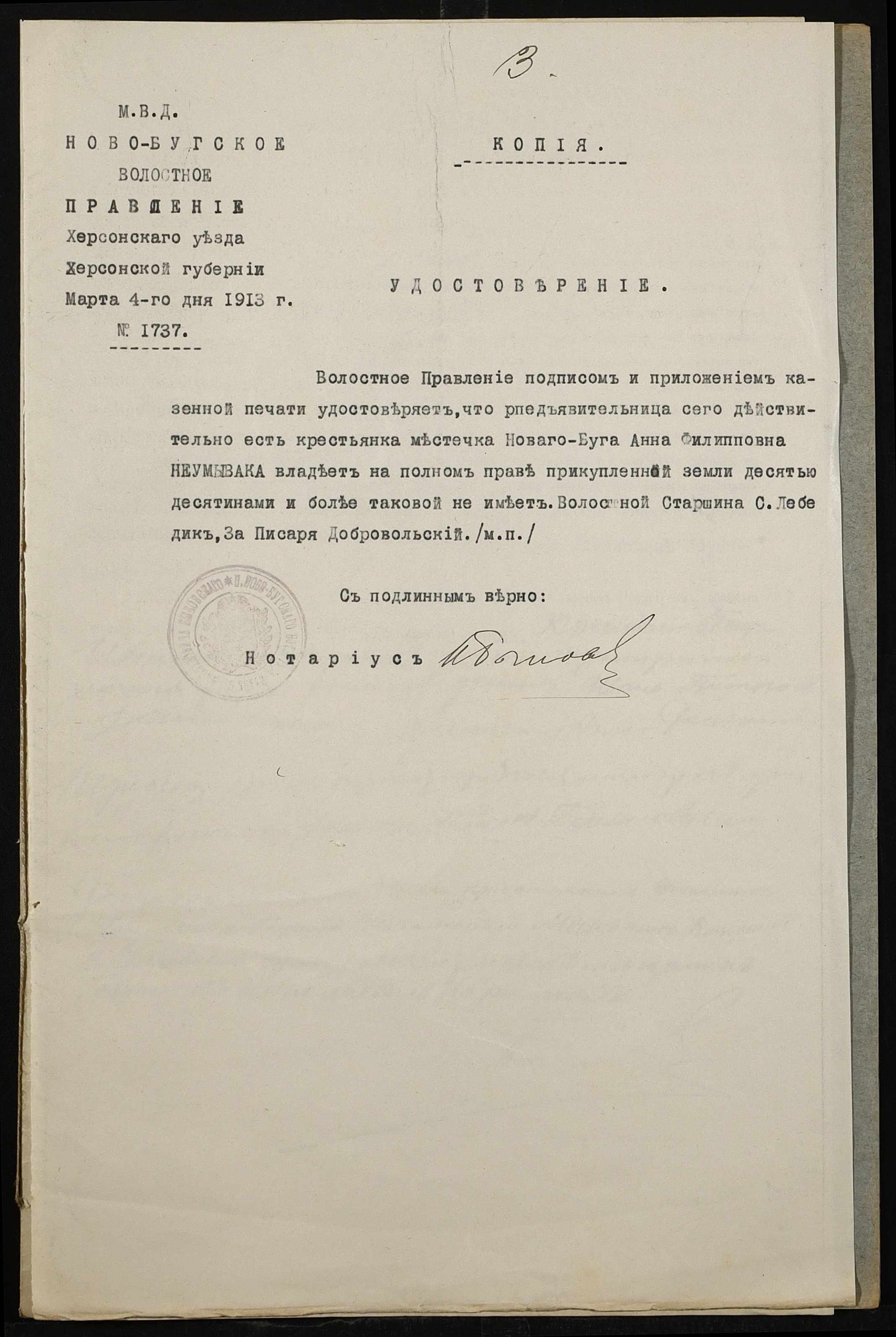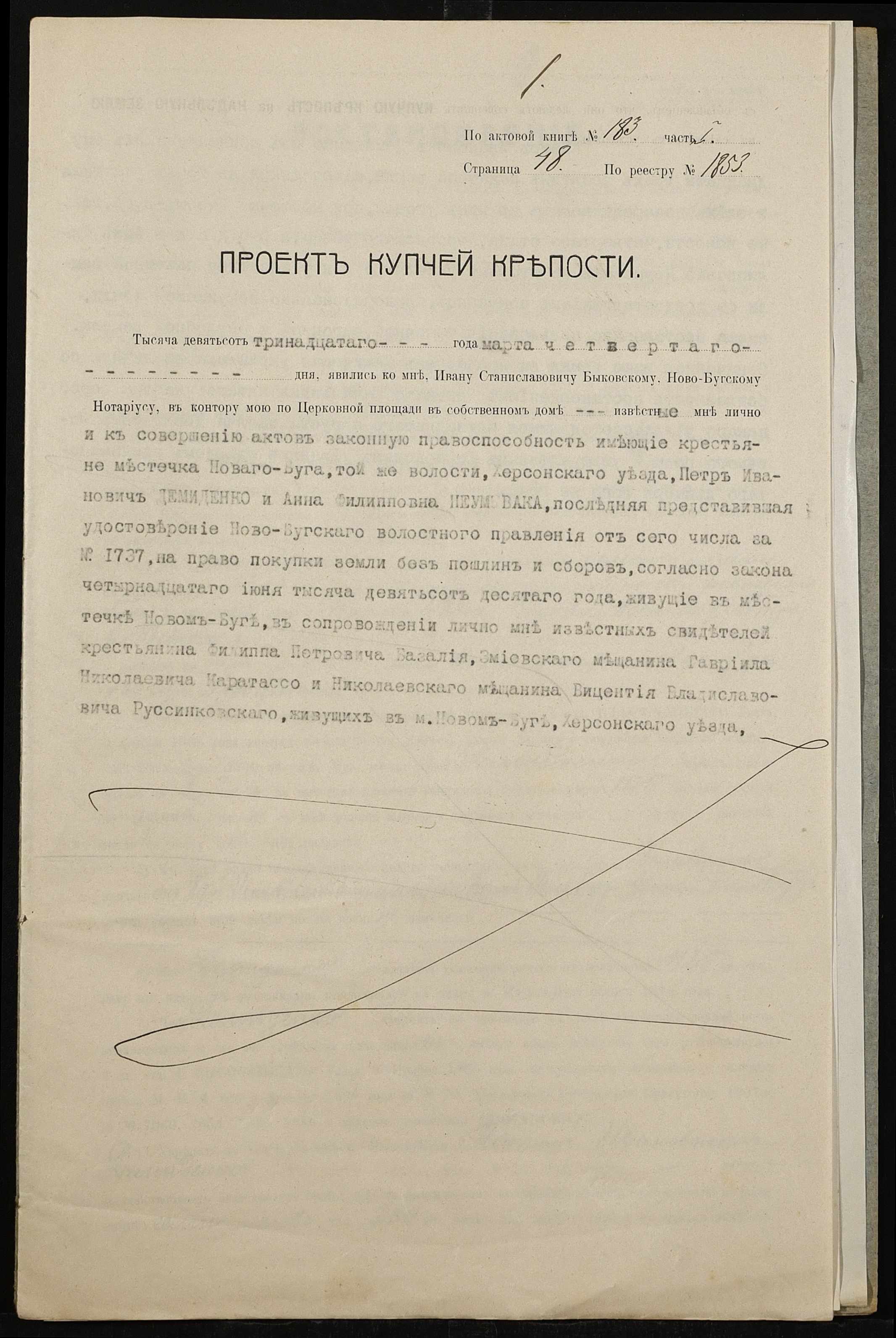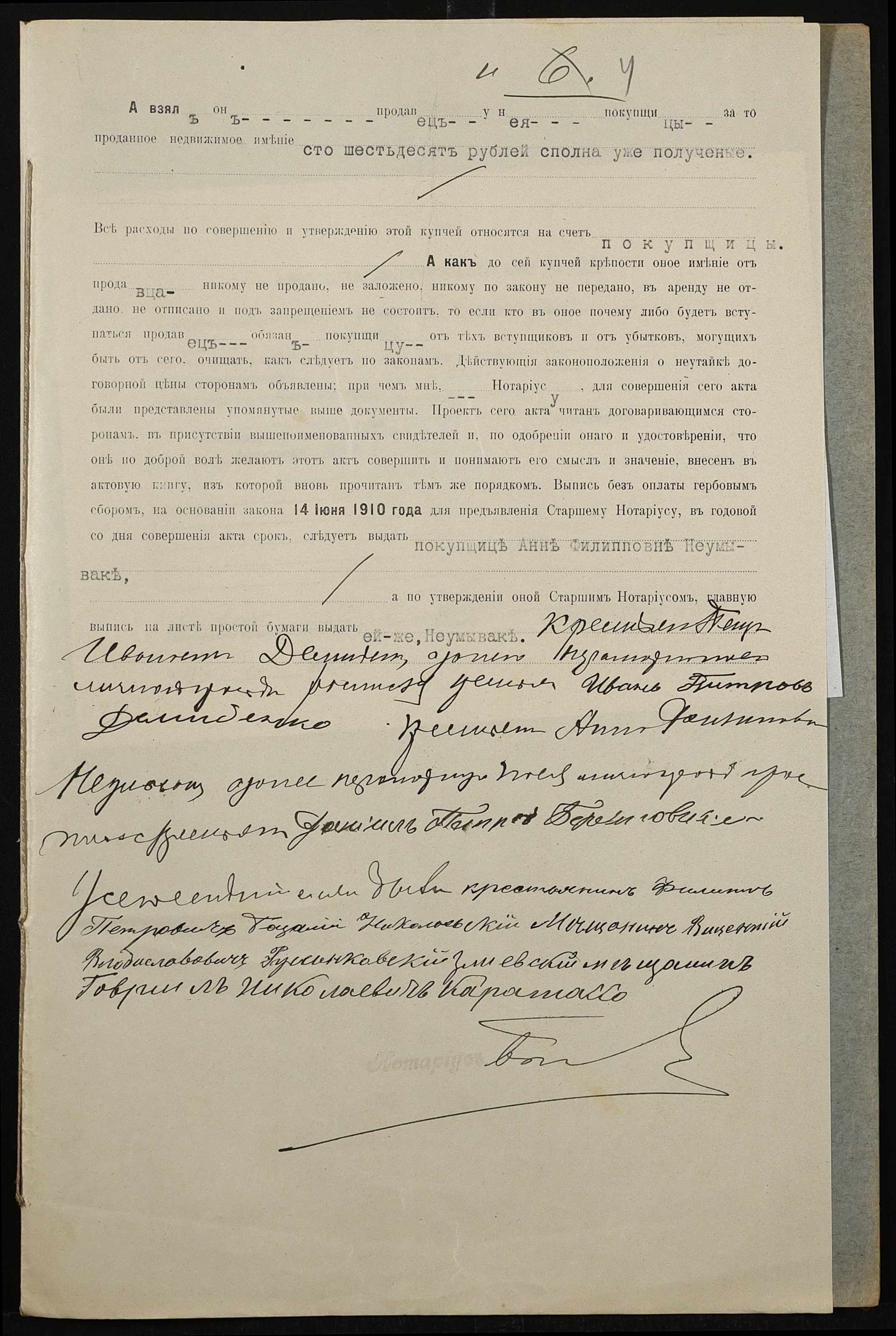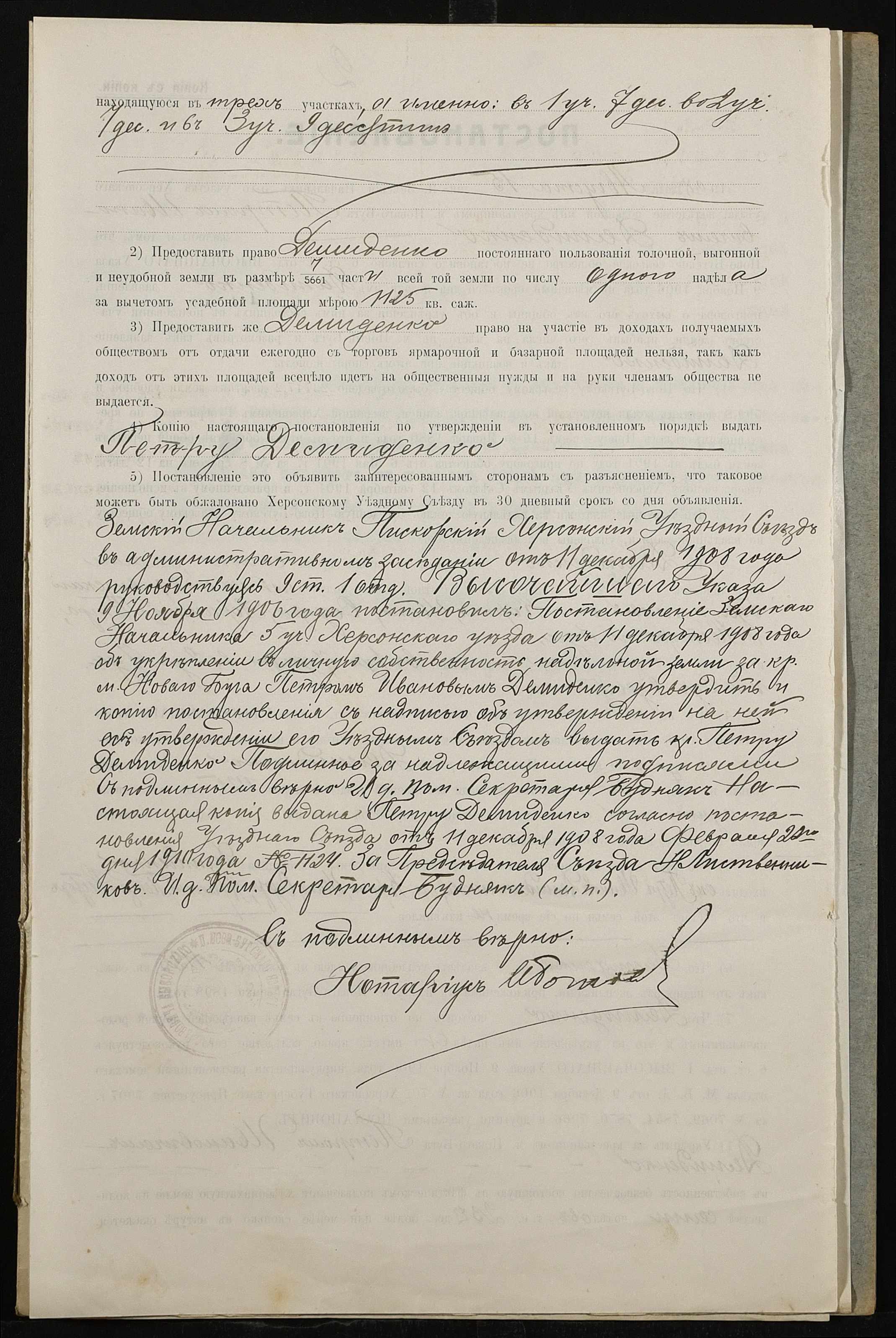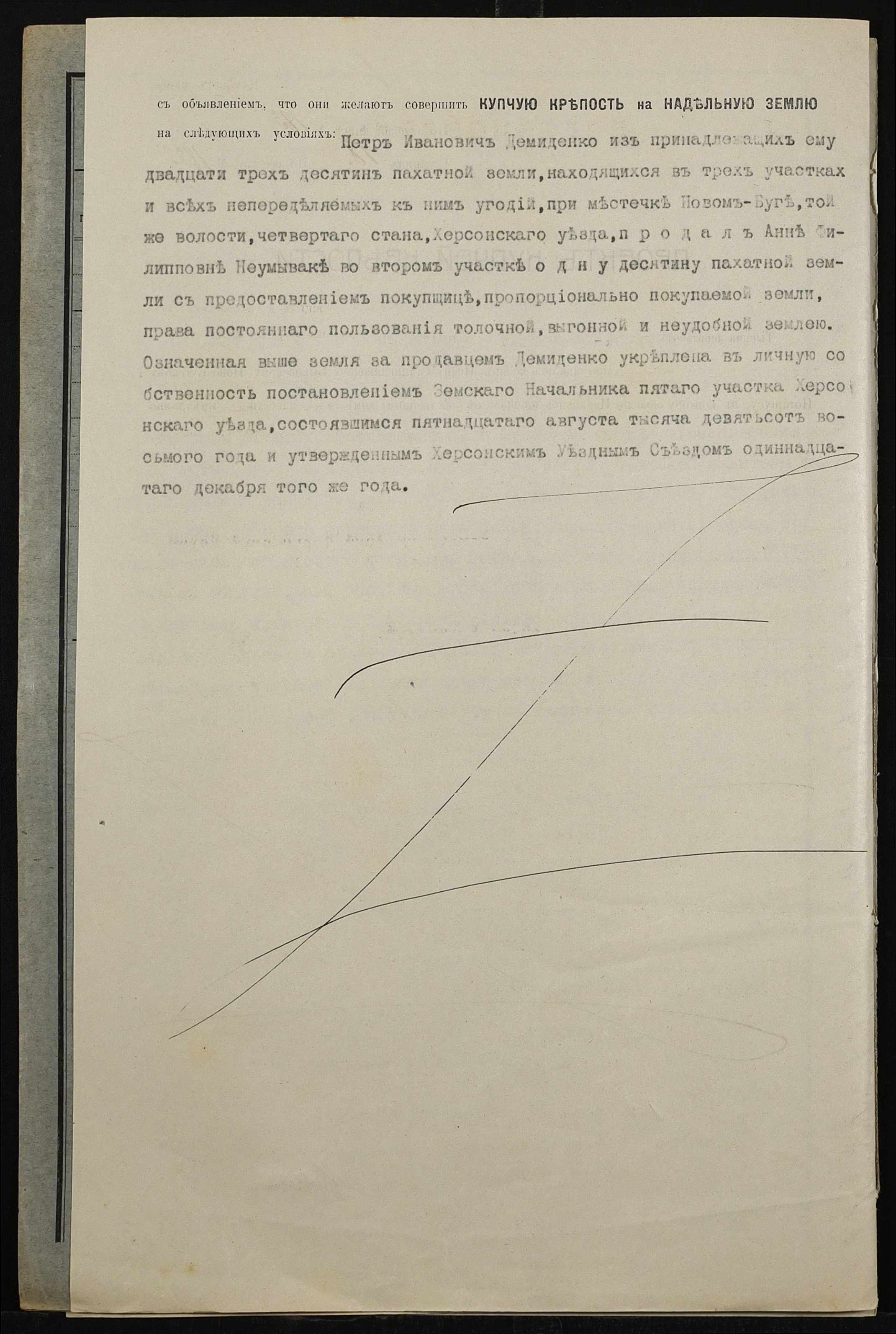 • • • • Справа № 464 “Справа про вчинення купчої про продаж землі селянином Демиденком (Демиденко) Петром Івановичем (Ивановичем) на користь селянки Неумиваки Ганни Пилипівни (Неумываки Анны Филипповны)”