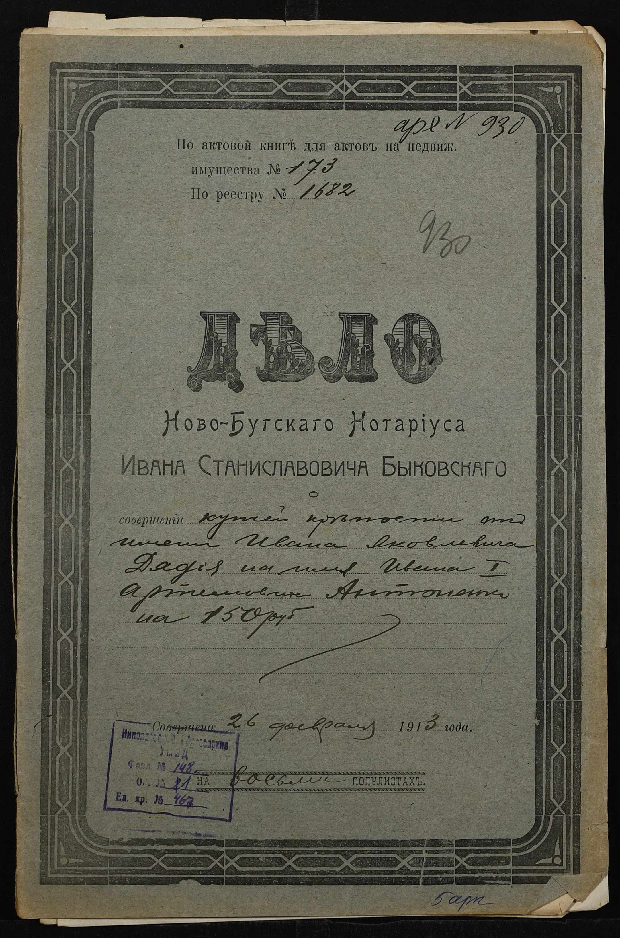 ◦ ◦ Фонд № 148 “Контора новобузького нотаріуса Биковського Івана Станіславовича”