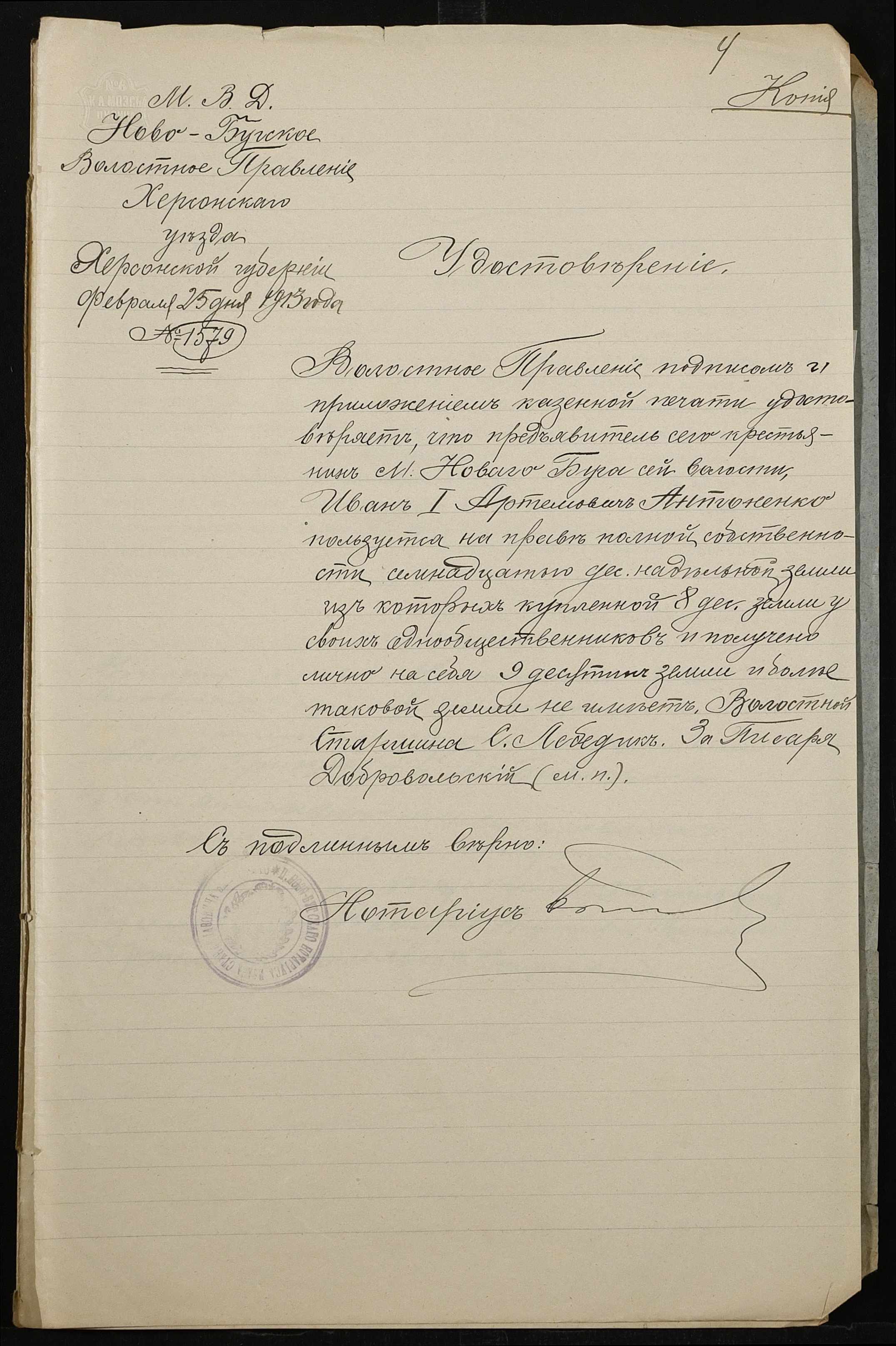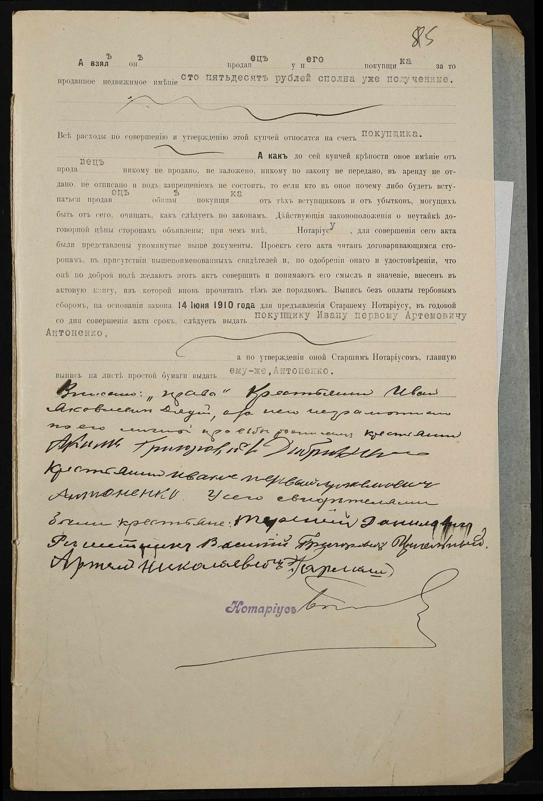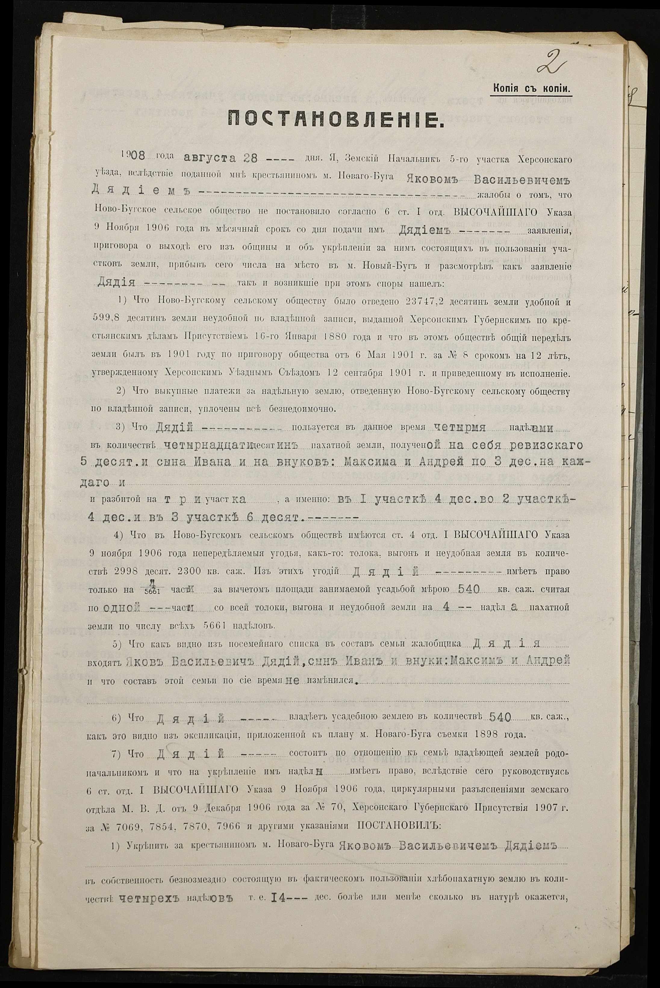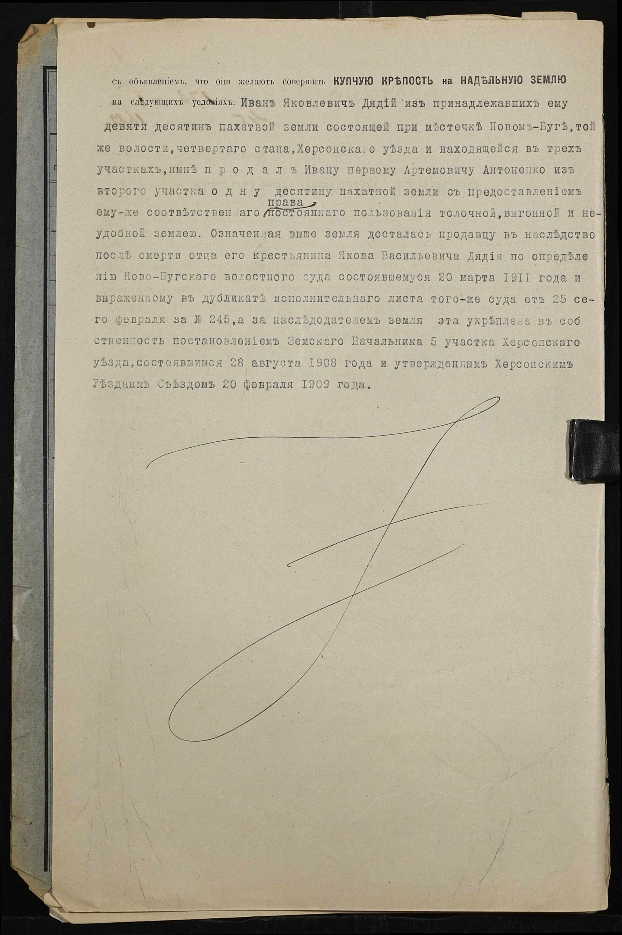 • • • • Справа № 467 “Справа про вчинення купчої про продаж землі селянином Дядієм Іваном Яковичем (Дядием Иваном Яковлевичем) на користь селянина Антоненка Івана (Антоненко Ивана) Артемовича”