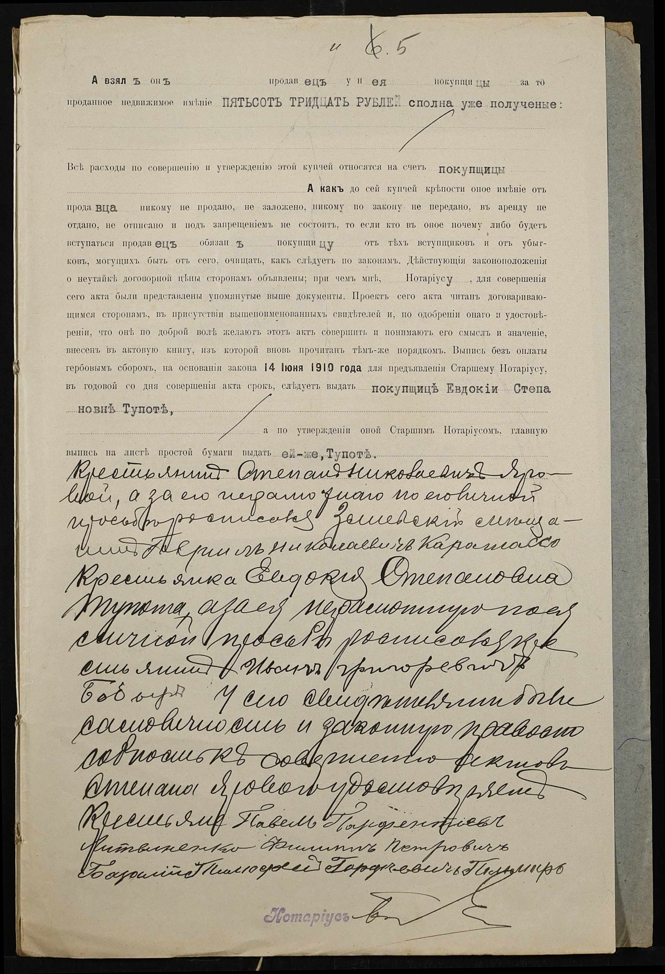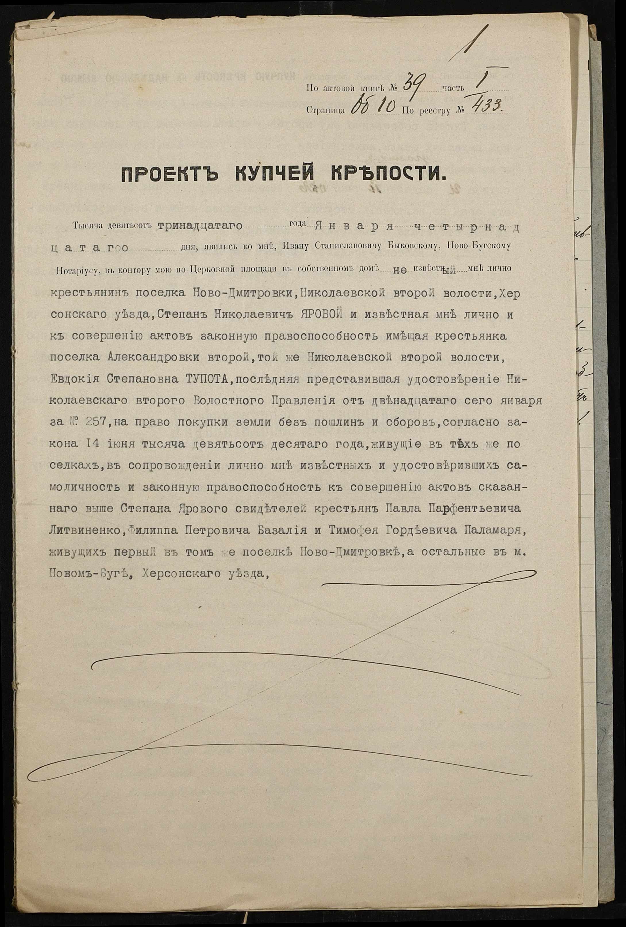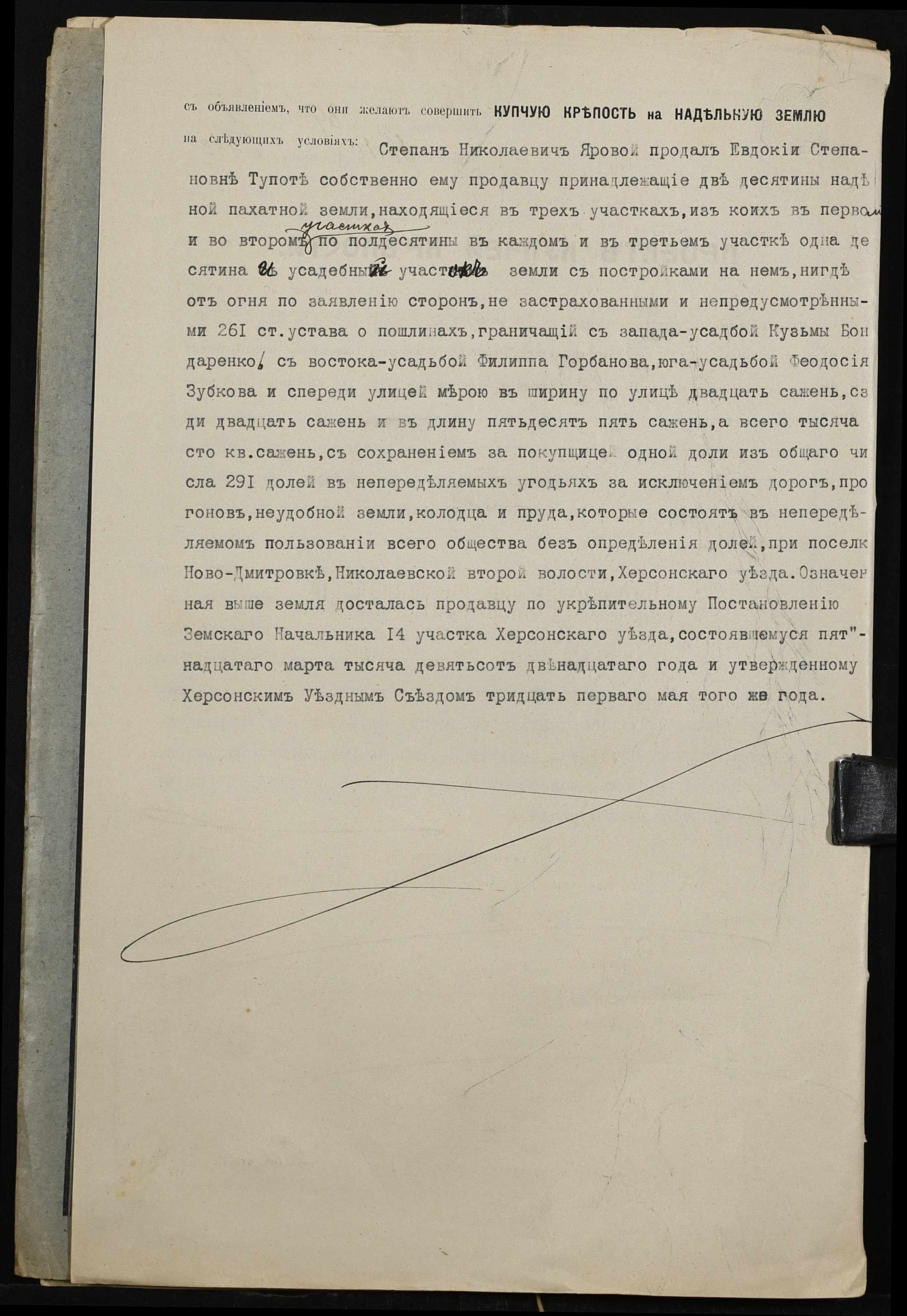 • • • • Справа № 470 “Справа про вчинення купчої про продаж землі селянином Яровим (Яровым) Степаном Миколайовичем (Николаевичем) на користь селянки Тупоти Євдокії Степанівни (Тупоты Евдокии Степановны)”