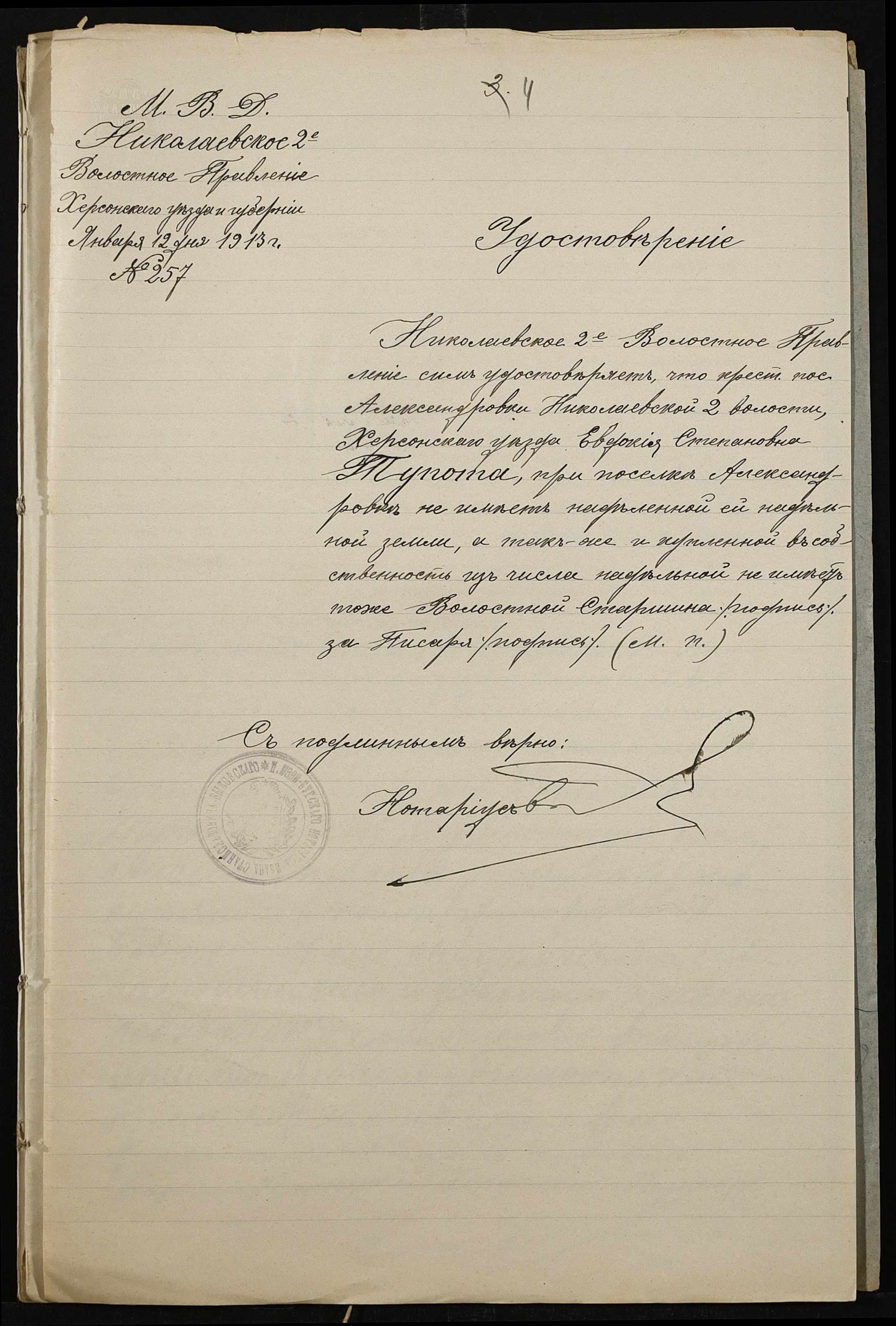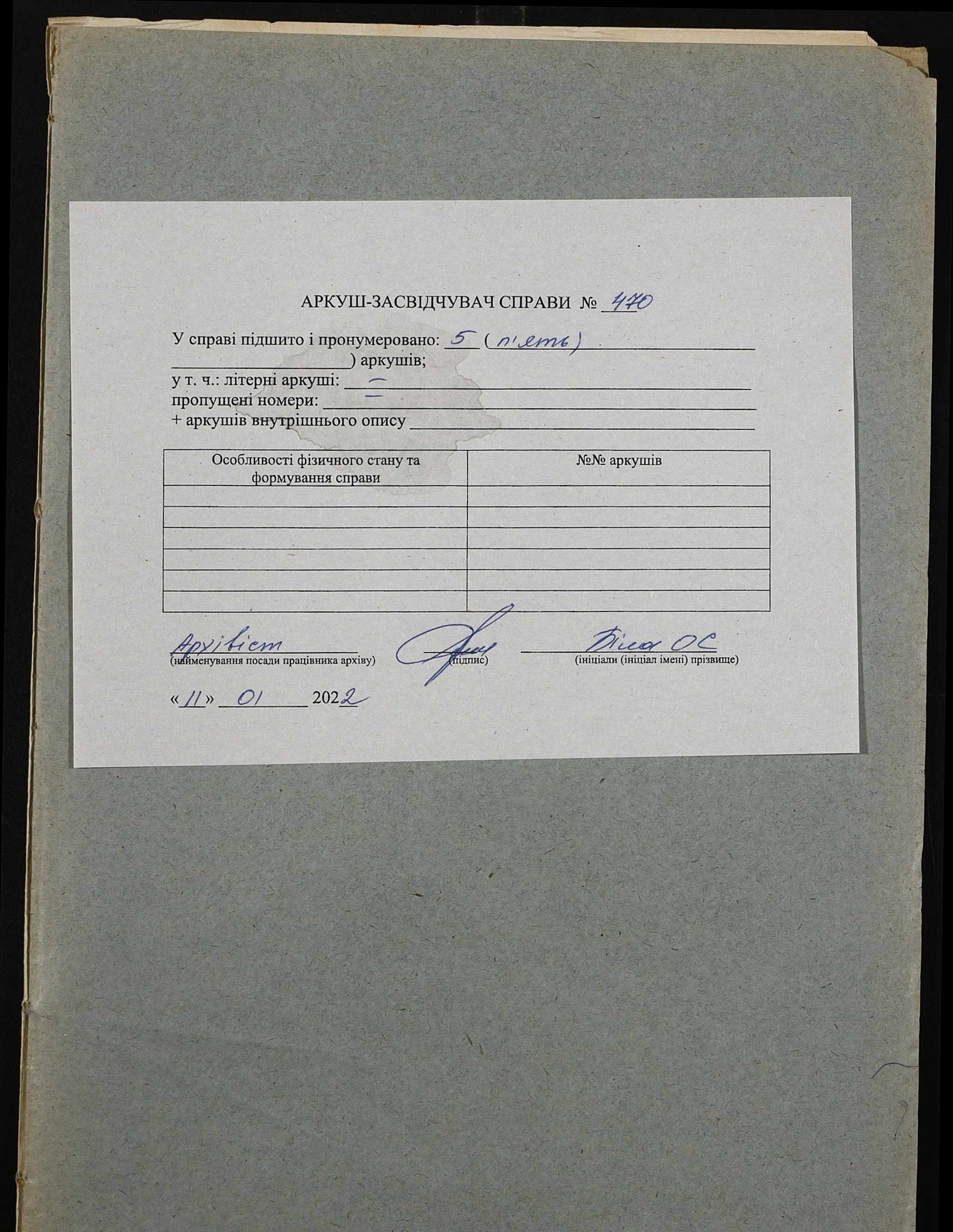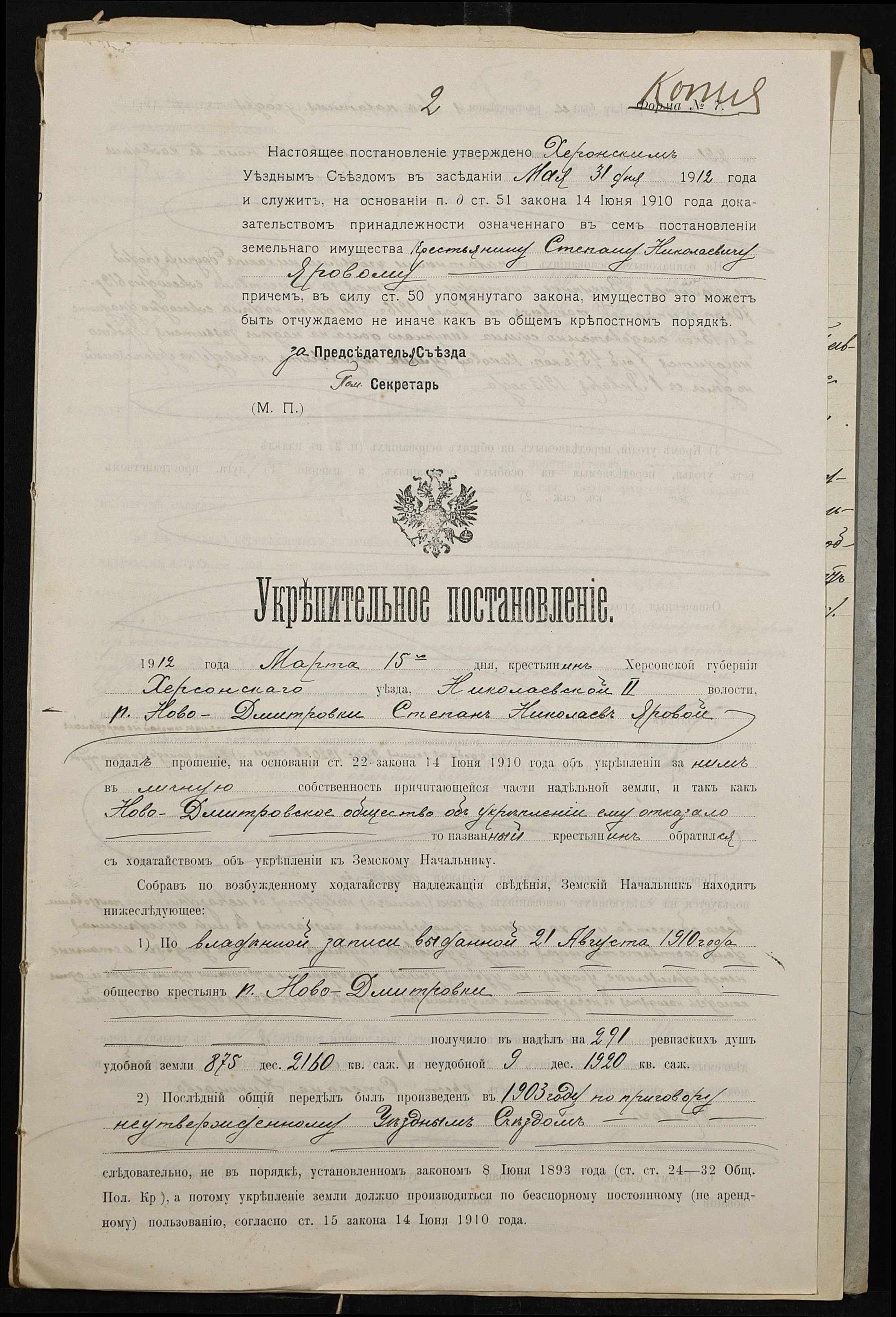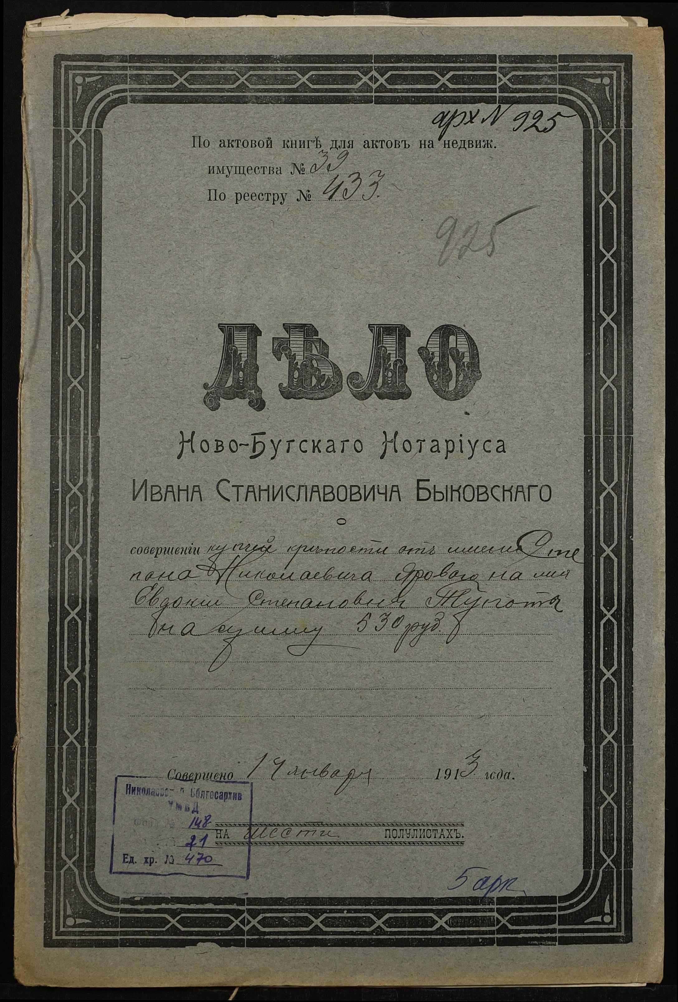 • • • • Справа № 470 “Справа про вчинення купчої про продаж землі селянином Яровим (Яровым) Степаном Миколайовичем (Николаевичем) на користь селянки Тупоти Євдокії Степанівни (Тупоты Евдокии Степановны)”