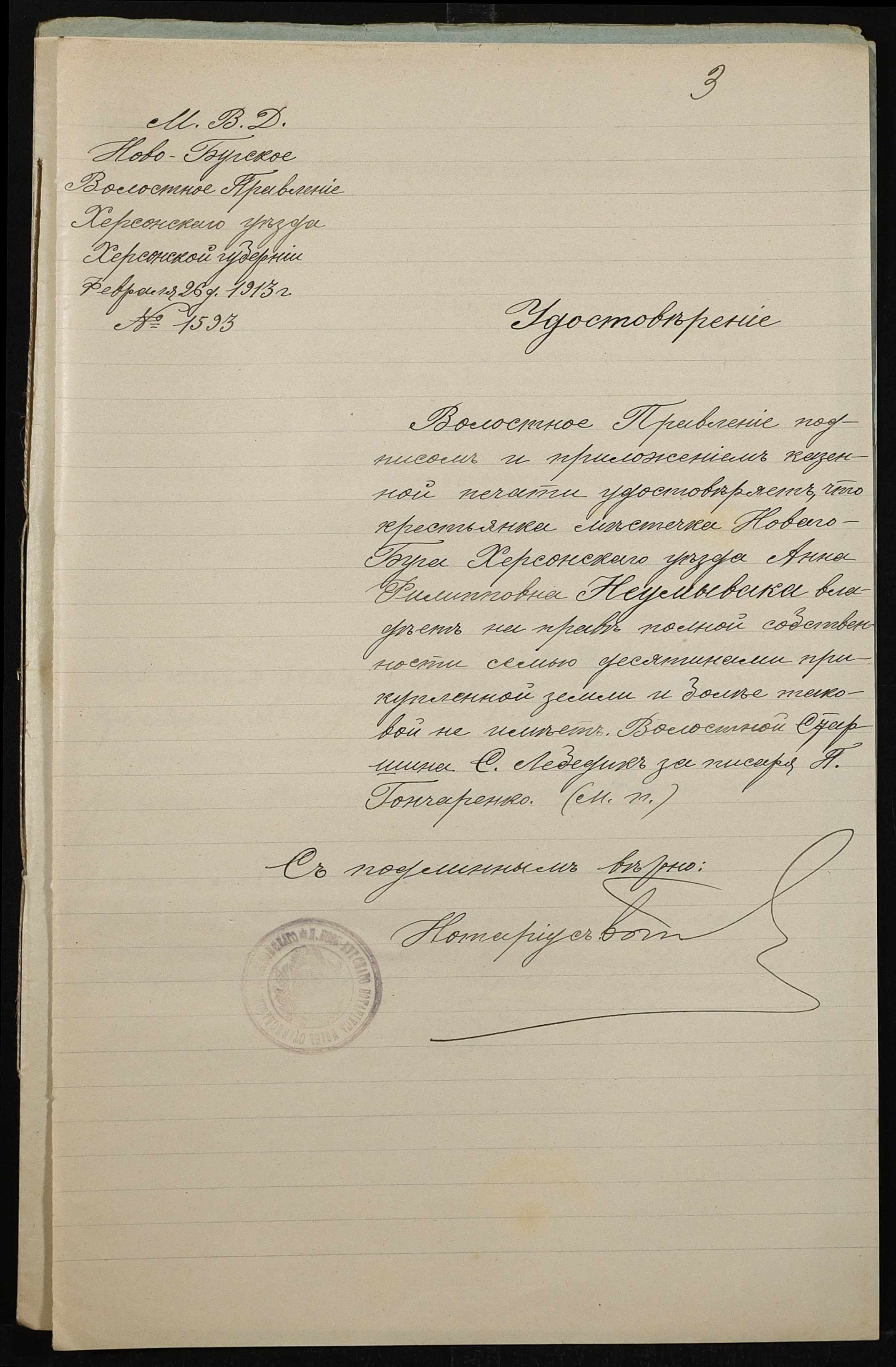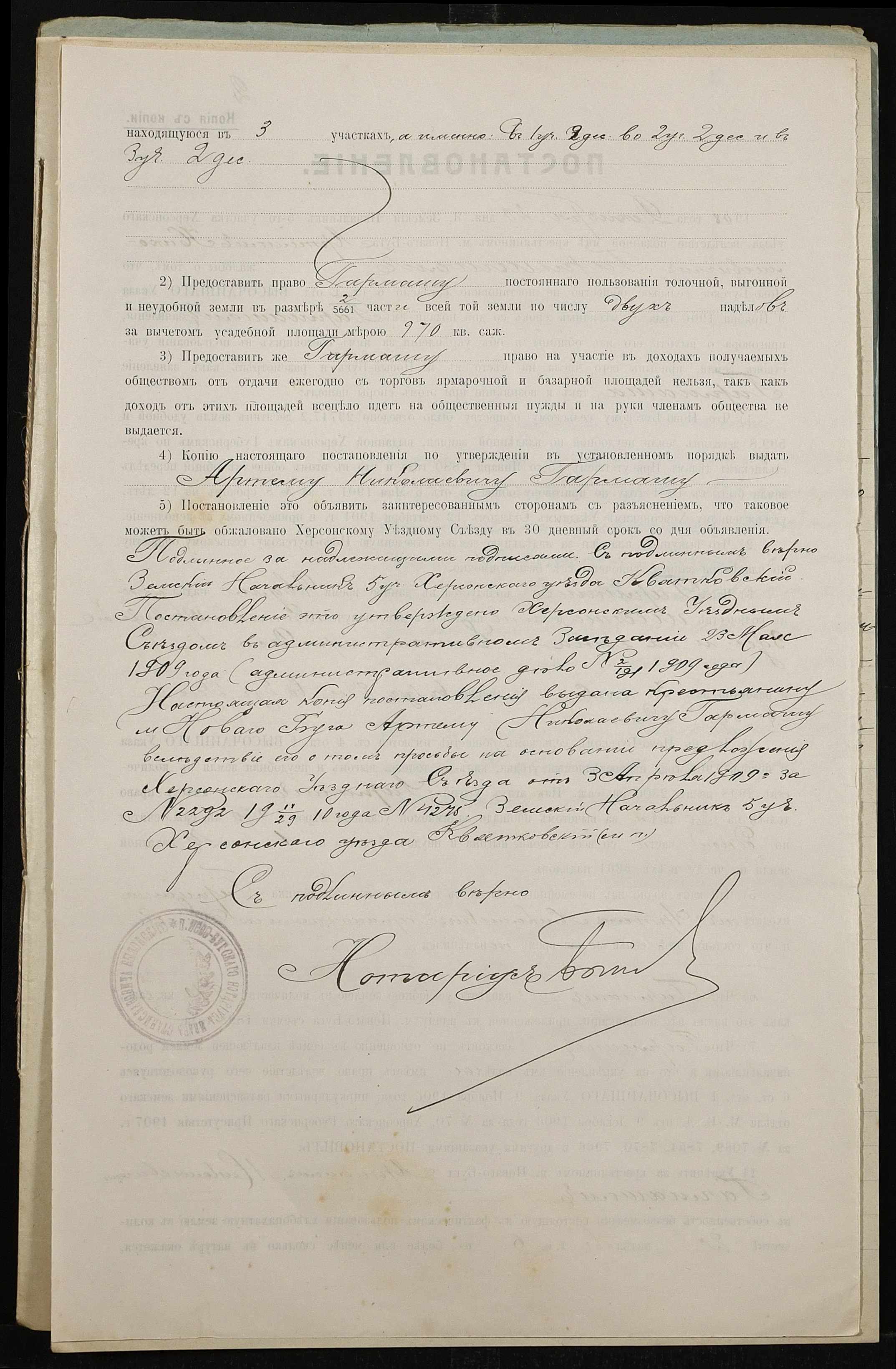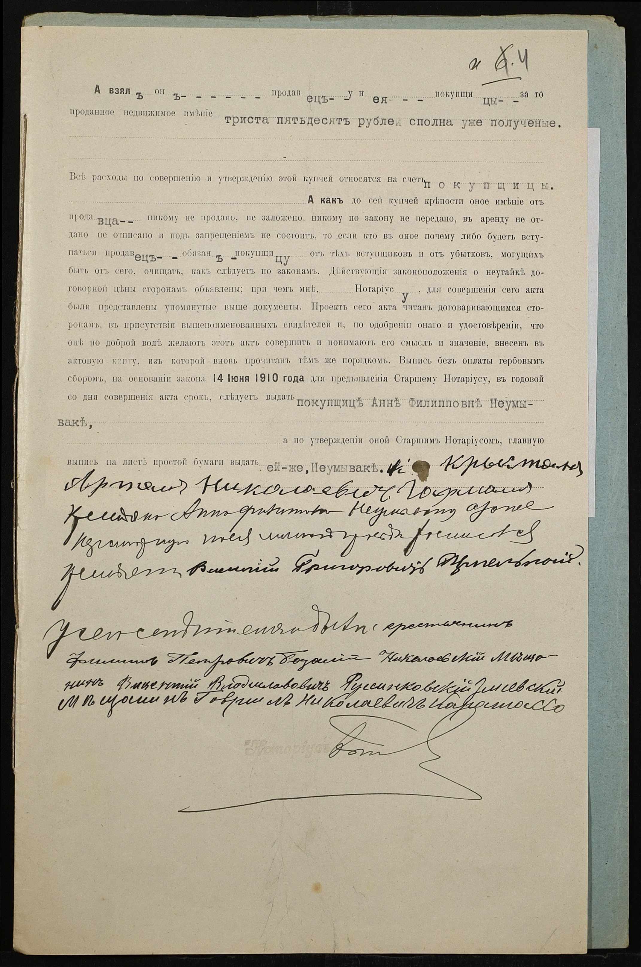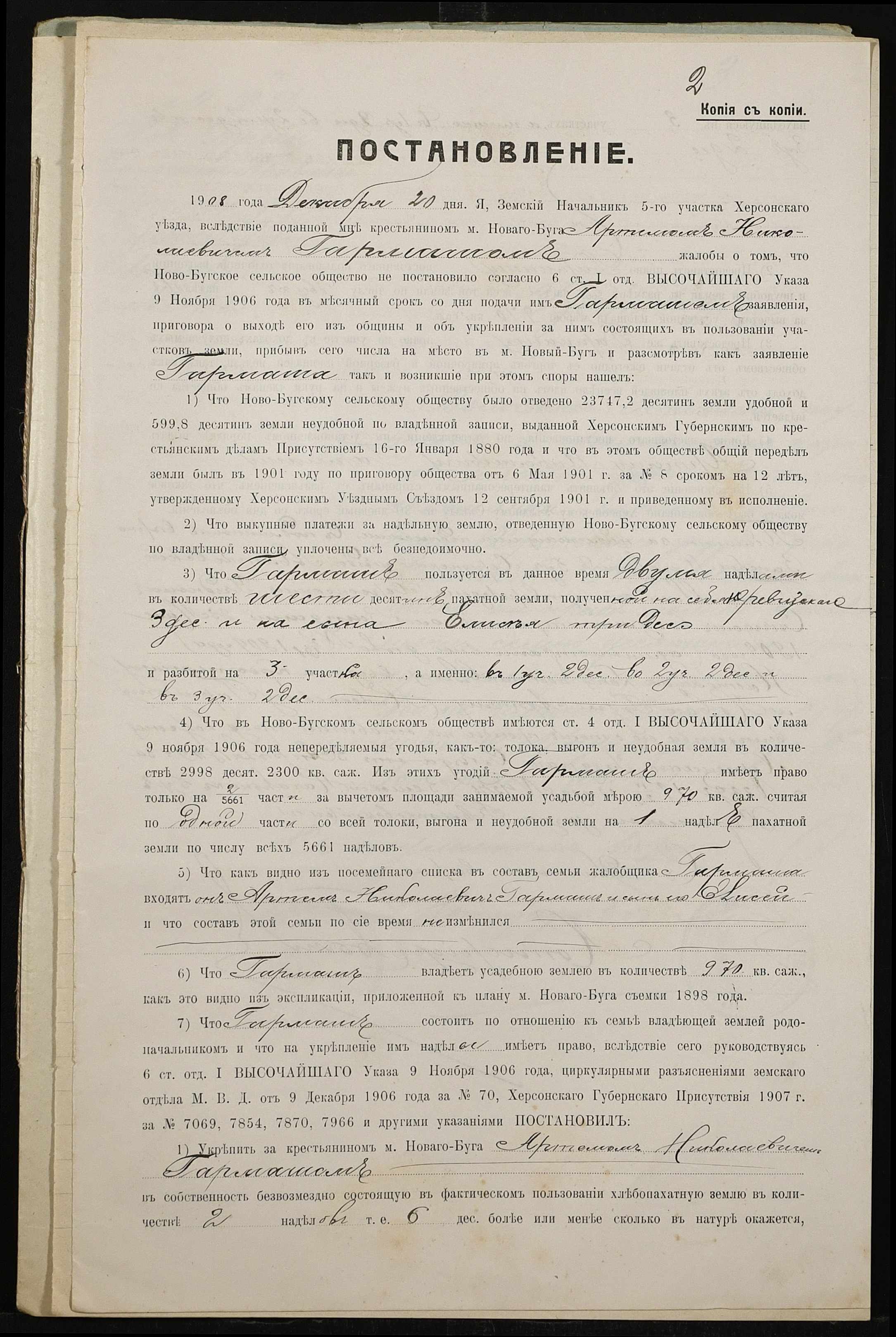 • • • • Справа № 479 “Справа про вчинення купчої про продаж землі селянином Гармашем Артемом Миколайовичем (Николаевичем) на користь селянки Неумиваки Ганни Пилипівни (Неумываки Анны Филипповны)”