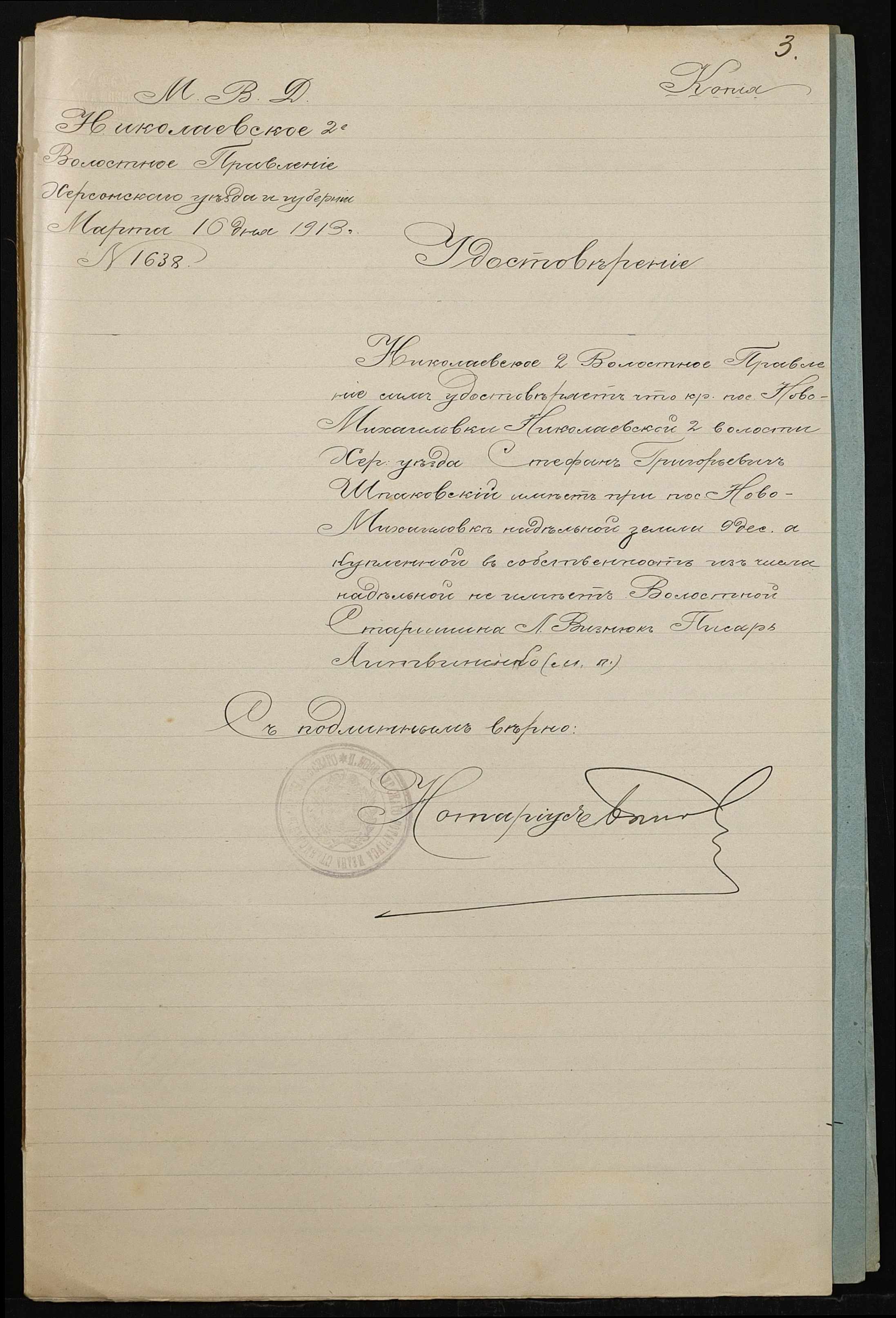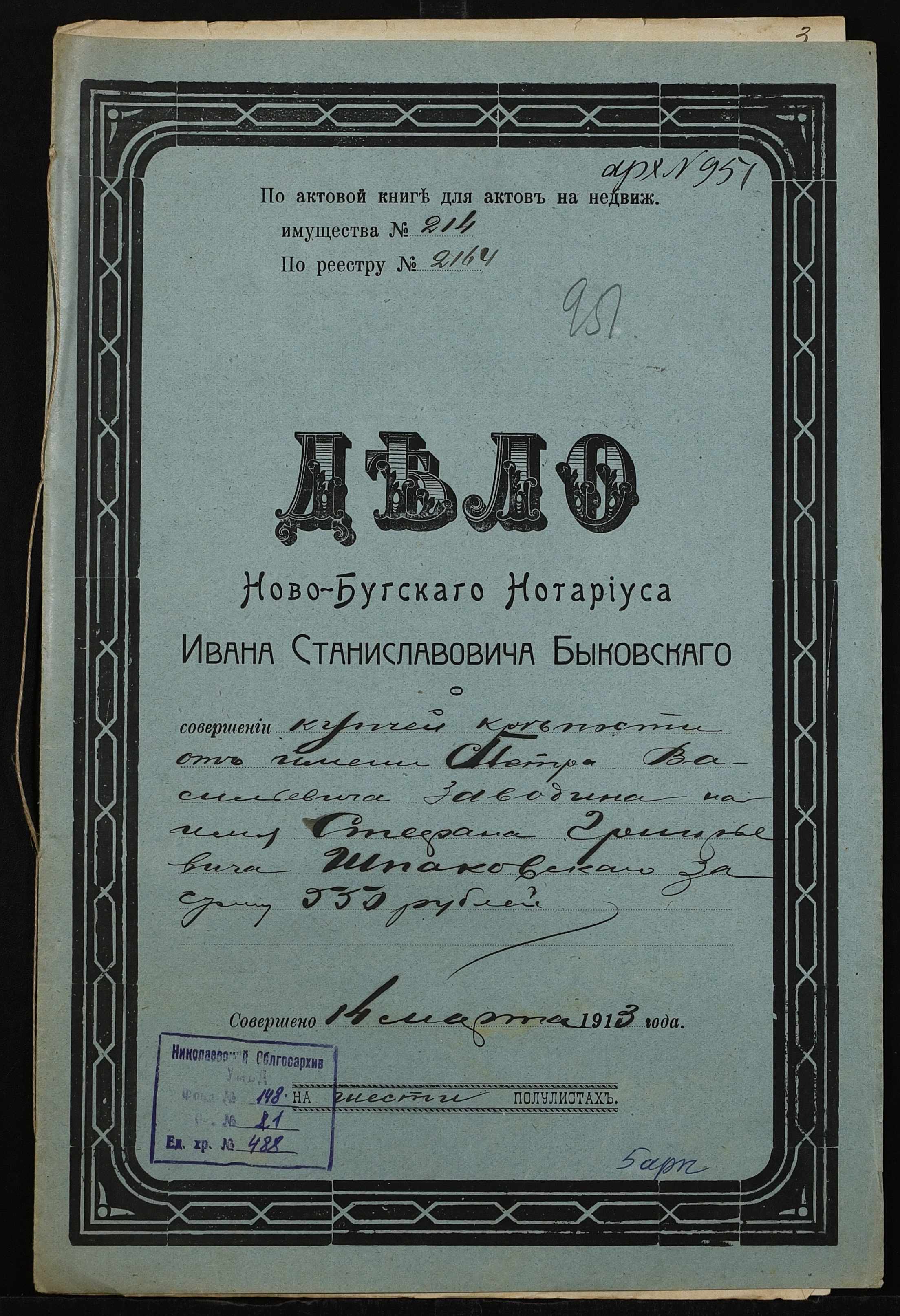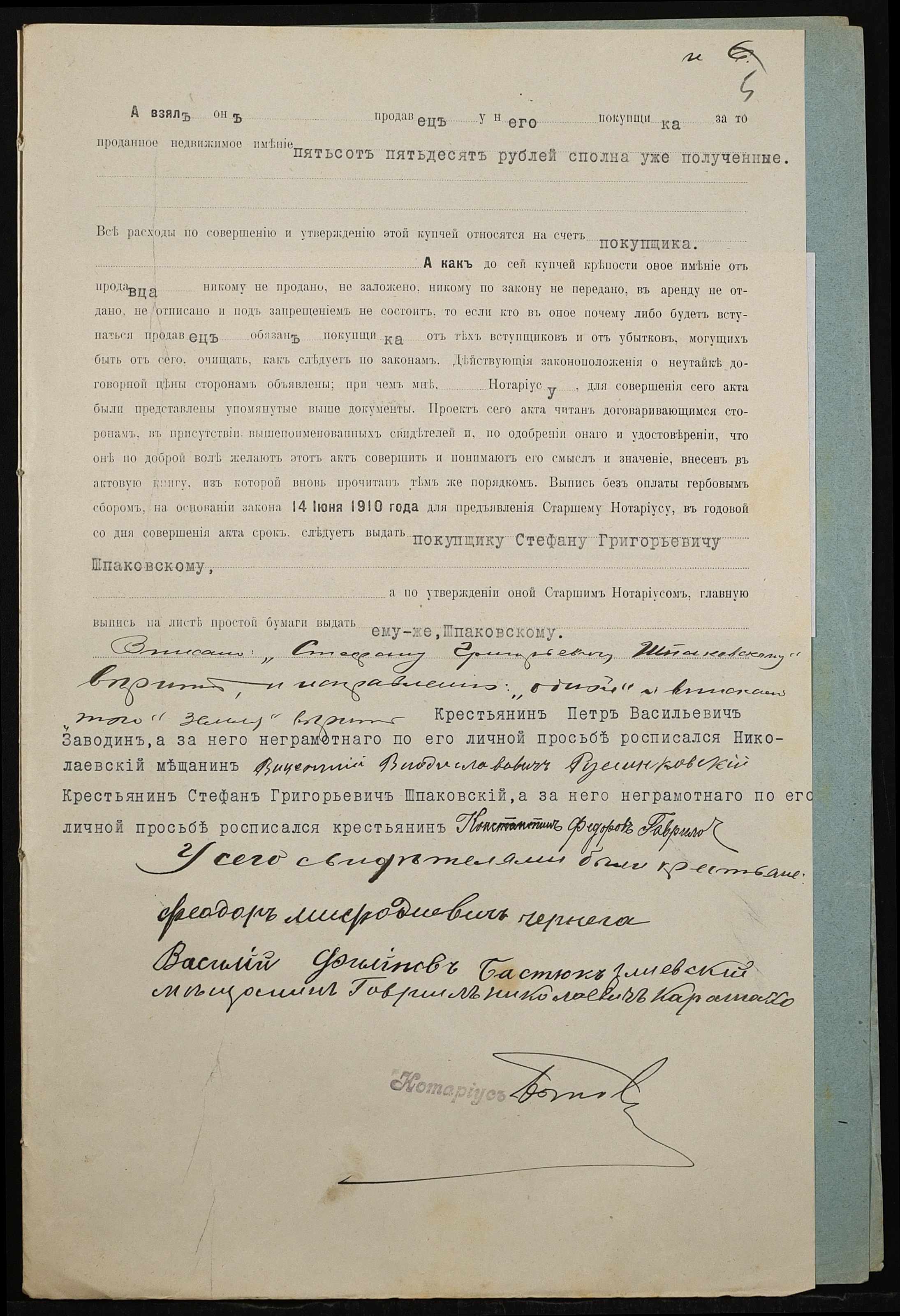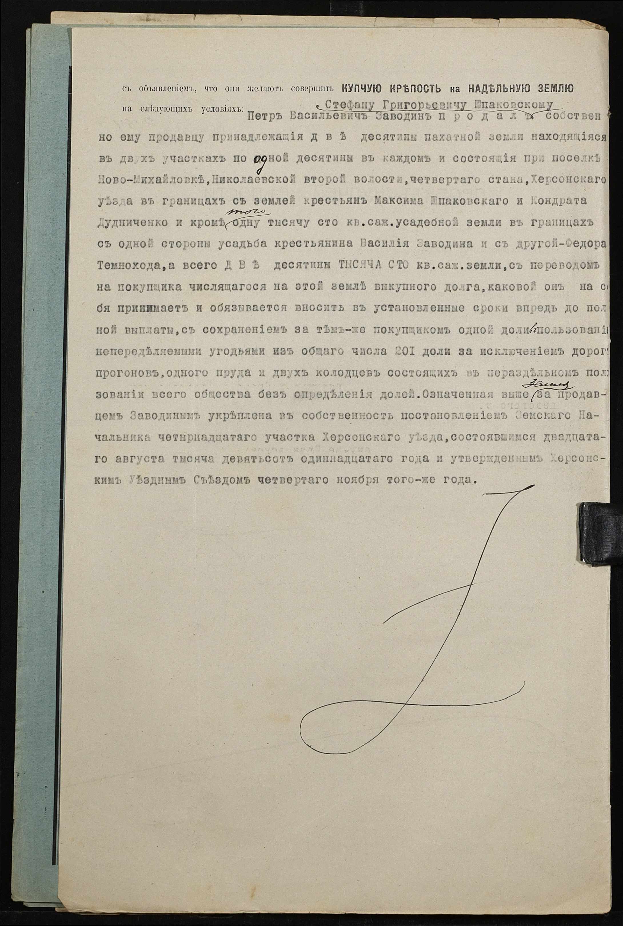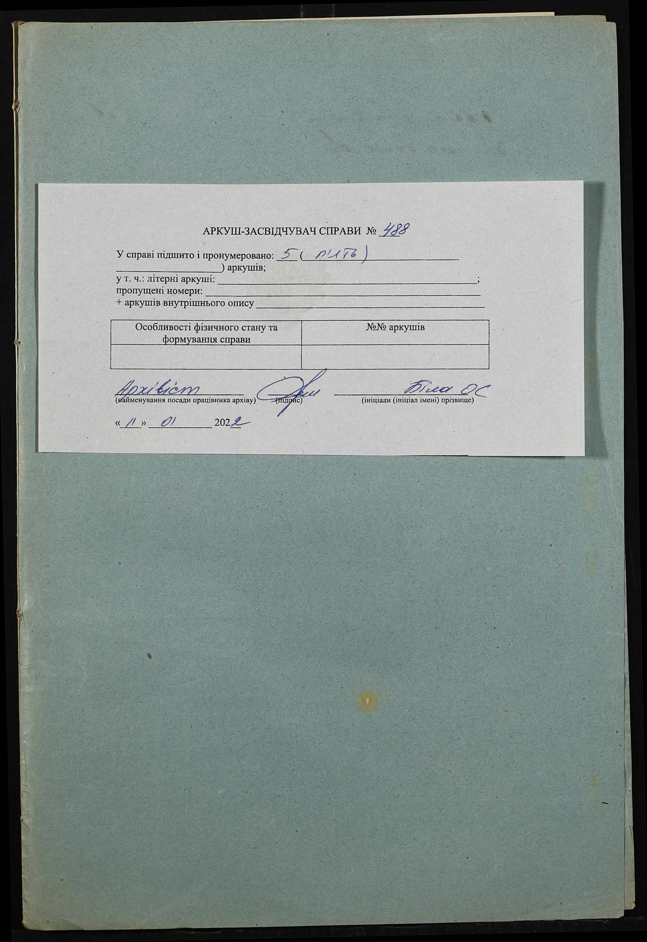 • • • • Справа № 488 “Справа про вчинення купчої про продаж землі селянином Заводіним (Заводиным) Петром Васильовичем (Васильевичем) на користь селянина Шпаковського (Шпаковского) Стефана Григоровича (Григорьевича)”