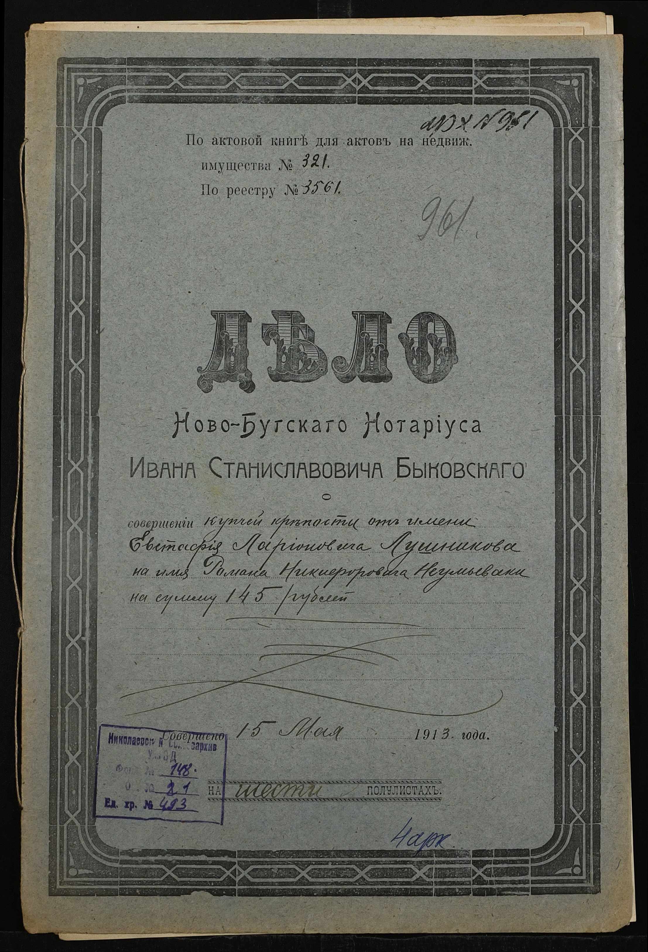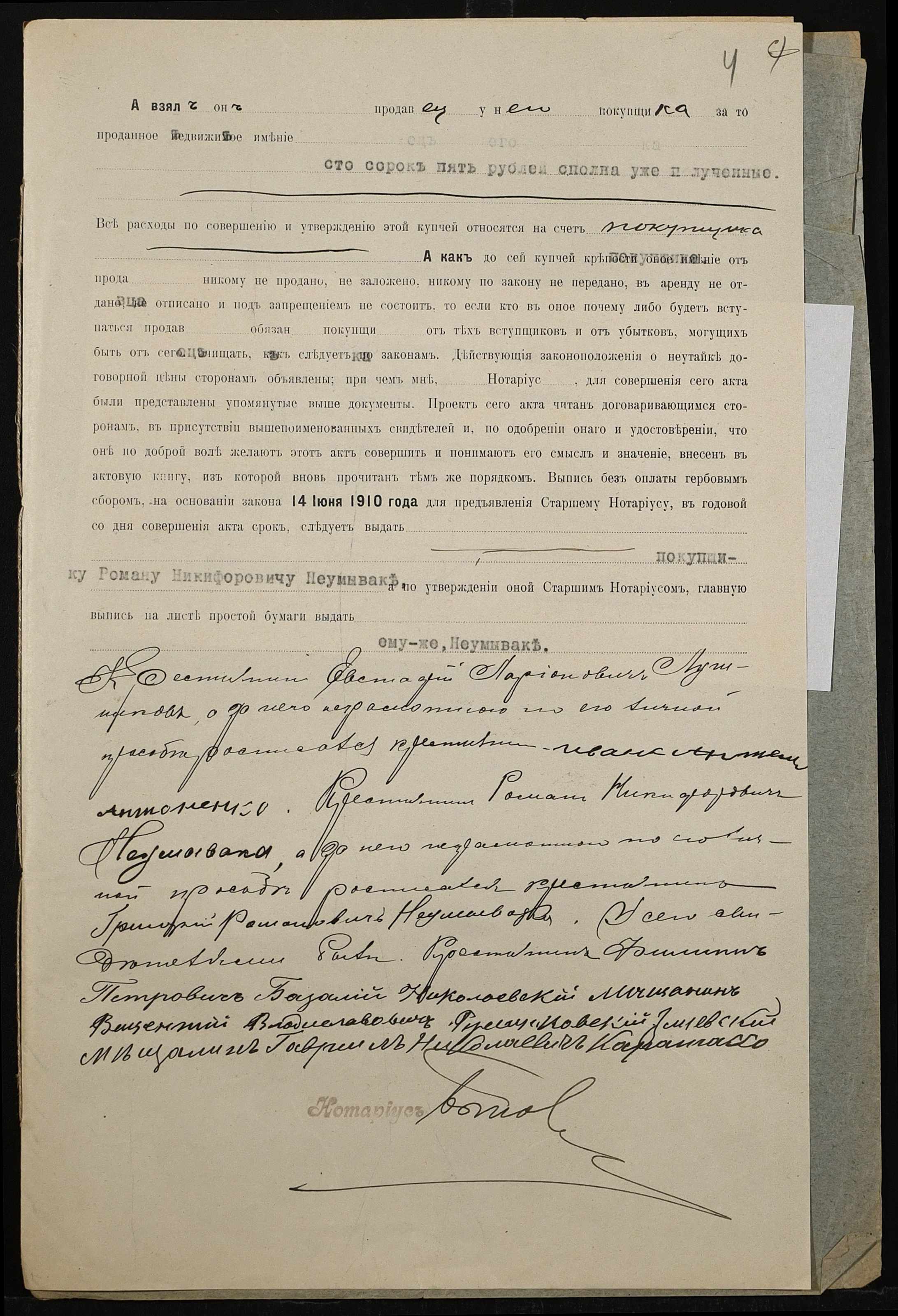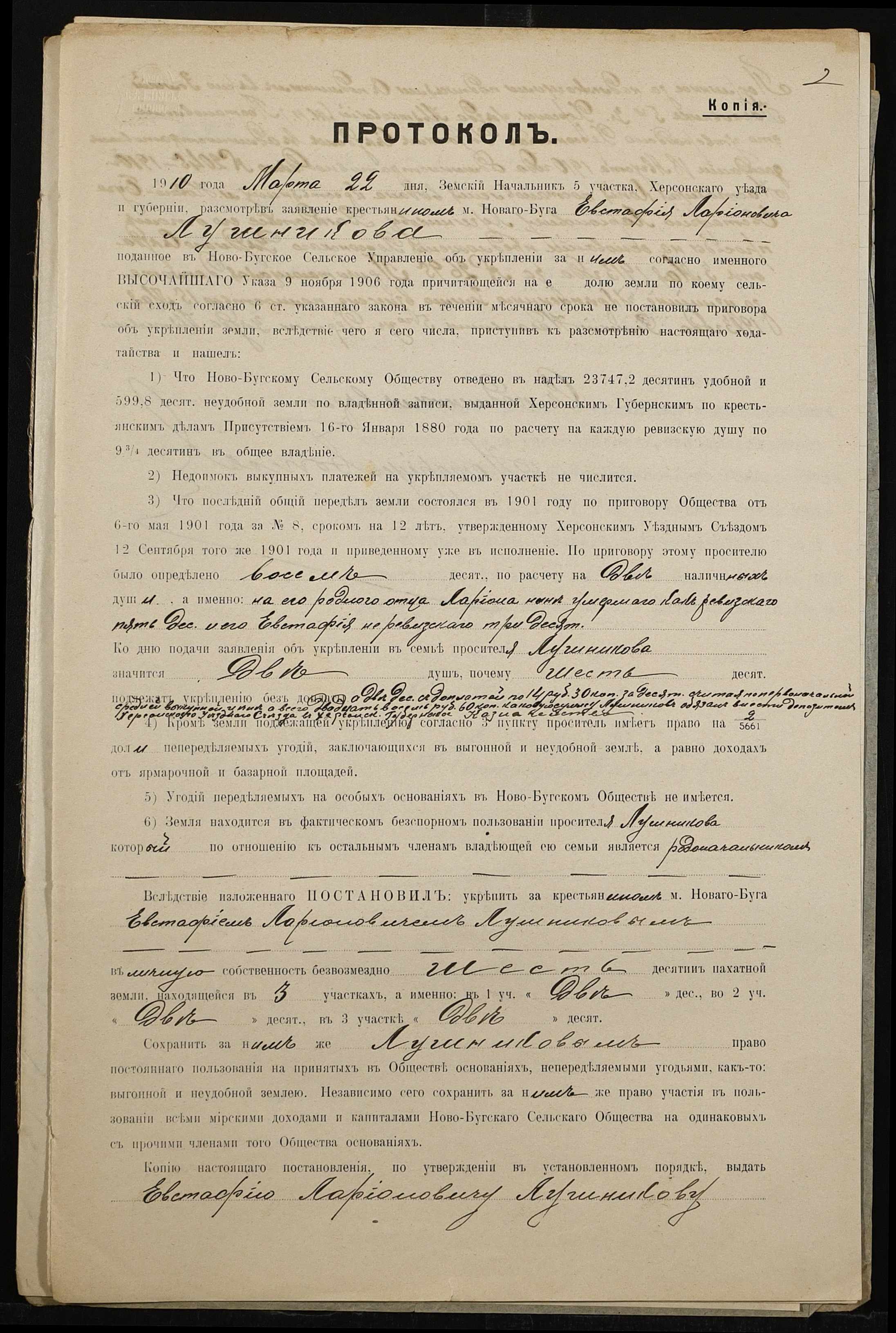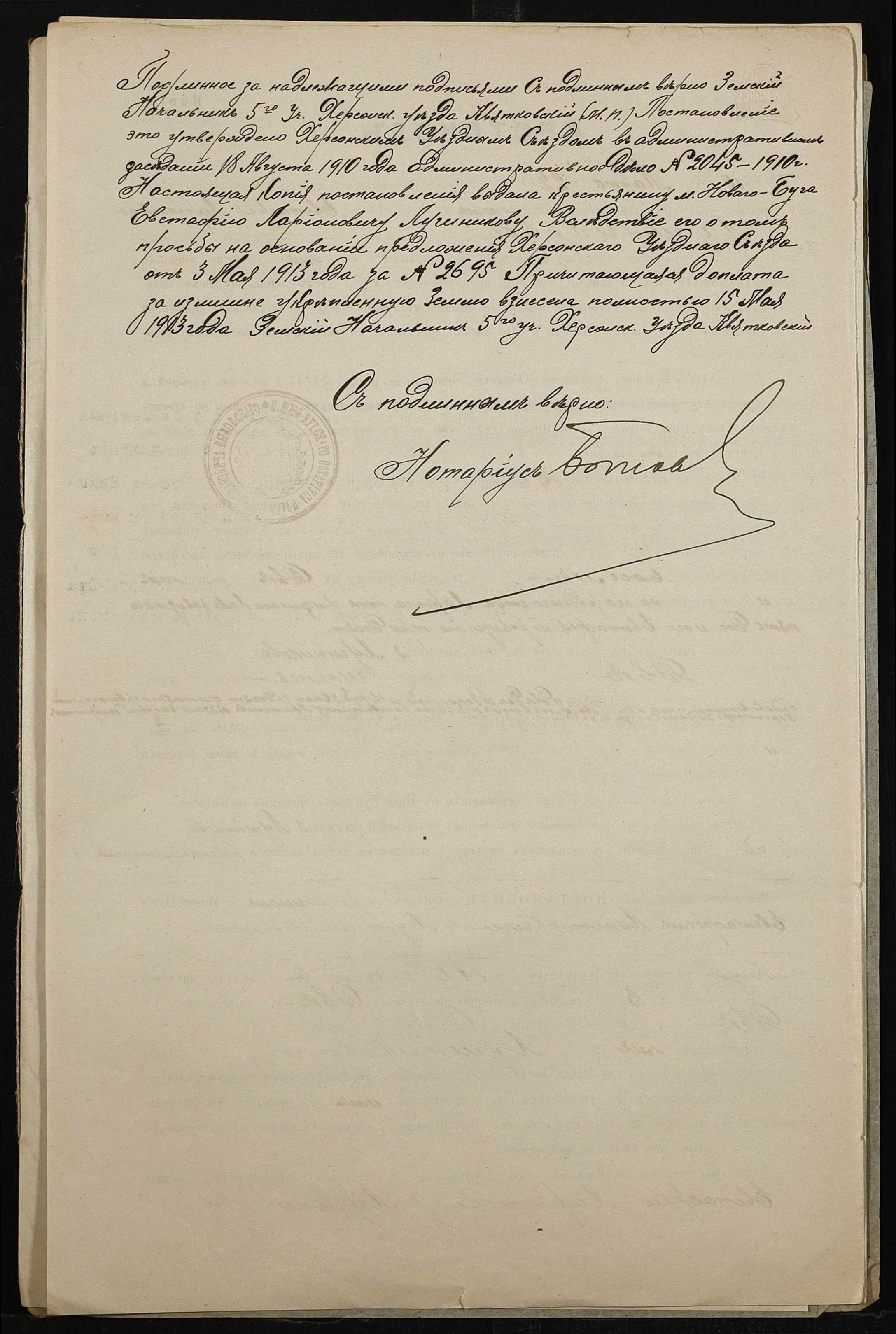 • • • • Справа № 493 “Справа про вчинення купчої про продаж землі селянином Лушниковим Євстафієм Ларіоновичем (Лушниковым Евстафием Ларионовичем) на користь селянина Неумиваки (Неумываки) Романа Никифоровича”