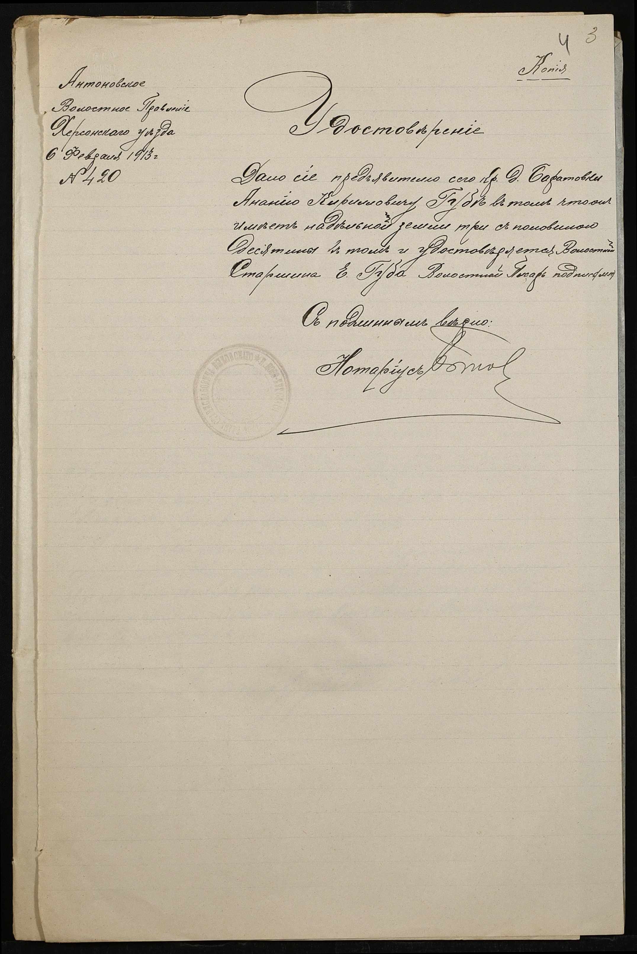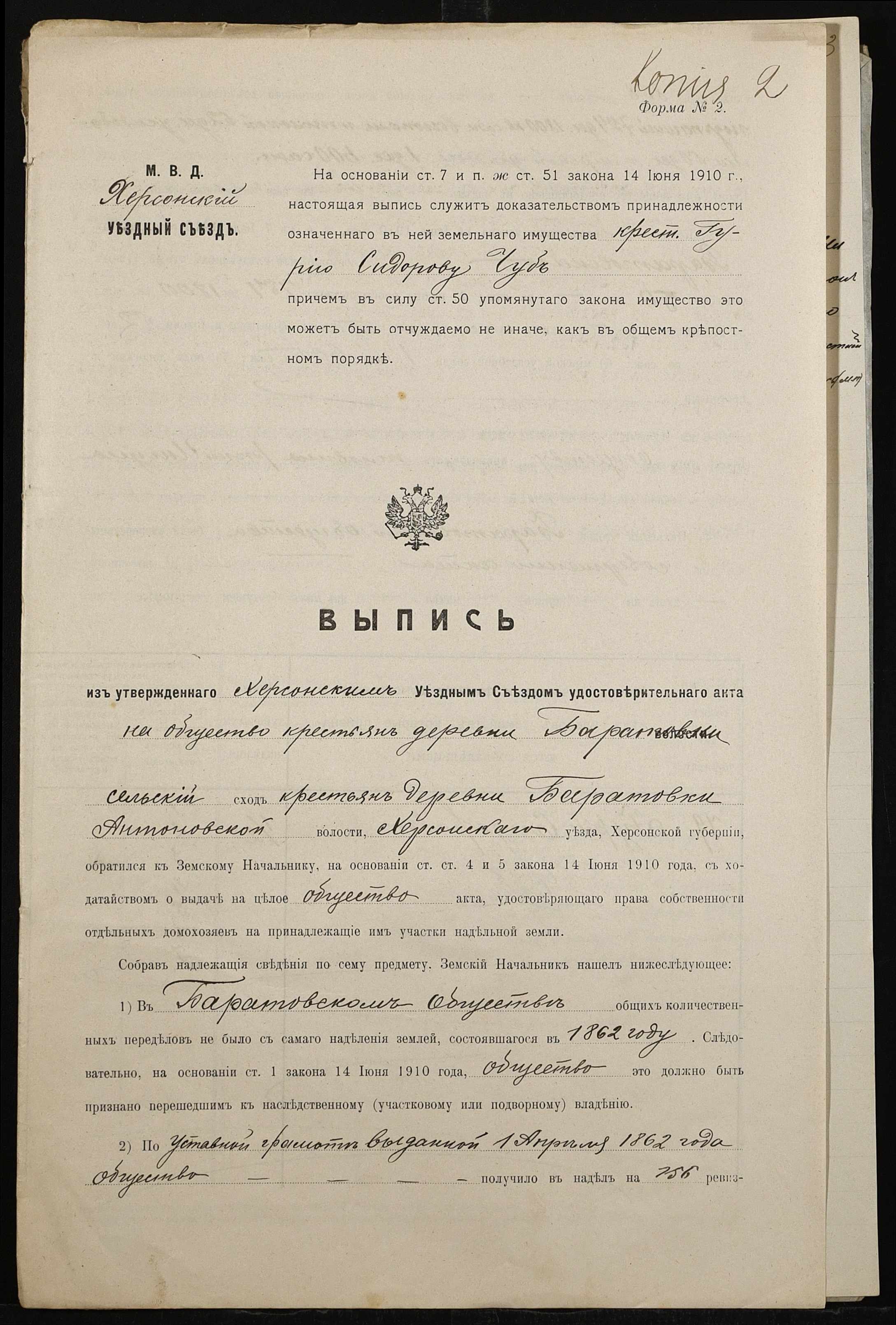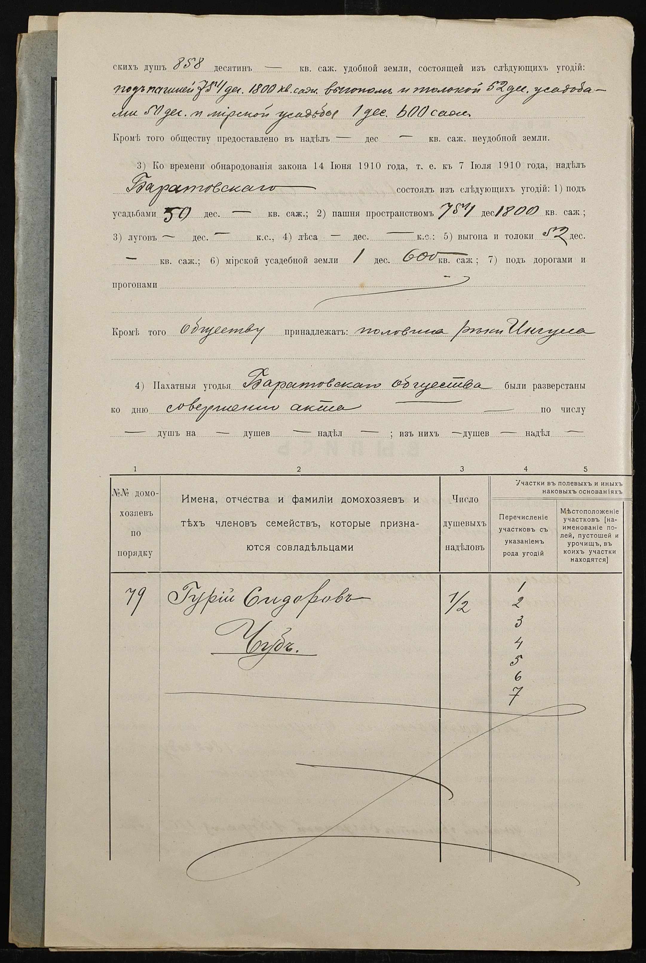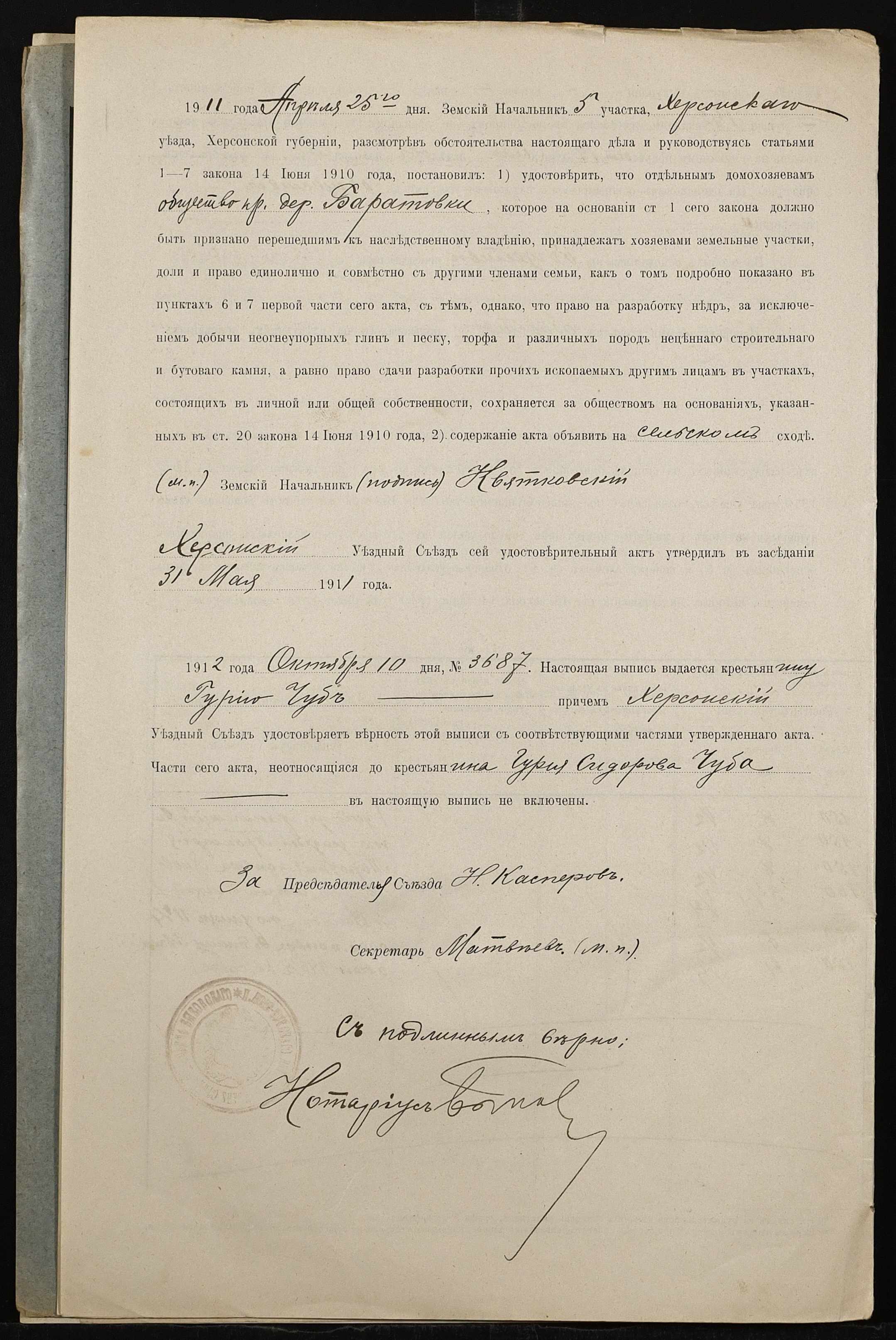 • • • • Справа № 494 “Справа про вчинення купчої про продаж землі селянином Чубом Гурієм (Гурием) Сидоровичем на користь селянина Губи Ананія Кириловича (Губы Анания Кирилловича)”