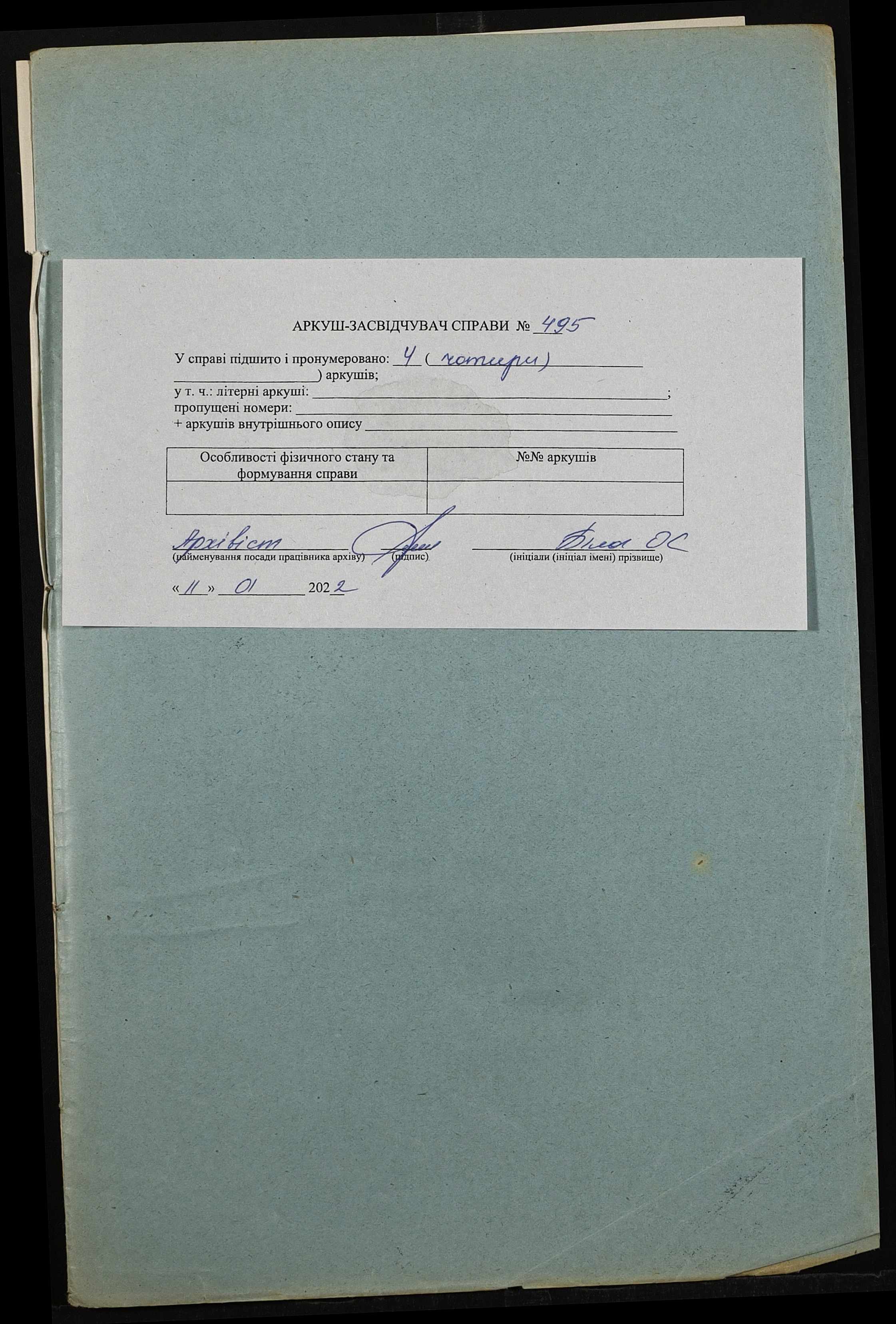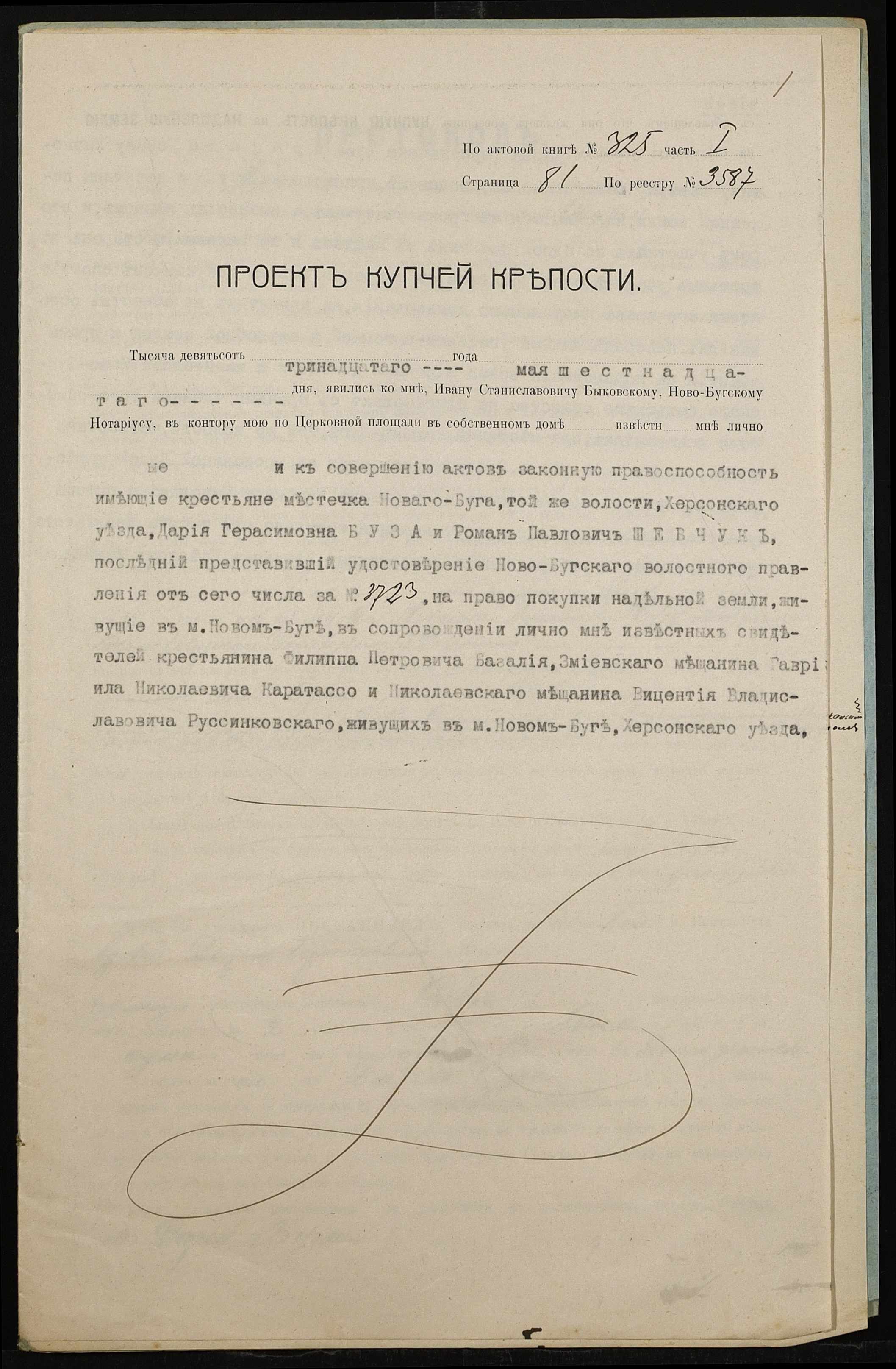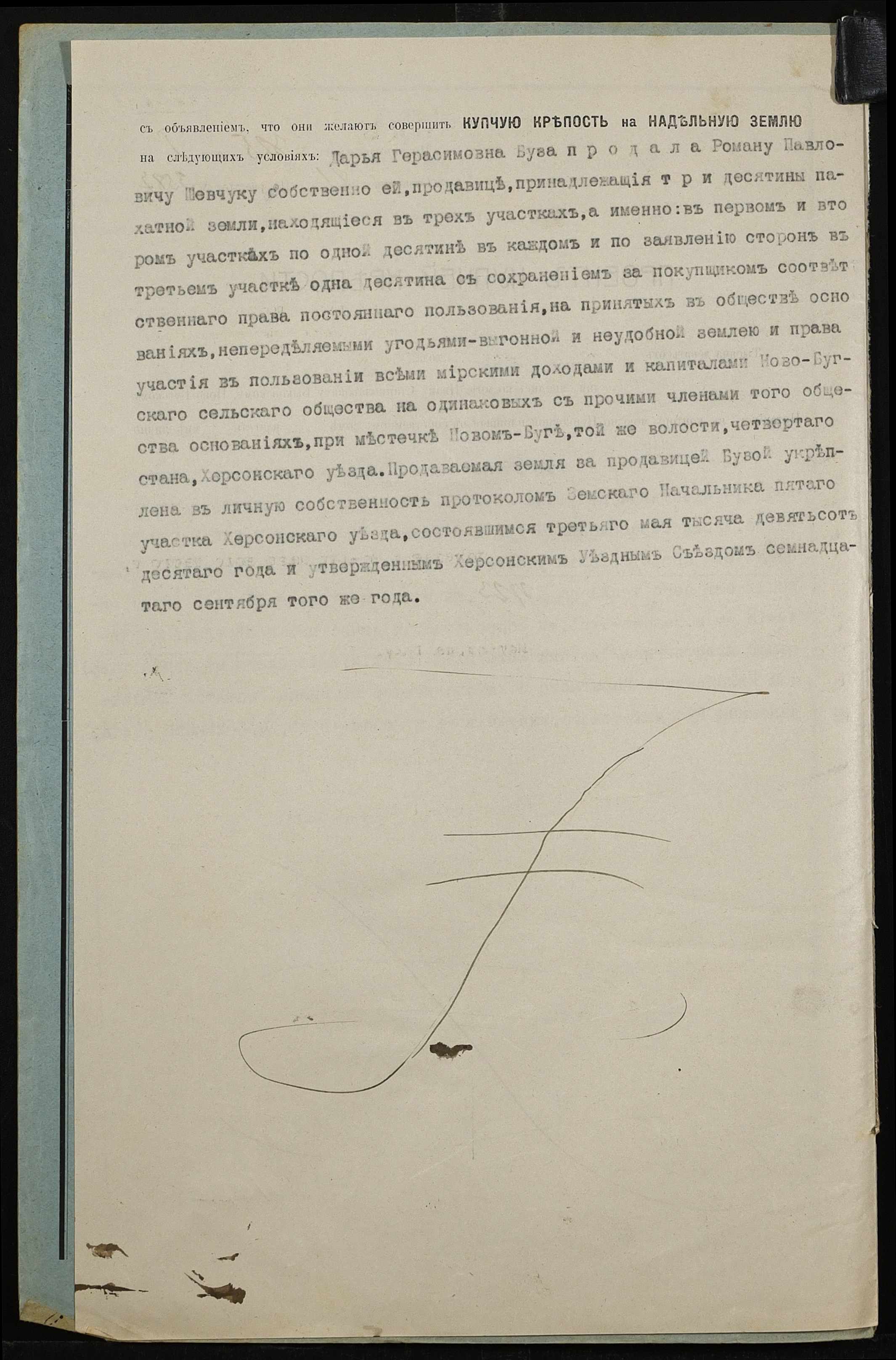 • • • • Справа № 495 “Справа про вчинення купчої про продаж землі селянкою Бузою Дарією Герасимівною (Бузой Дарьей Герасимовной) на користь селянина Шевчука Романа Павловича”