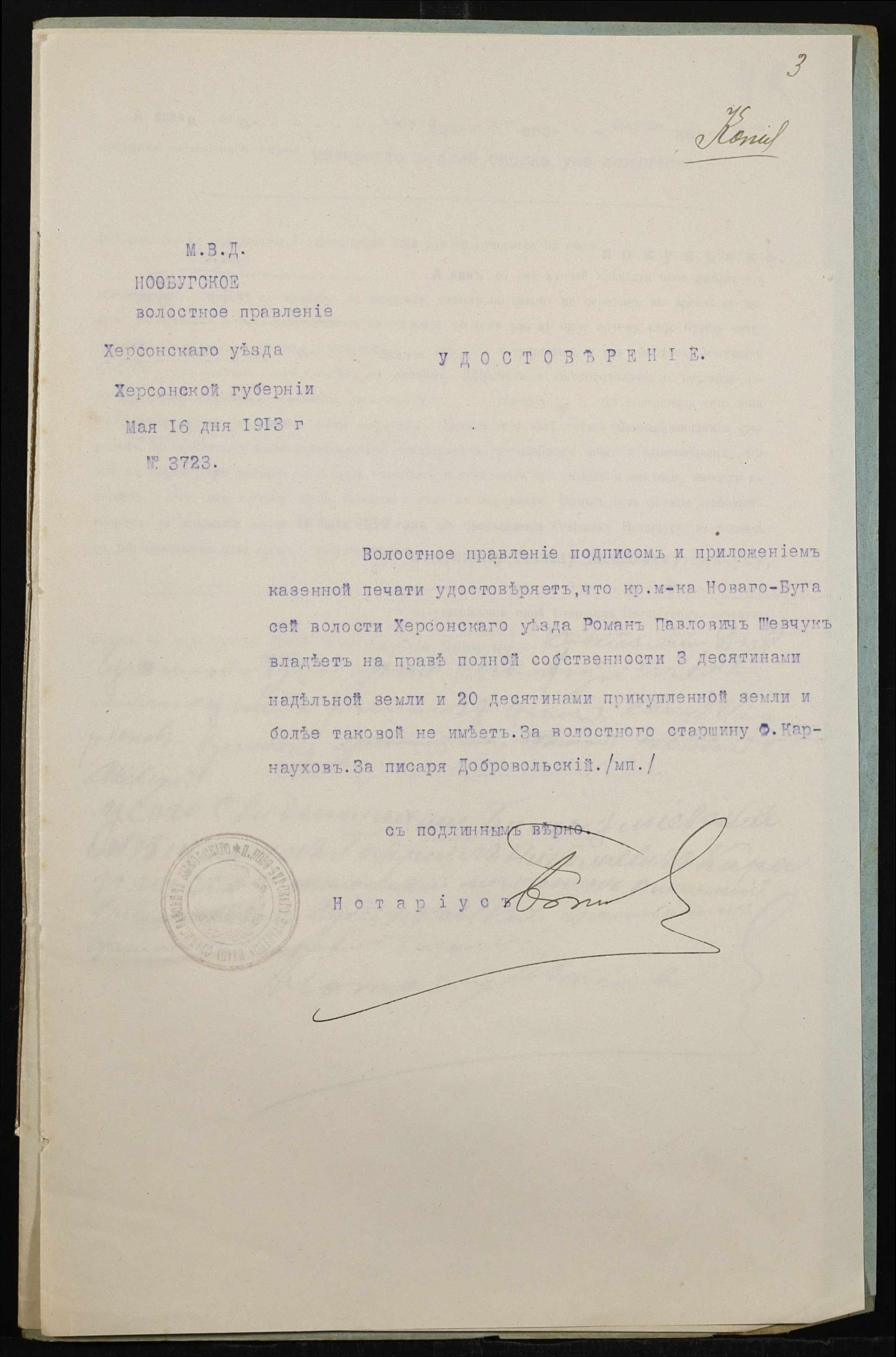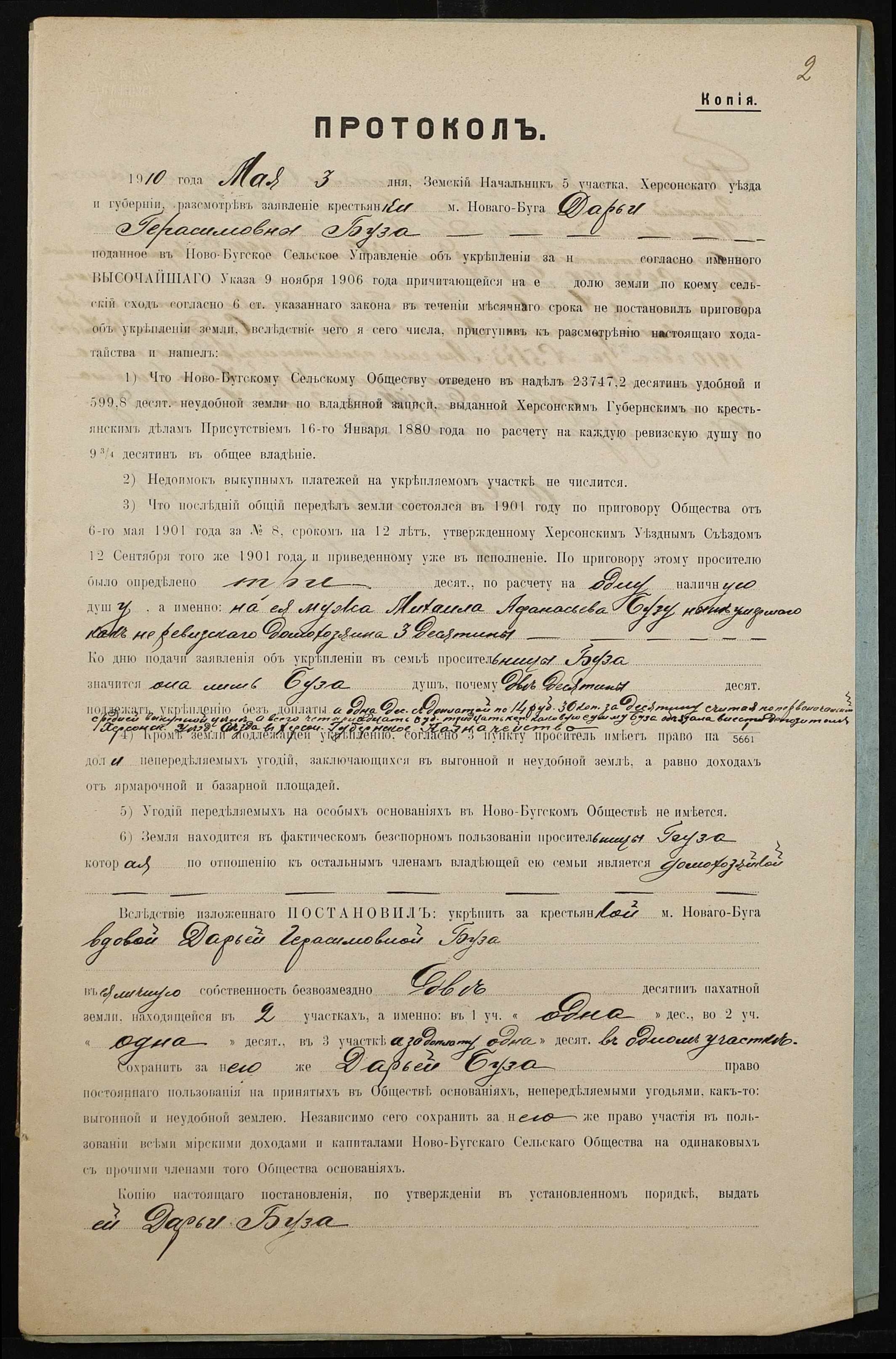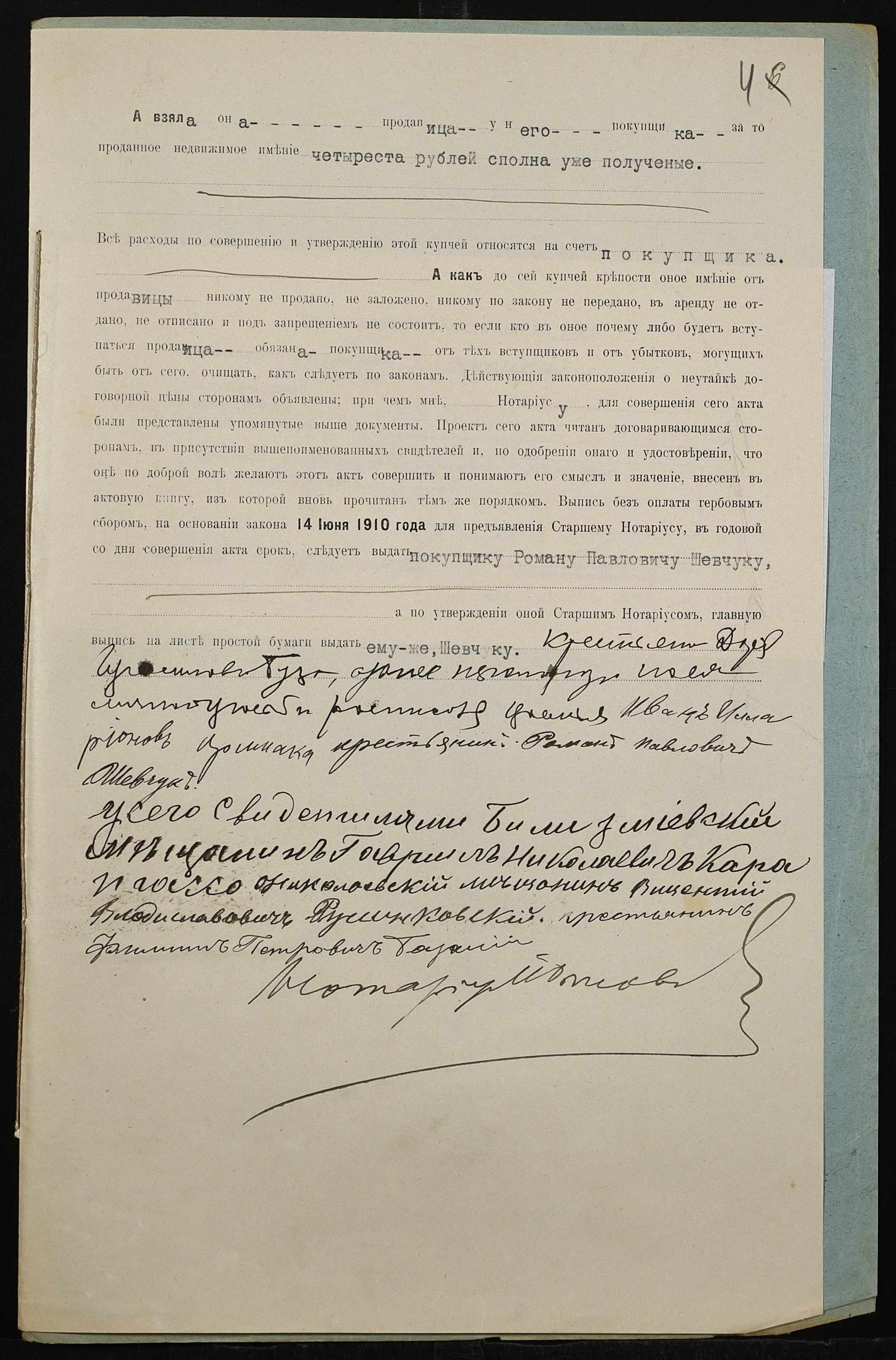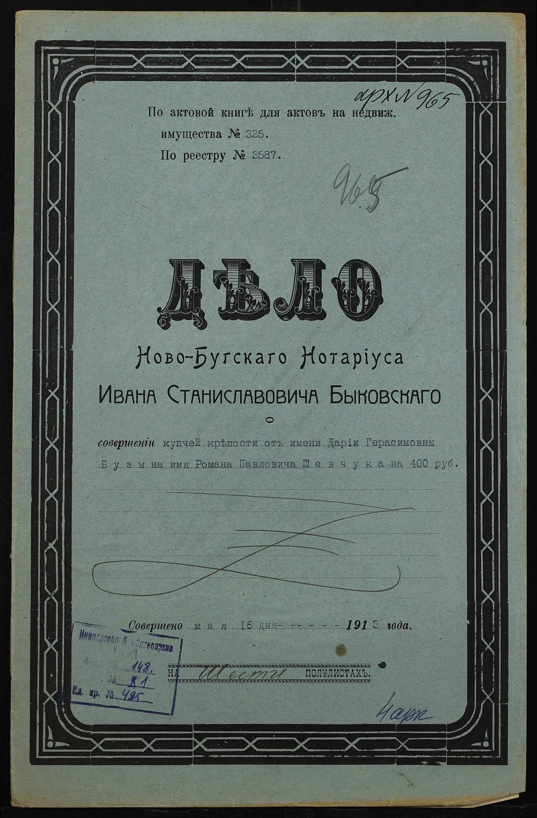 • • • • Справа № 495 “Справа про вчинення купчої про продаж землі селянкою Бузою Дарією Герасимівною (Бузой Дарьей Герасимовной) на користь селянина Шевчука Романа Павловича”