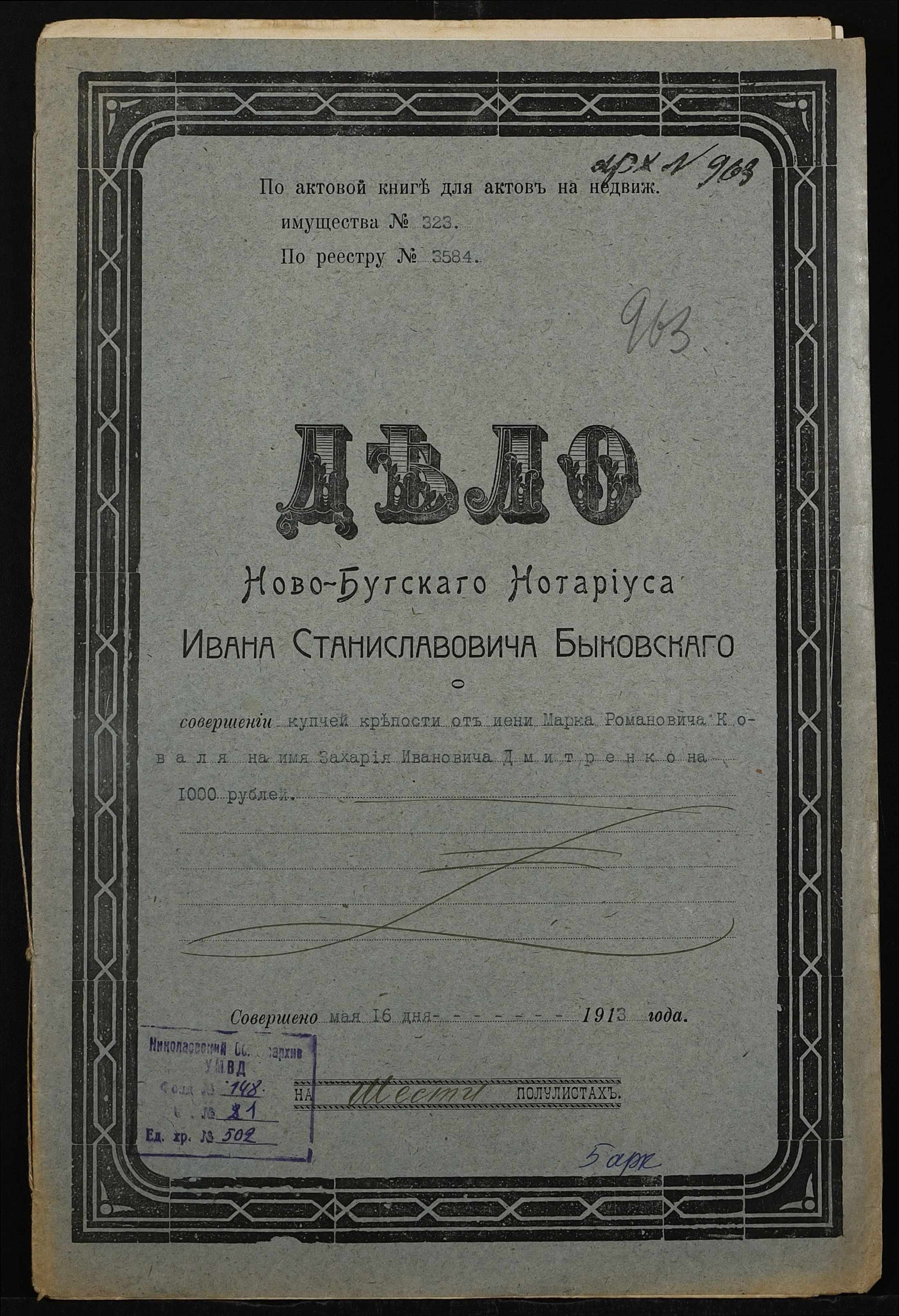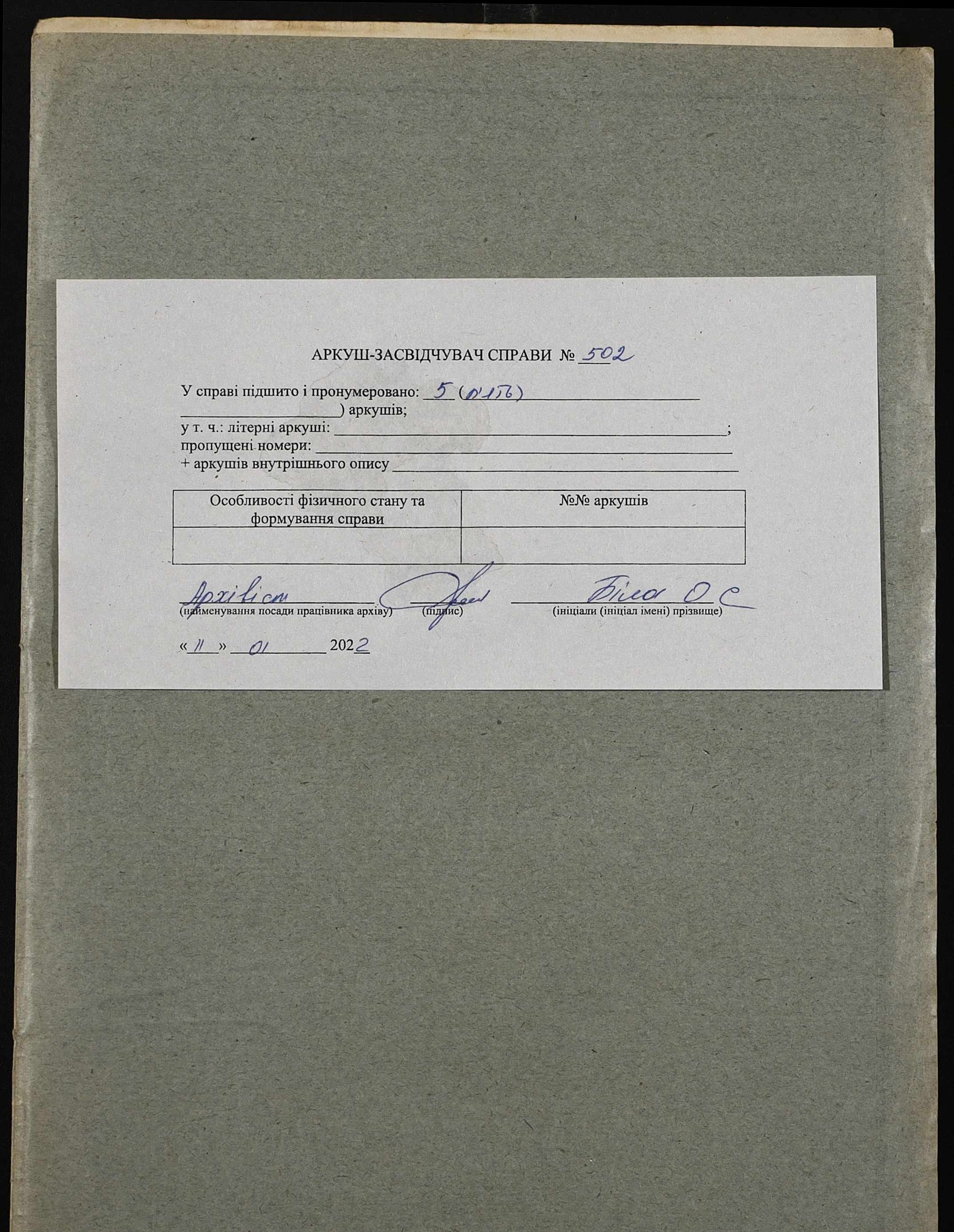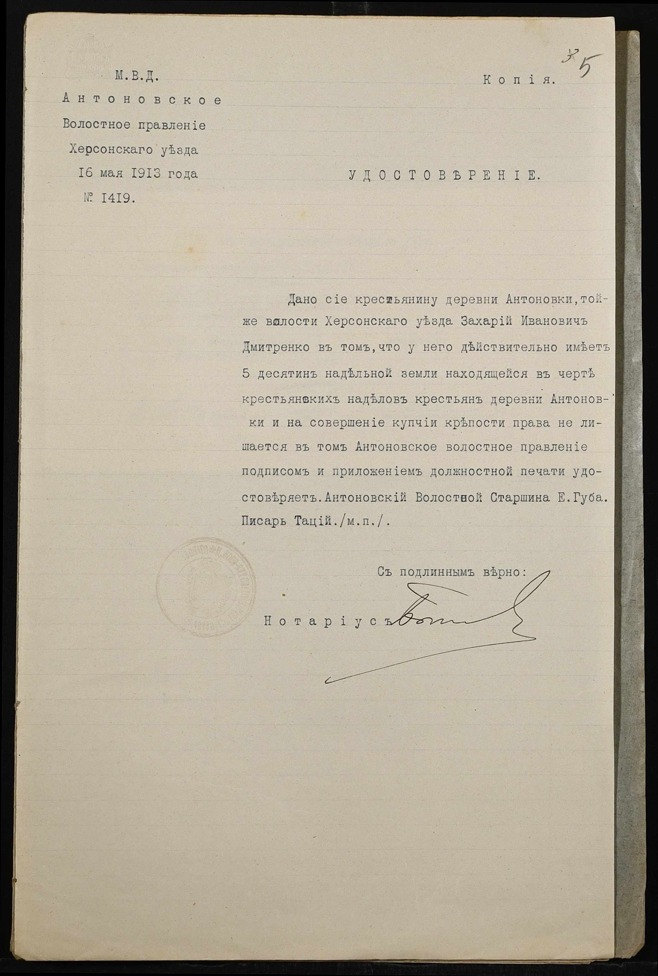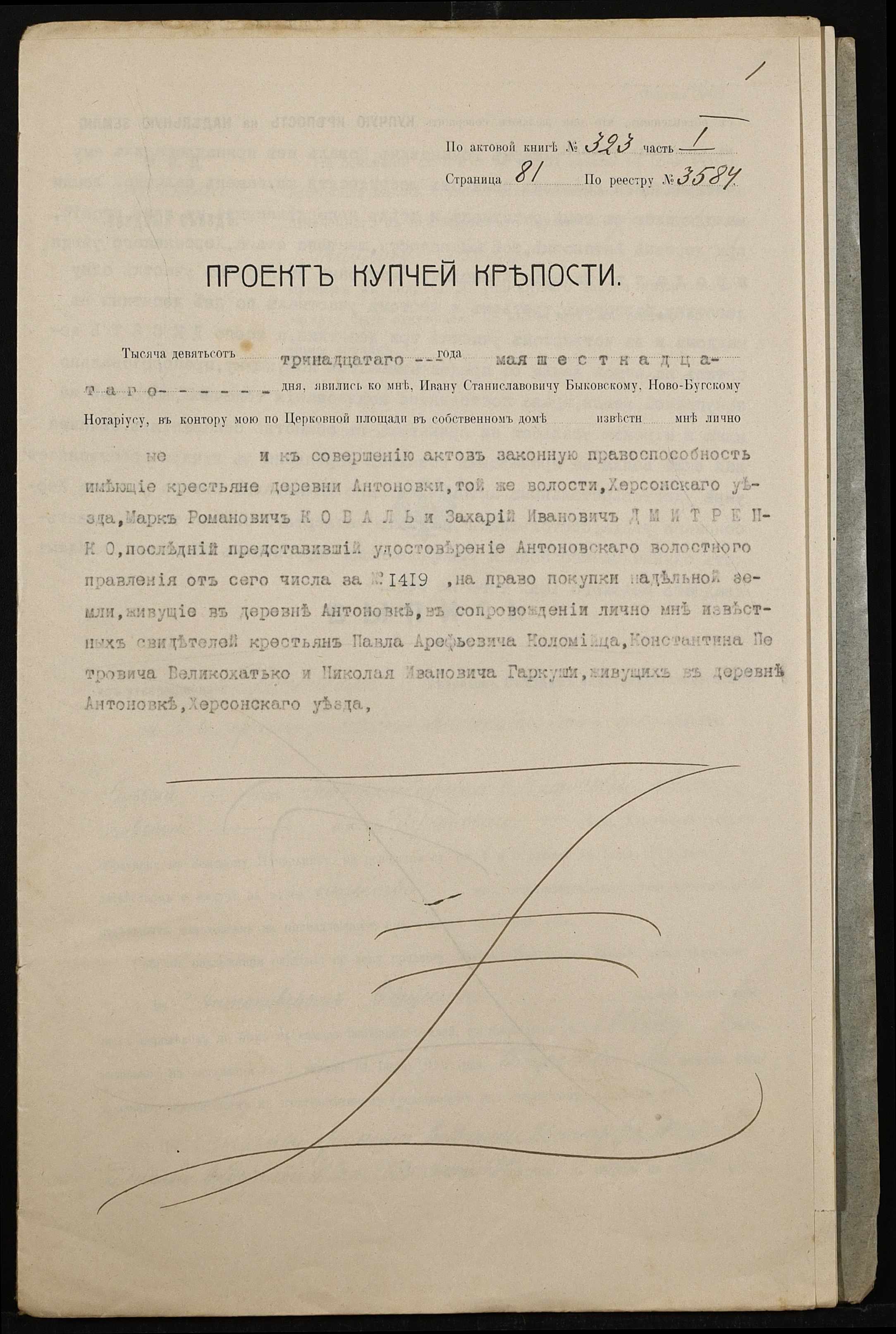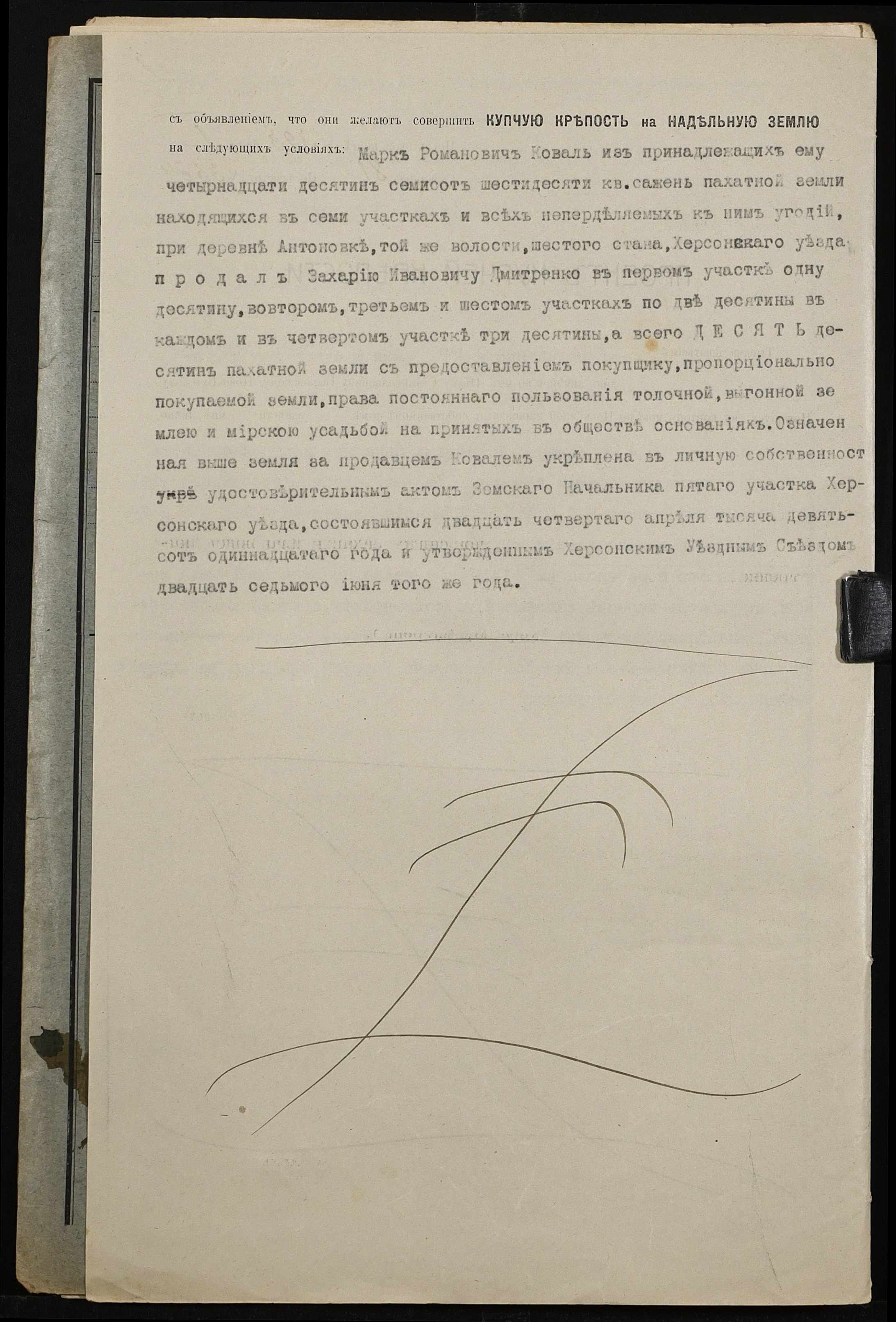• • • • Справа № 502 “Справа про вчинення купчої про продаж землі селянином Ковалем Марком Романовичем на користь селянина Дмитренка Захарія Івановича (Дмитренко Захария Ивановича)”