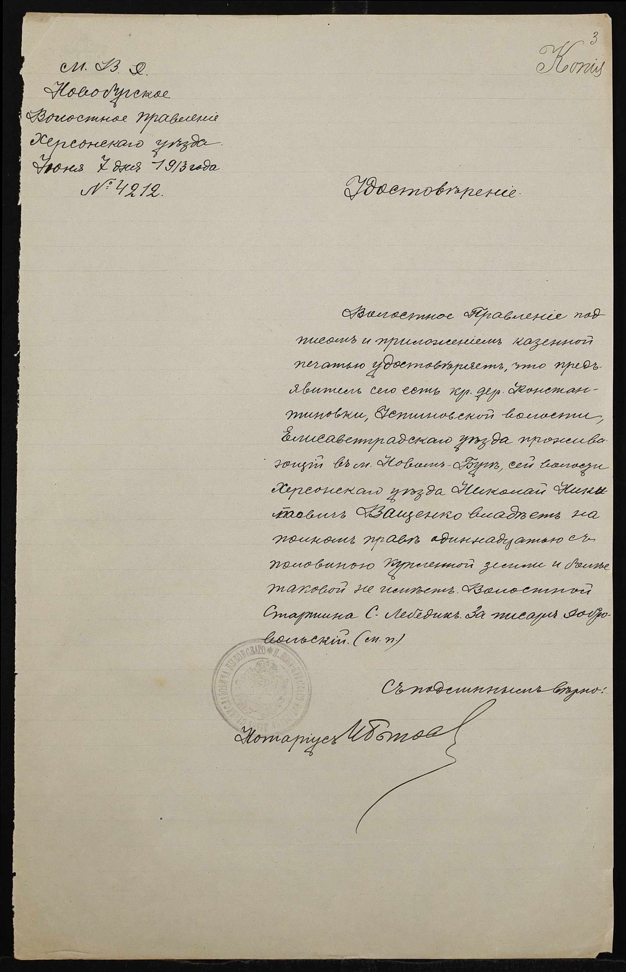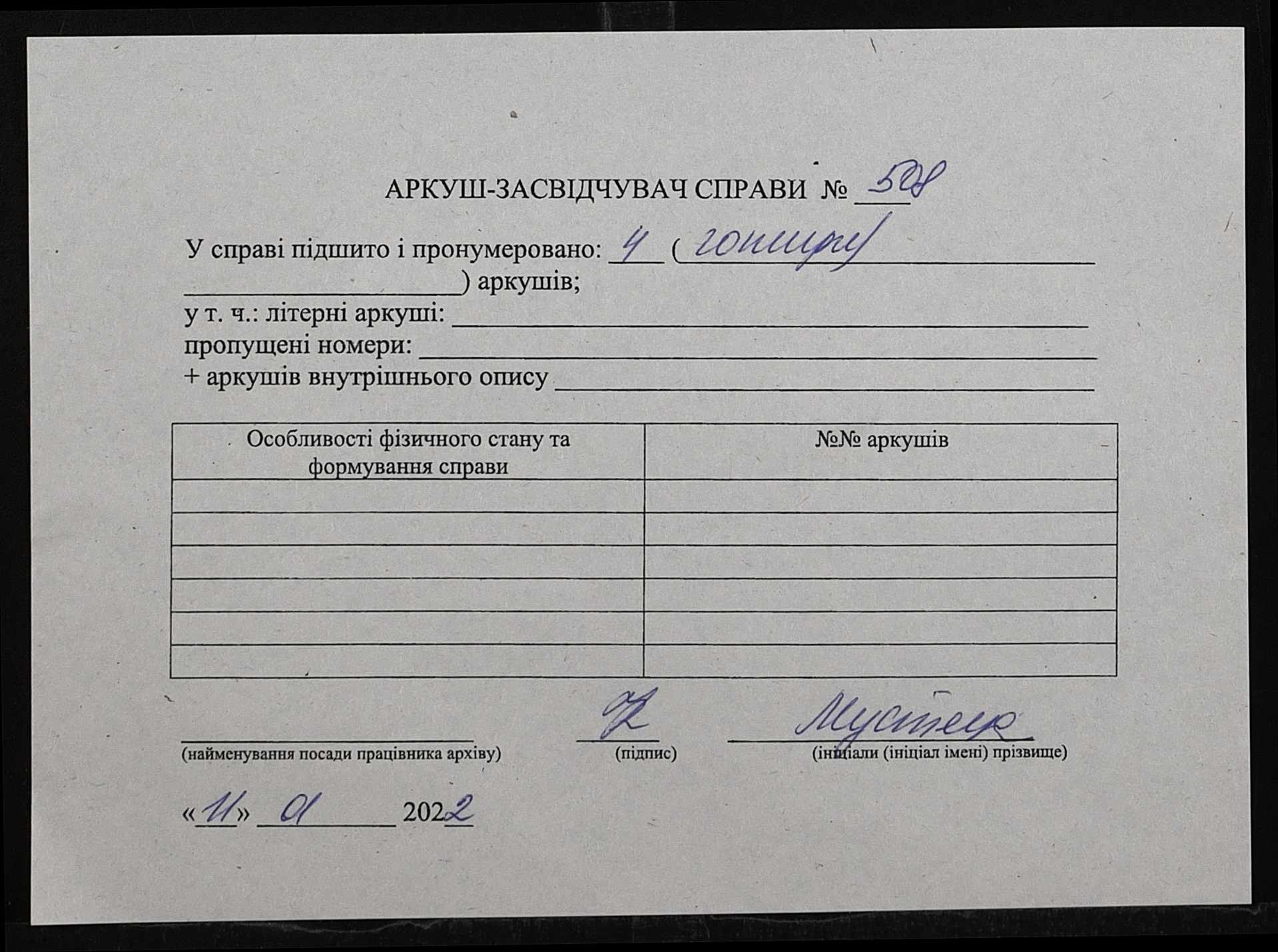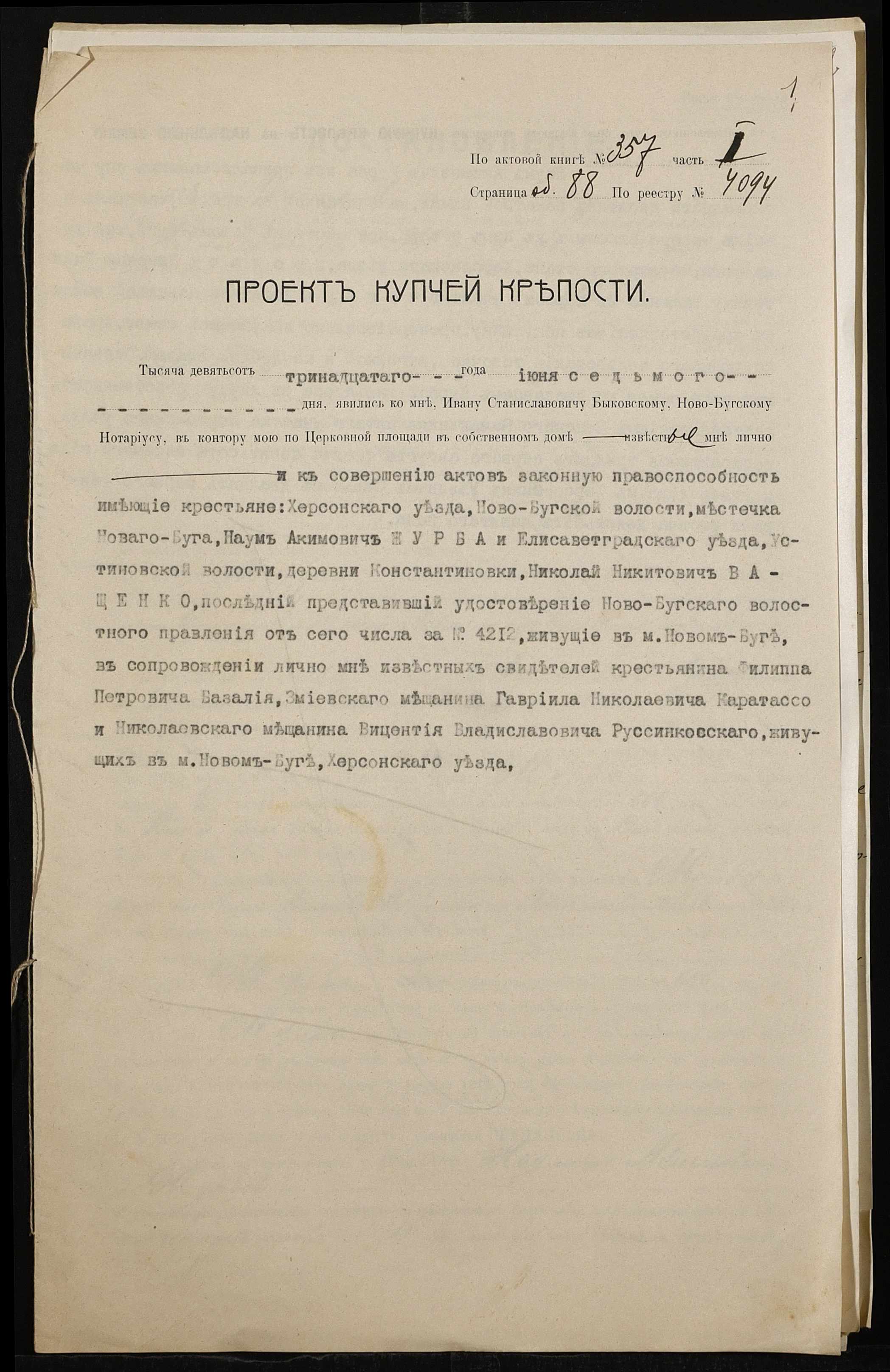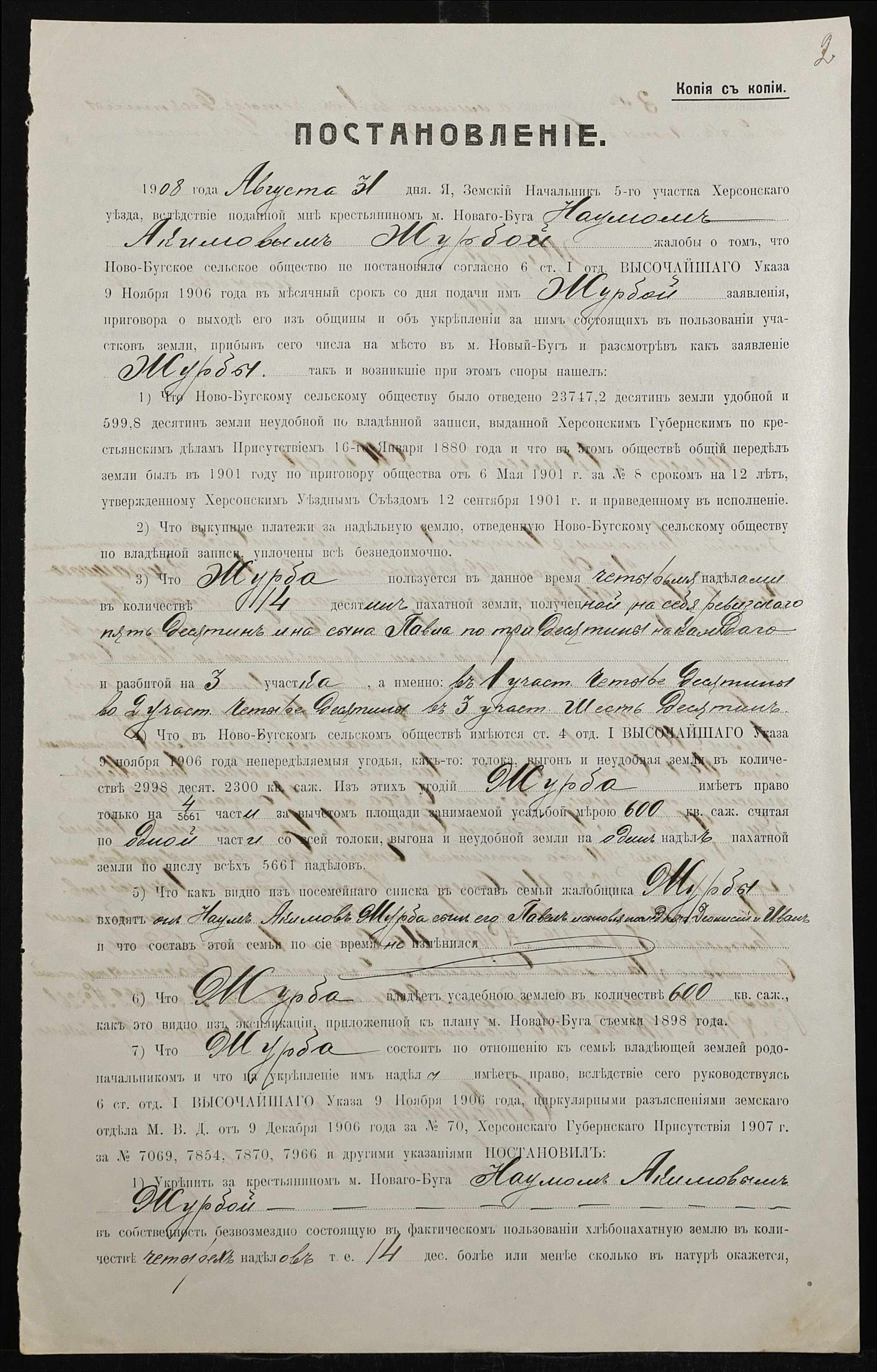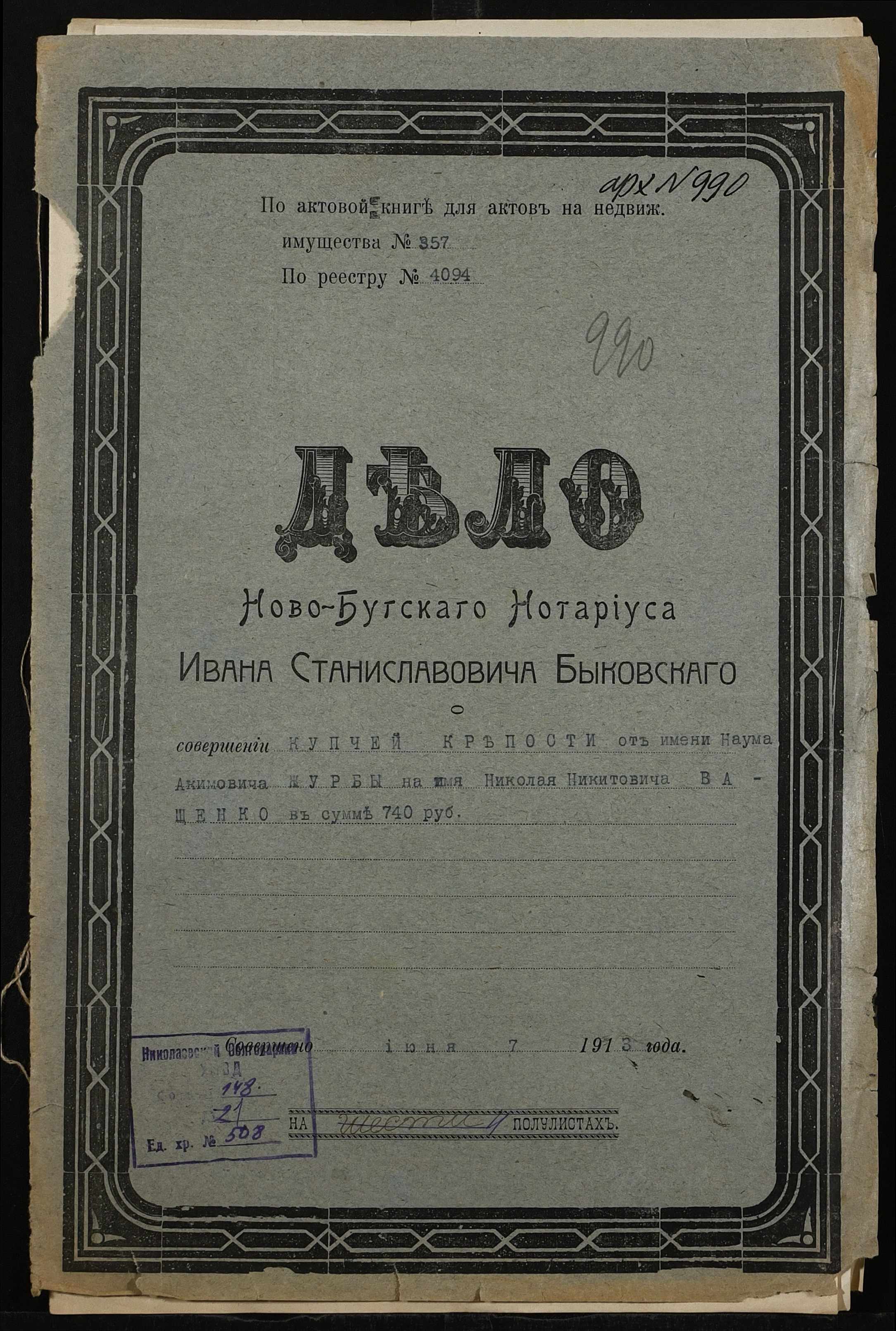 • • • • Справа № 508 “Справа про вчинення купчої про продаж землі селянином Журбою (Журбой) Наумом Якимовичем (Акимовичем) на користь селянина Ващенка Миколи Микитовича (Ващенко Николая Никитовича)”