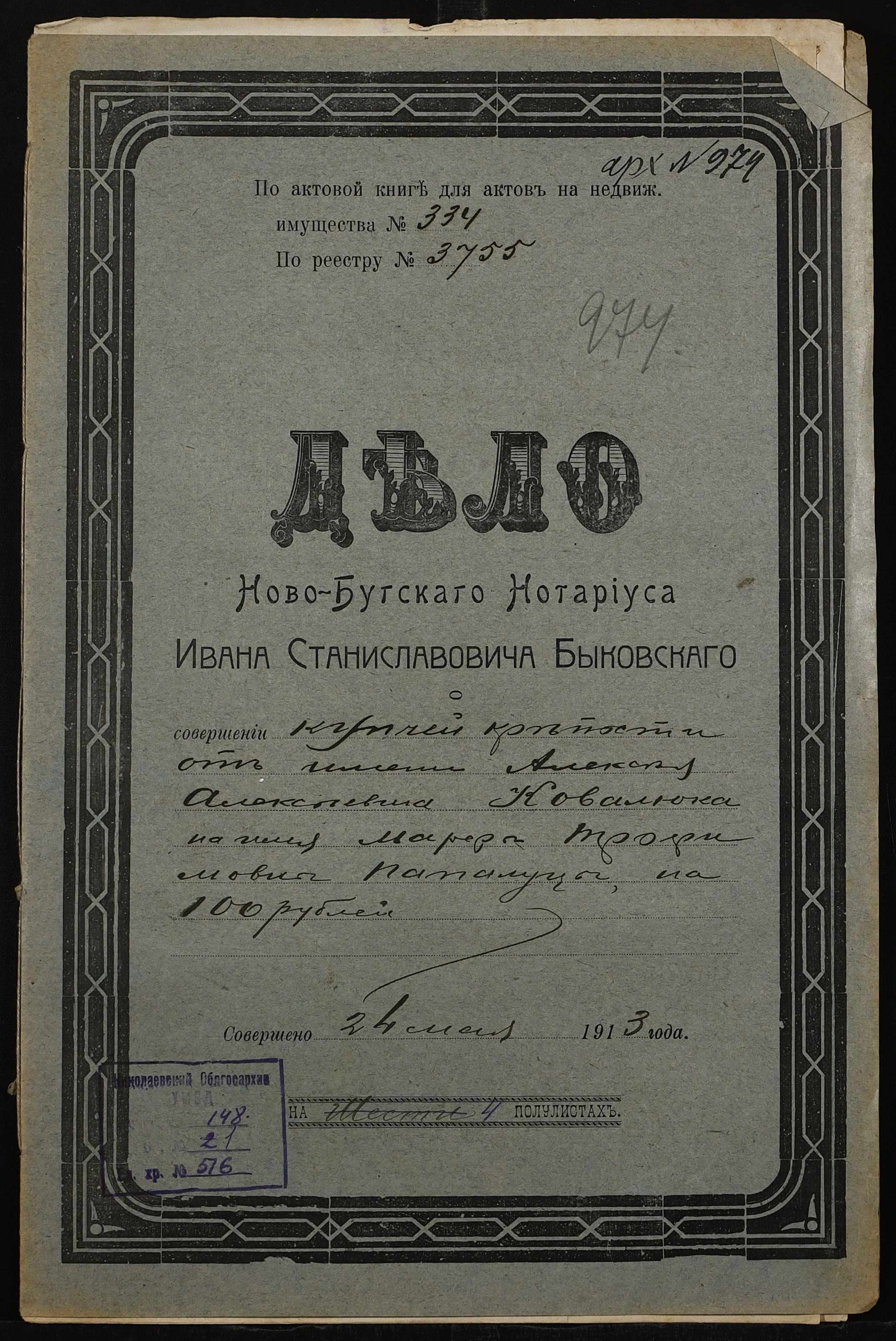 ◦ ◦ Фонд № 148 “Контора новобузького нотаріуса Биковського Івана Станіславовича”