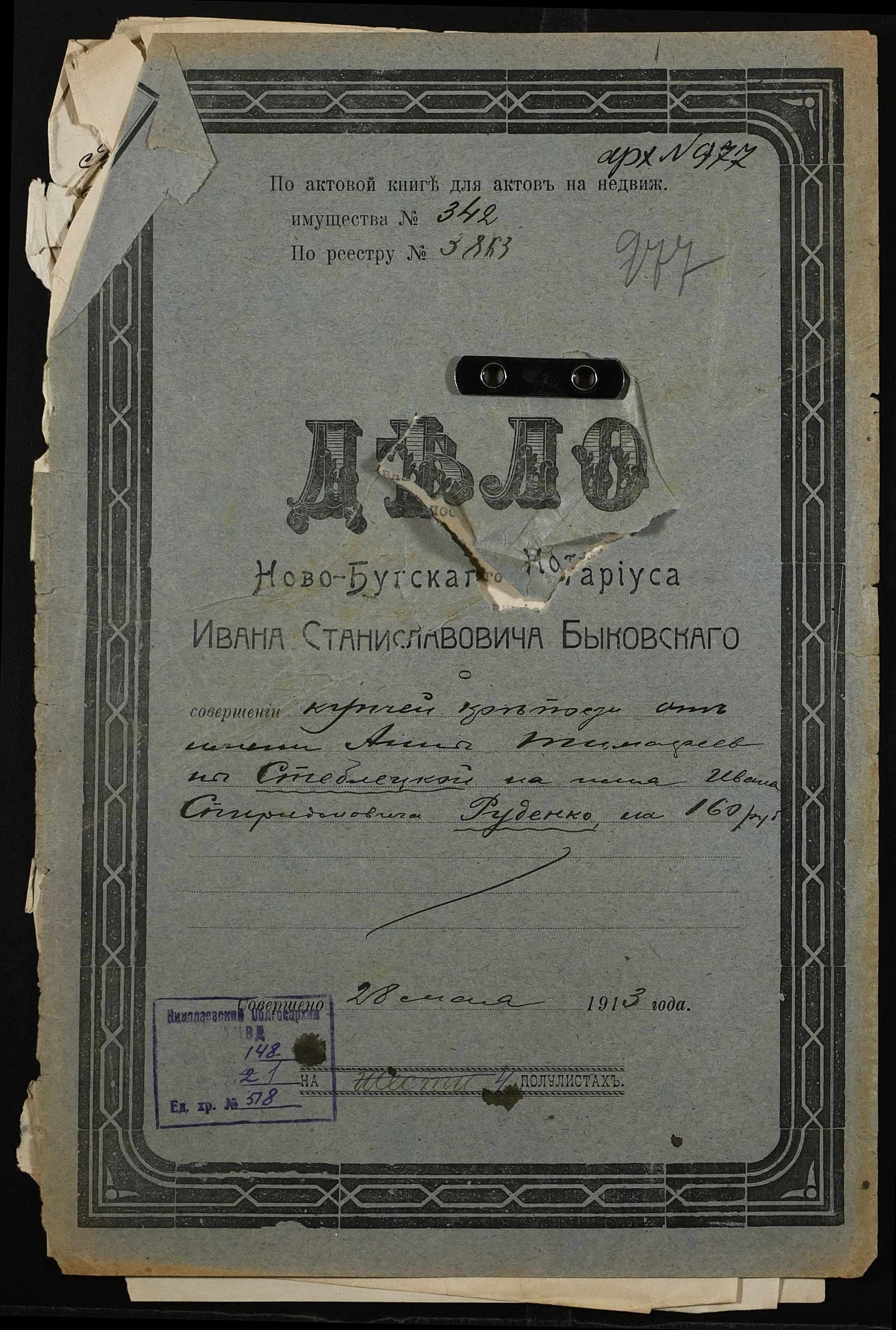 ◦ ◦ Фонд № 148 “Контора новобузького нотаріуса Биковського Івана Станіславовича”