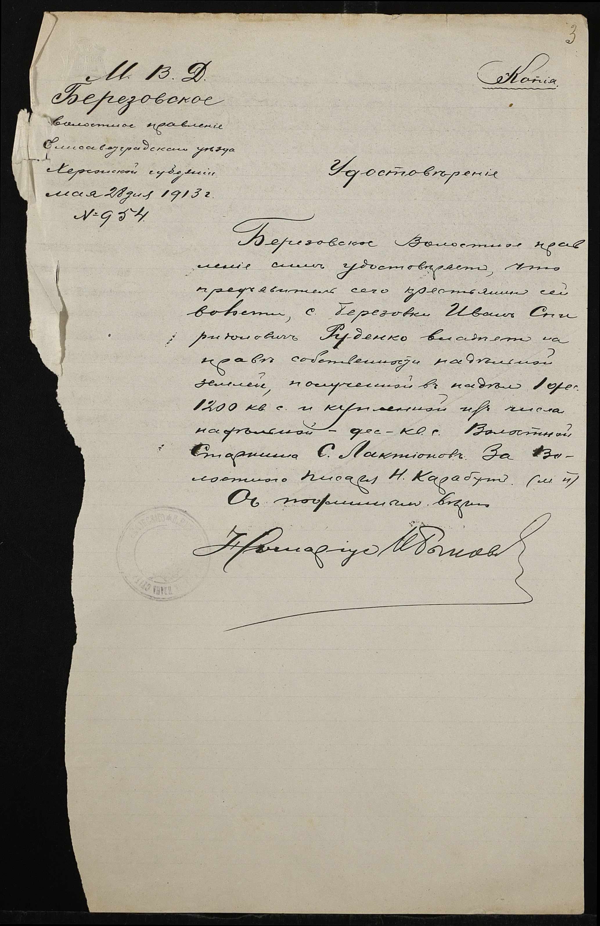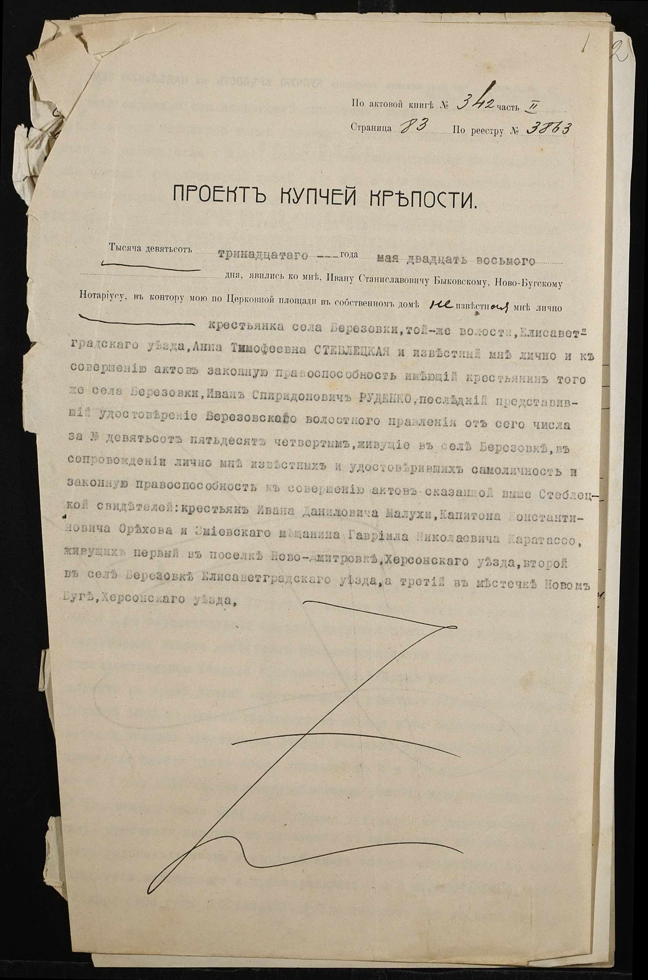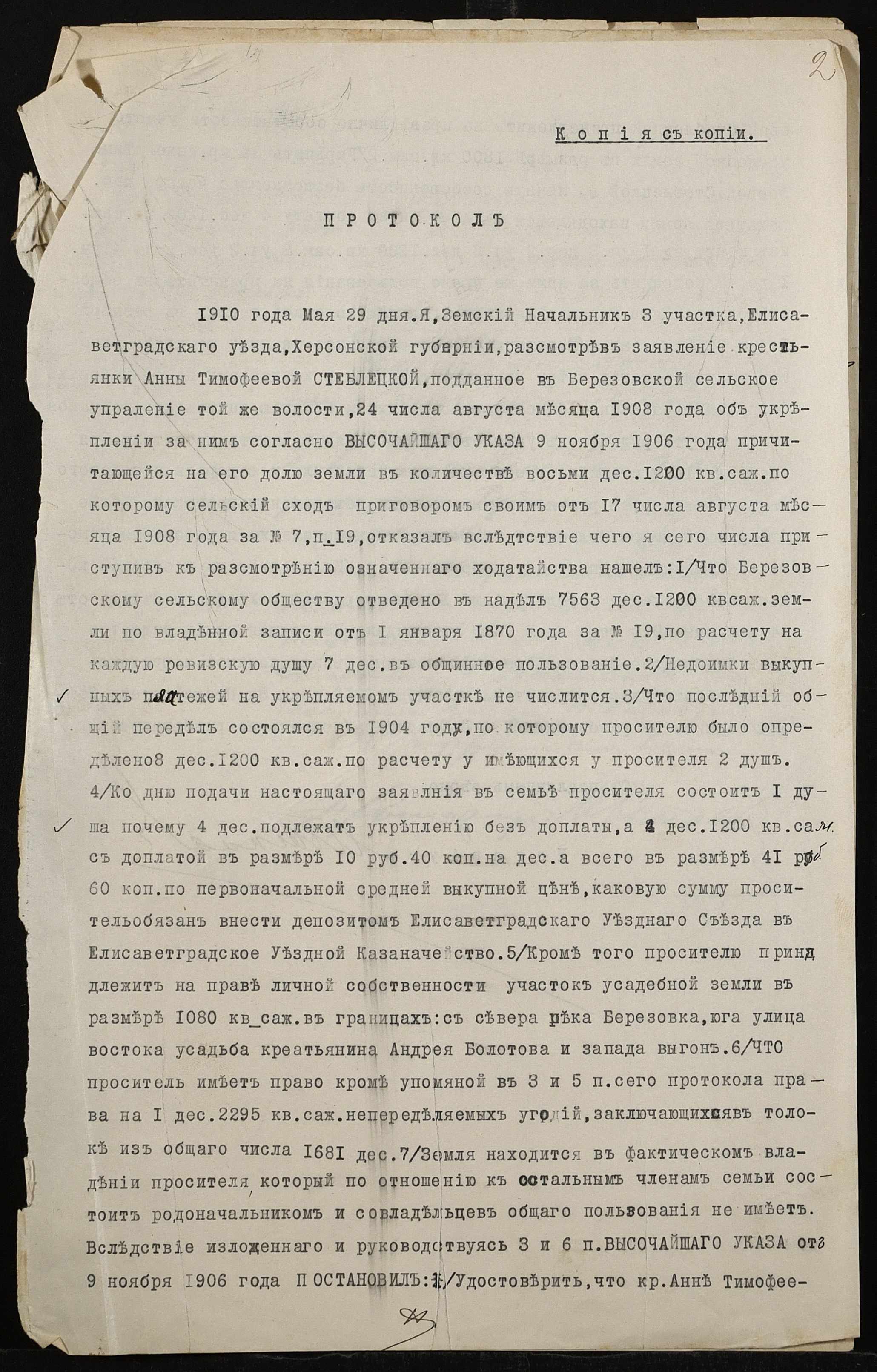 • • • • Справа № 518 “Справа про вчинення купчої про продаж землі селянкою Стеблецькою Ганною Тимофіївною (Стеблецкой Анной Тимофеевной) на користь селянина Руденка Івана (Руденко Ивана) Спиридоновича”