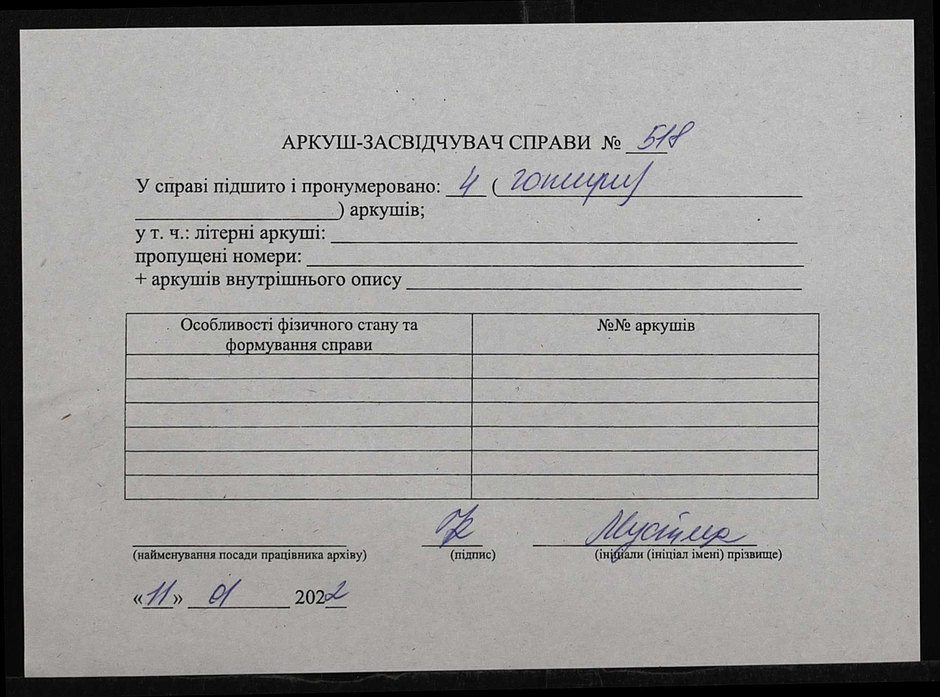 Фонд 148 / Опис 1 / Справа 518
