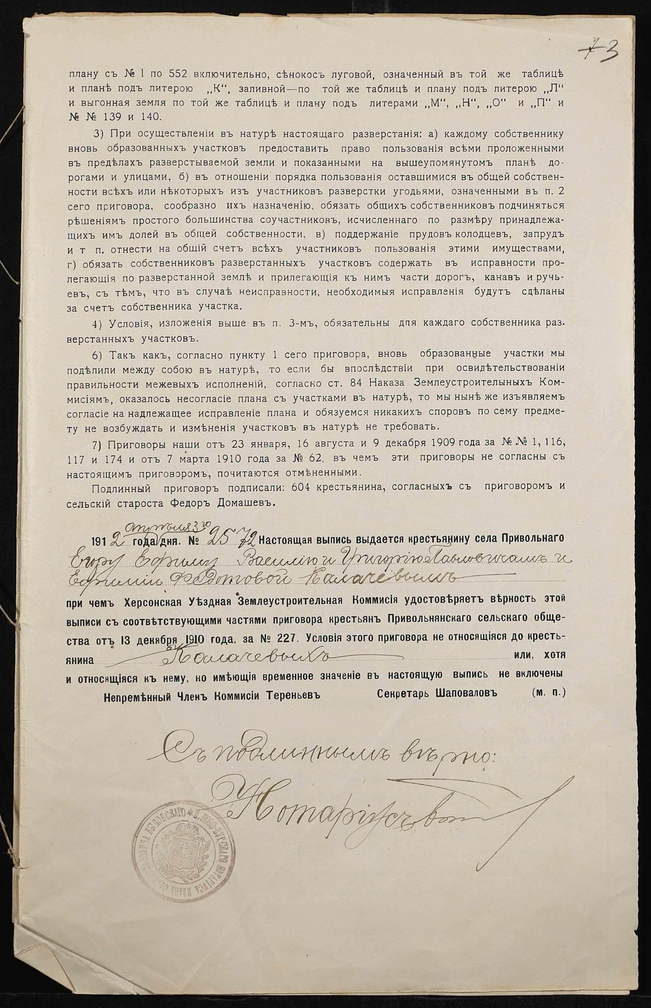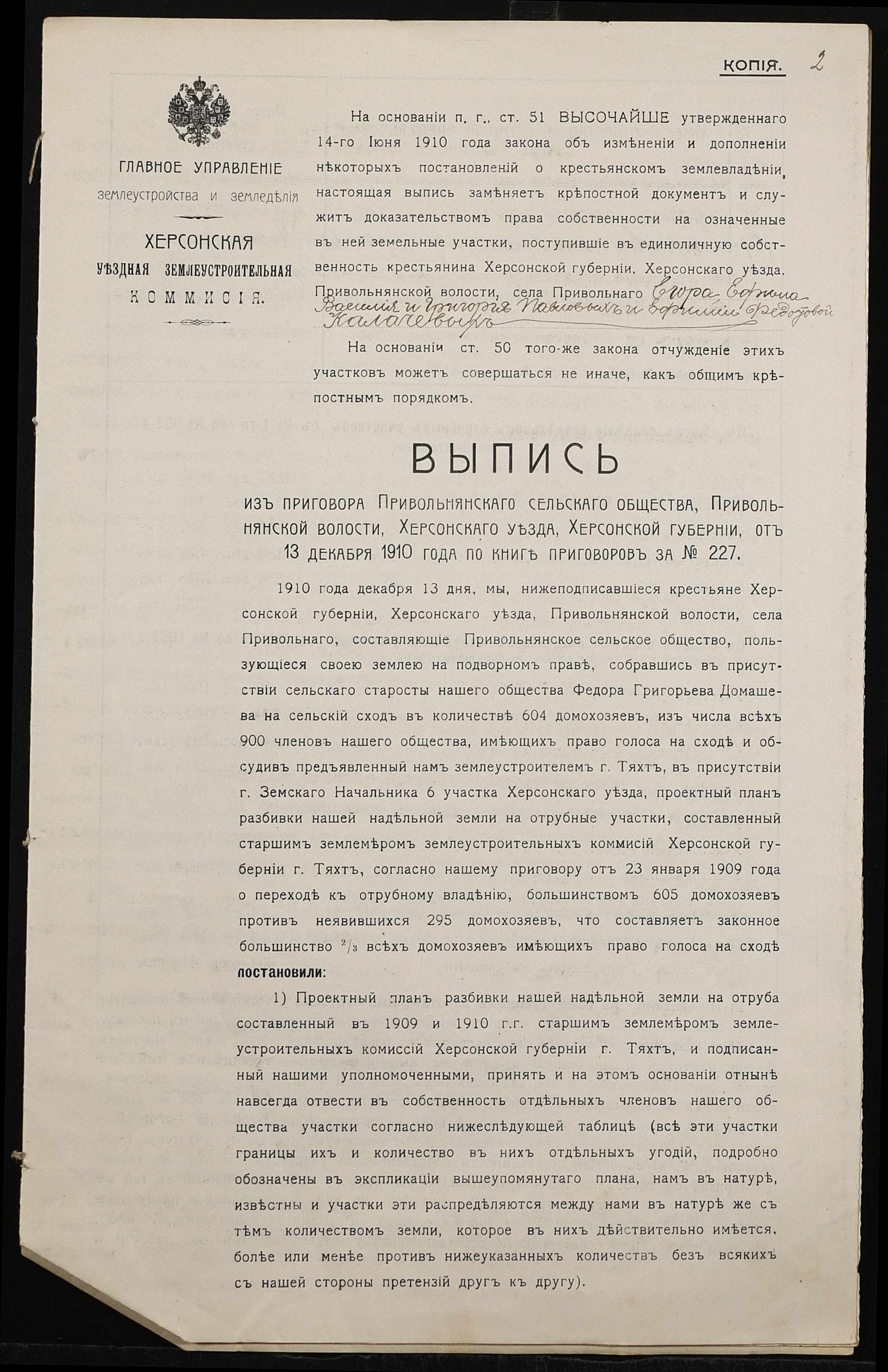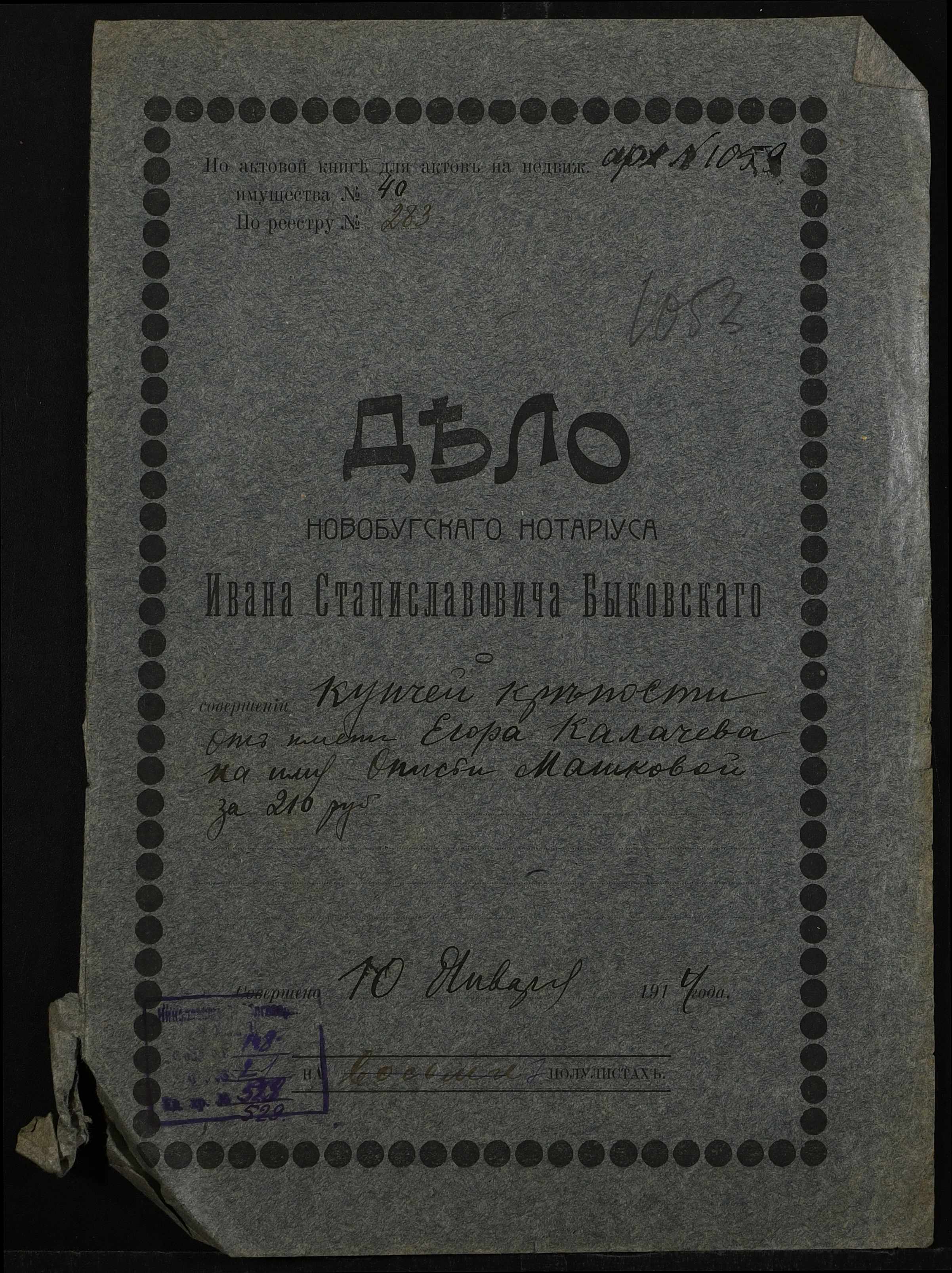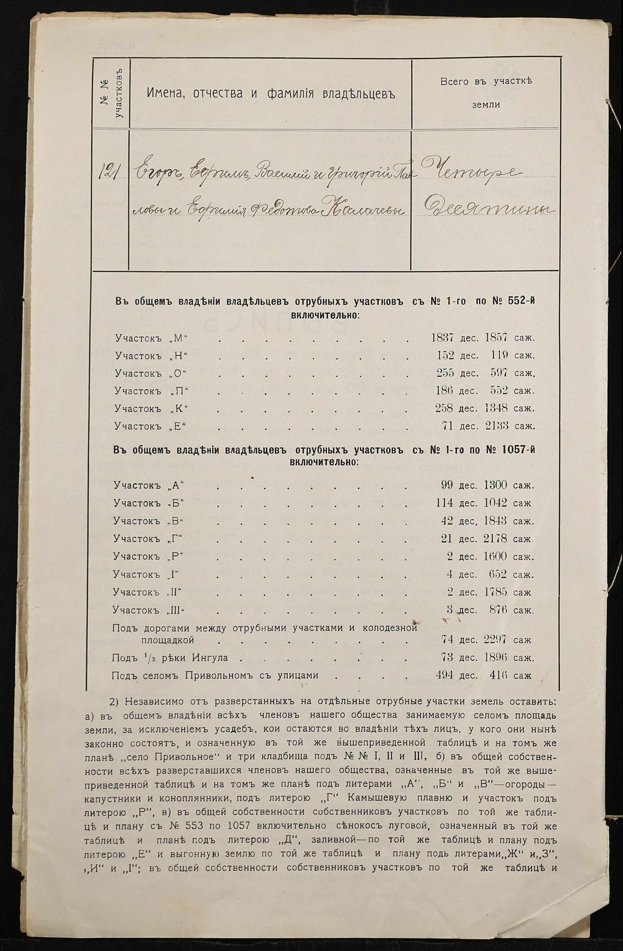 • • • • Справа № 529 “Справа про вчинення купчої про продаж землі селянином Калачовим Єгором (Калачевым Егором) Павловичем на користь селянки Машкової Онисії Леонтіївни (Машковой Анисии Леонтьевны)”