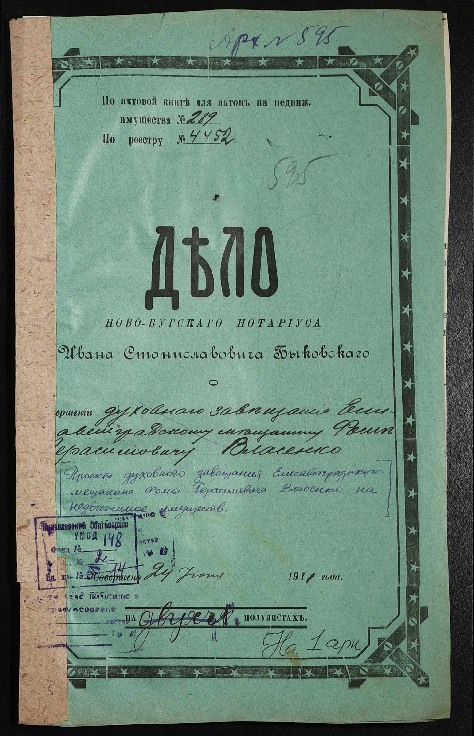 ◦ ◦ Фонд № 148 “Контора новобузького нотаріуса Биковського Івана Станіславовича”