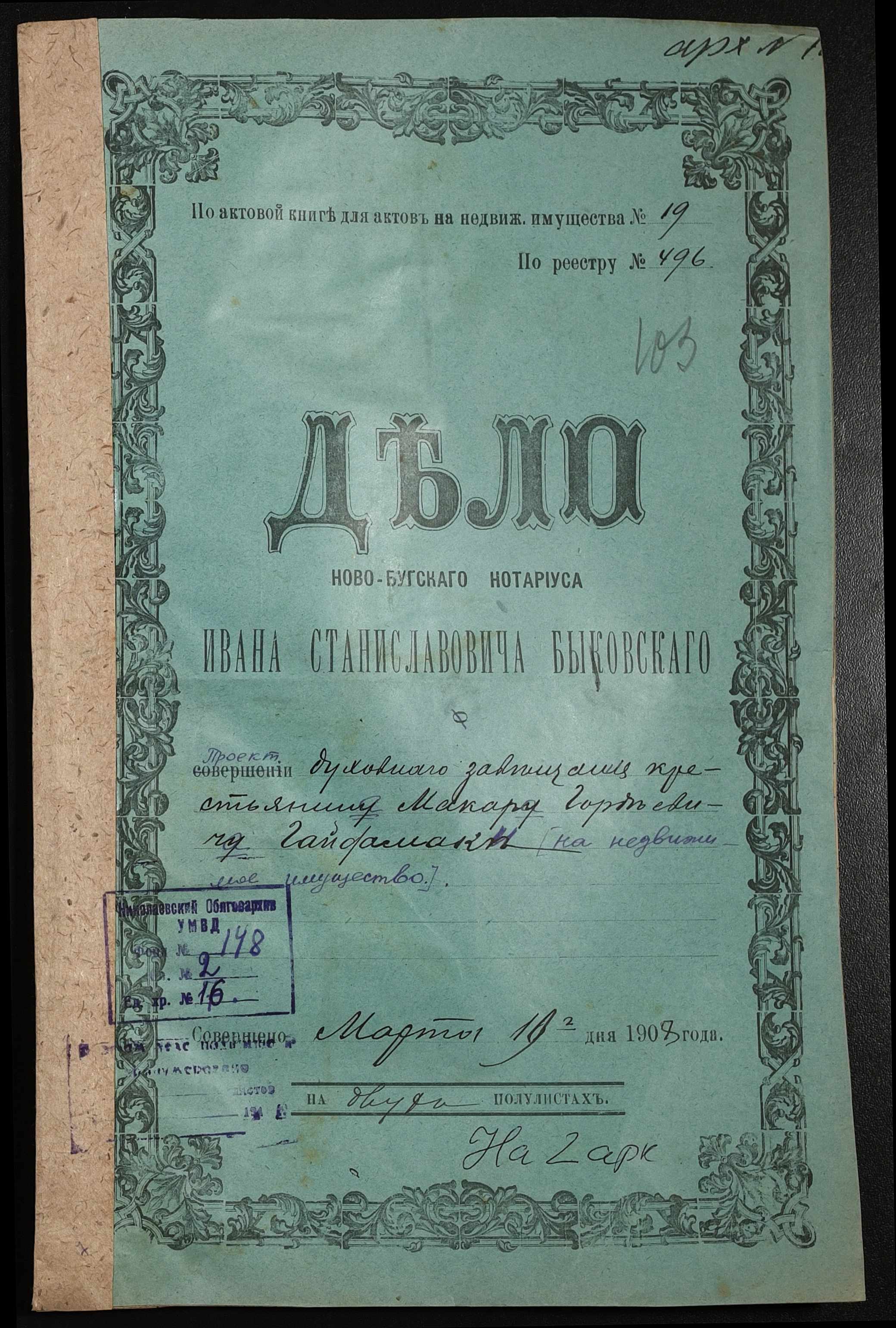 • • • • Справа № 16 “Проєкт духівниці на нерухоме майно Гайдамаки Макара Гордійовича (Гордеевича)”