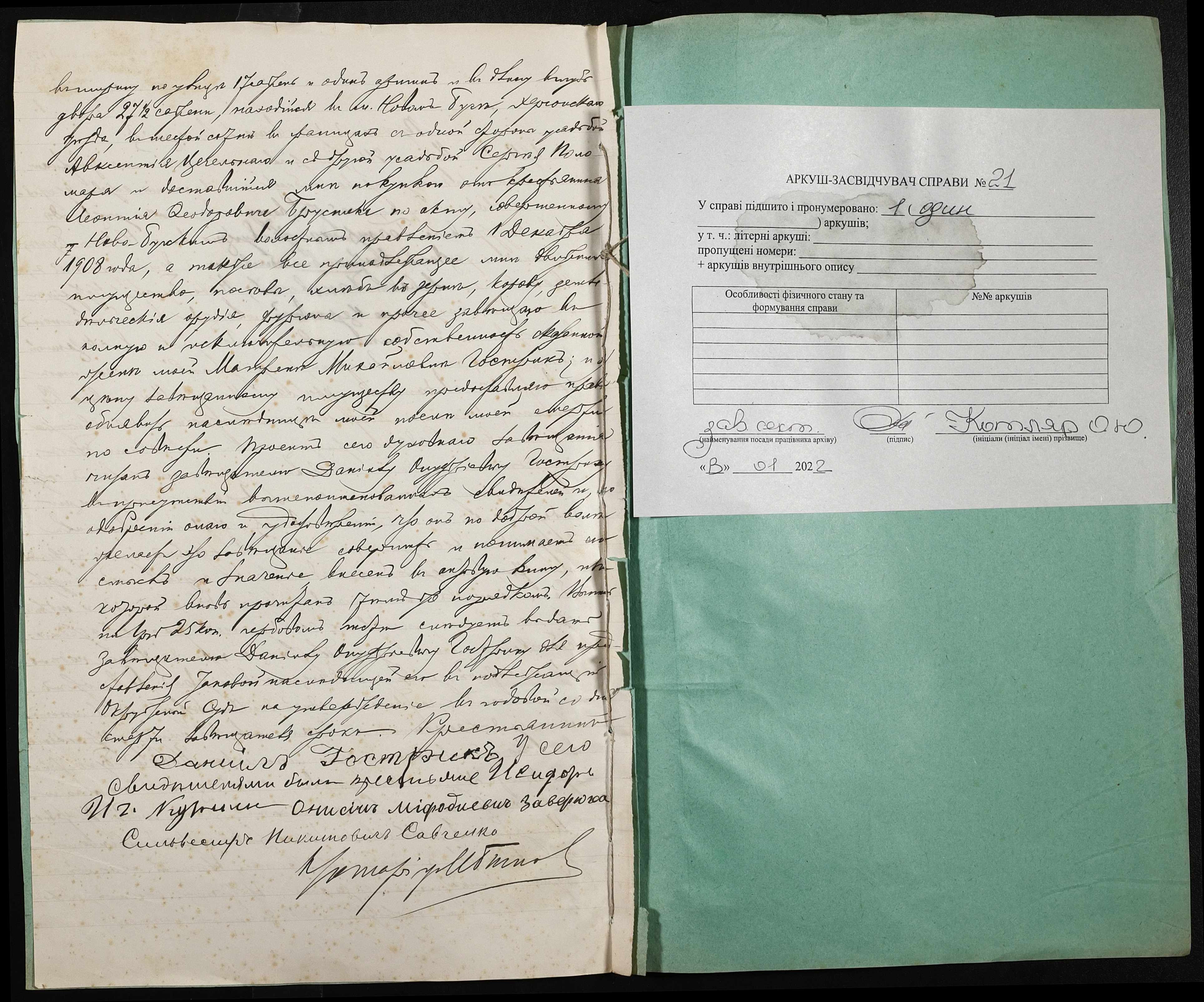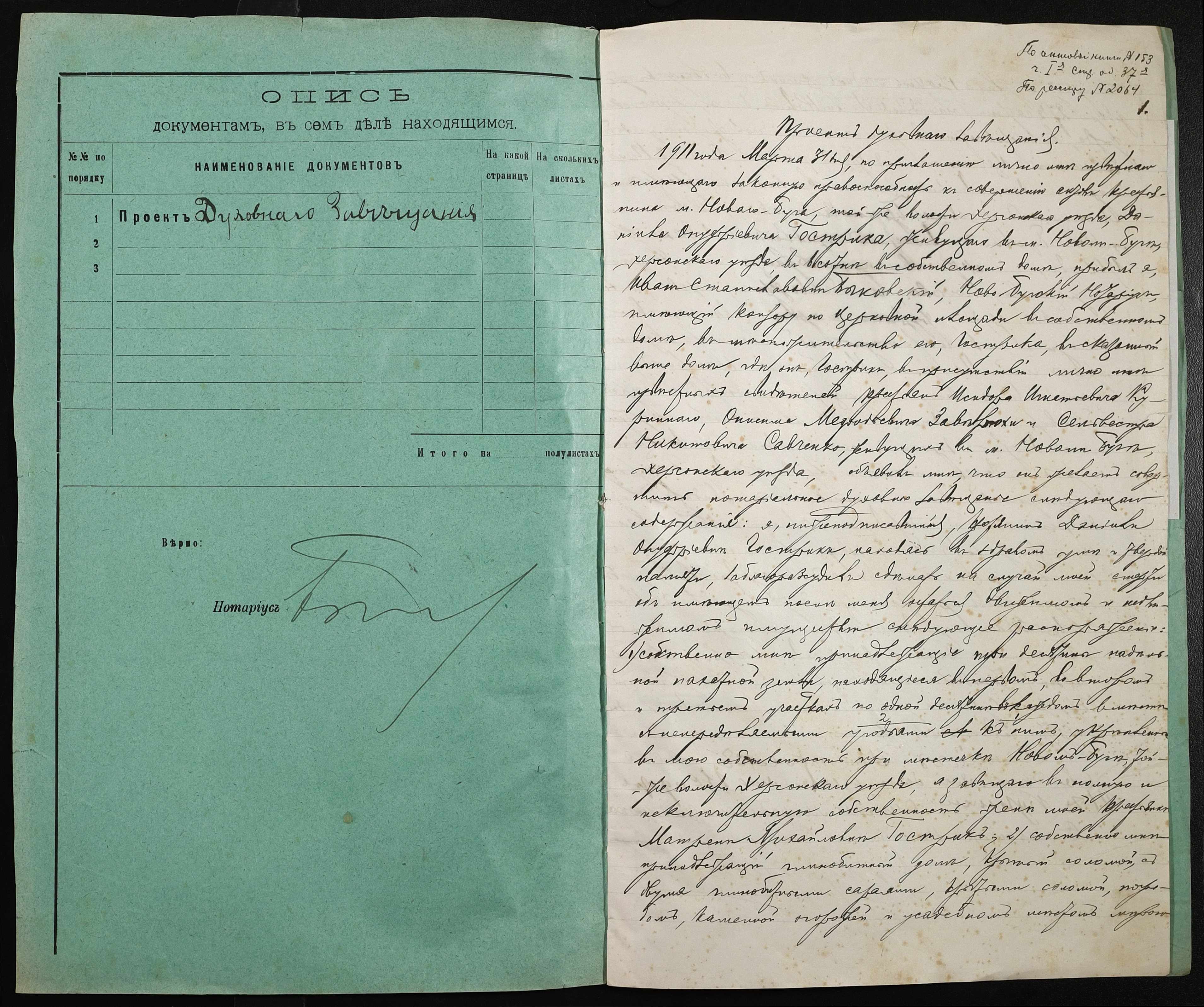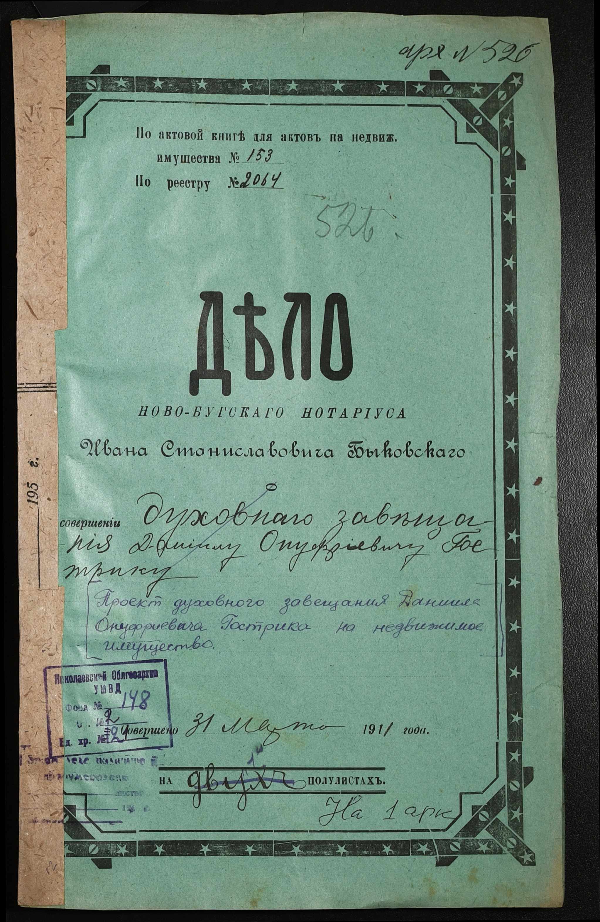 • • • • Справа № 21 “Проєкт духівниці на нерухоме майно Гострика Даниїла Онуфрійовича (Даниила Онуфриевича)”