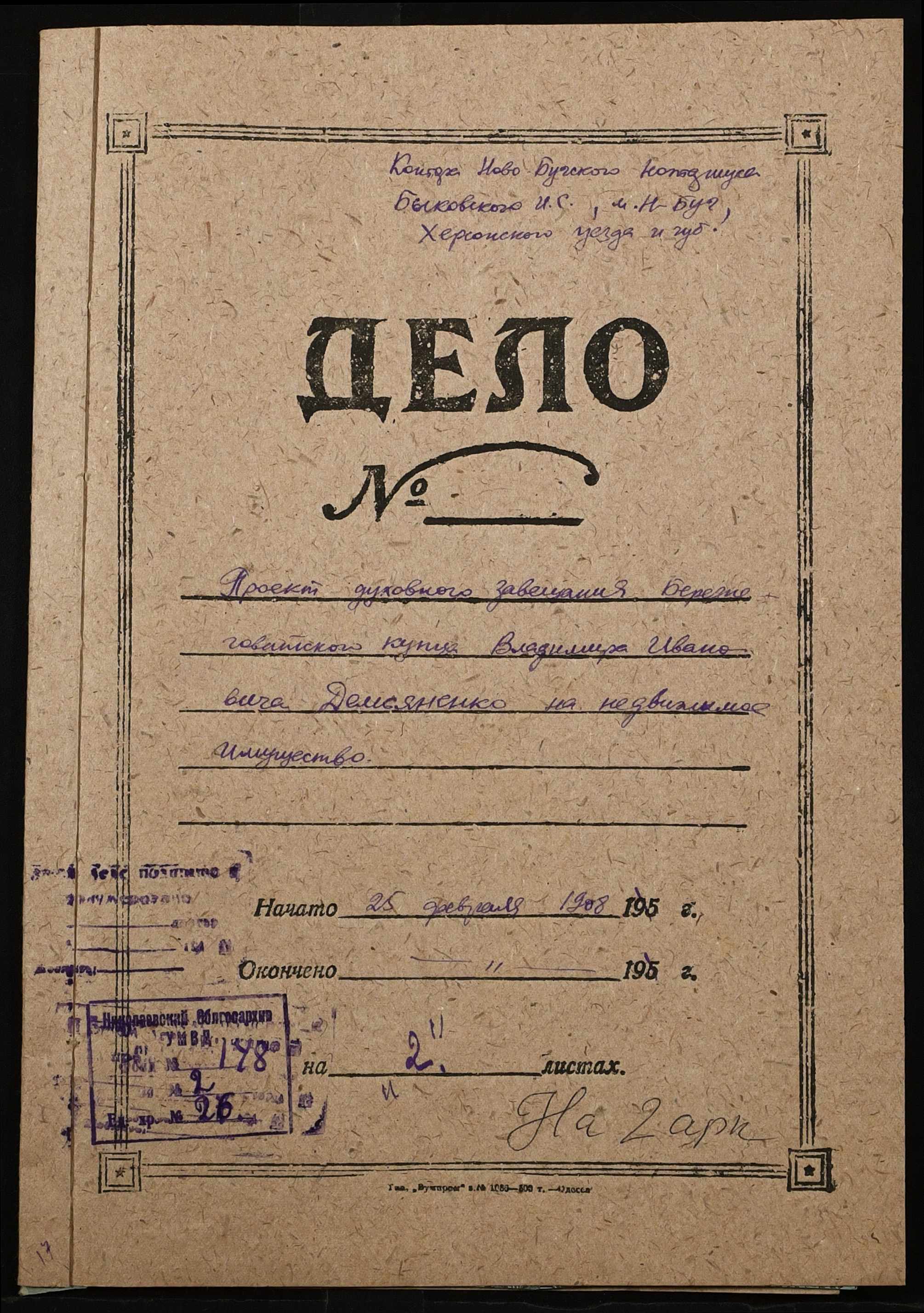• • • • Справа № 26 “Проєкт духівниці на нерухоме майно Дем’яненка Володимира Івановича (Демьяненко Владимира Ивановича)”