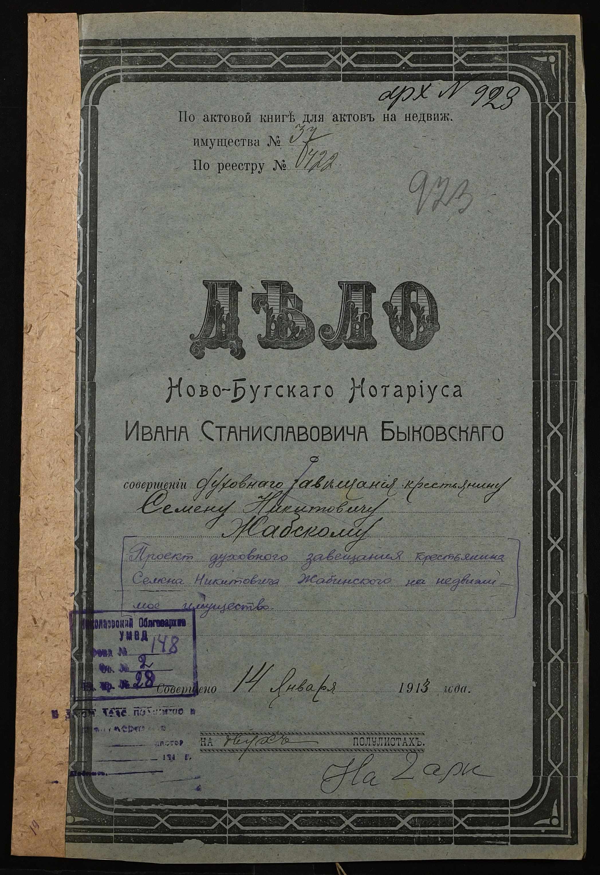 ◦ ◦ Фонд № 148 “Контора новобузького нотаріуса Биковського Івана Станіславовича”