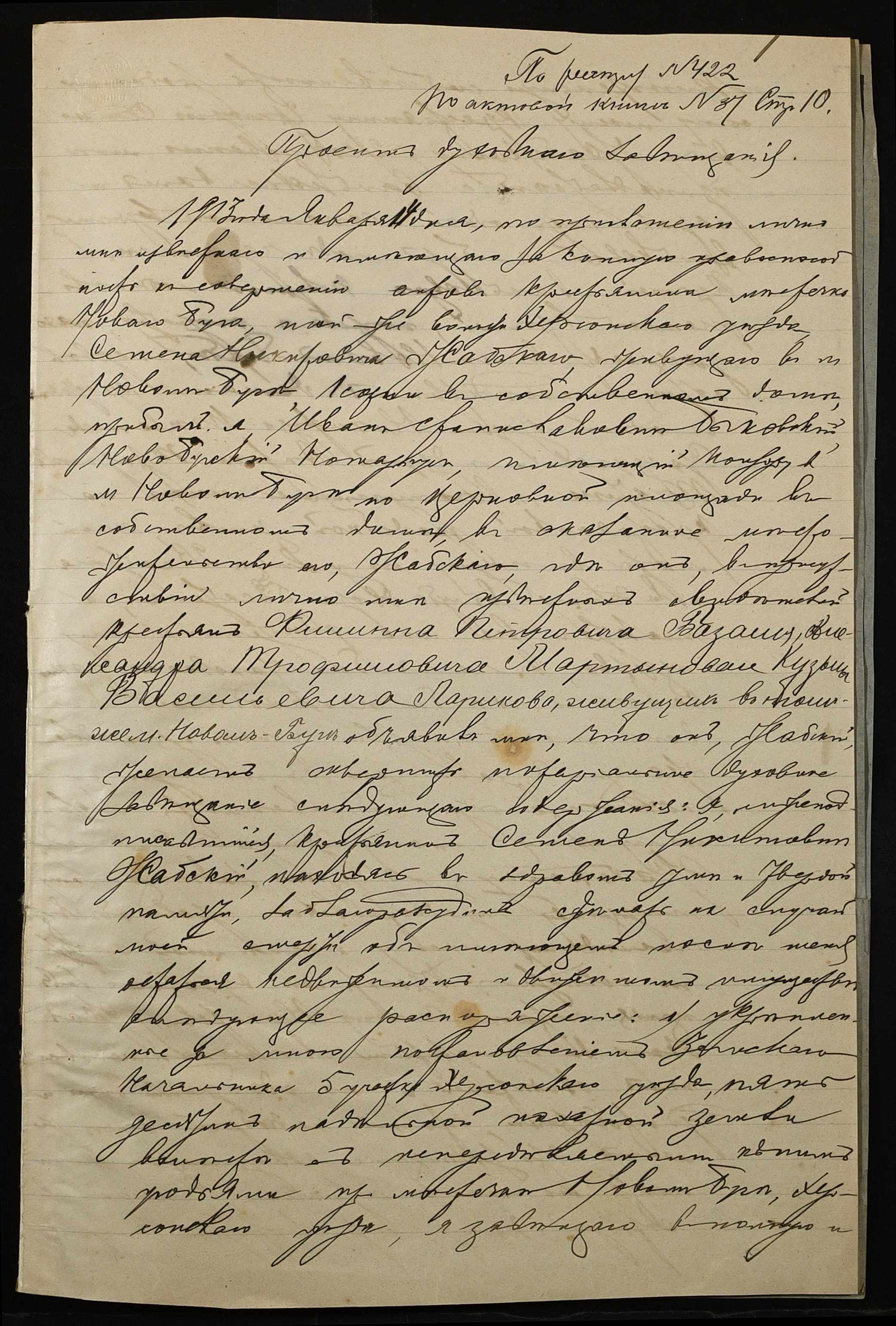 • • • • Справа № 28 “Проєкт духівниці на нерухоме майно Жабського (Жабского) Семена Микитовича (Никитовича)”