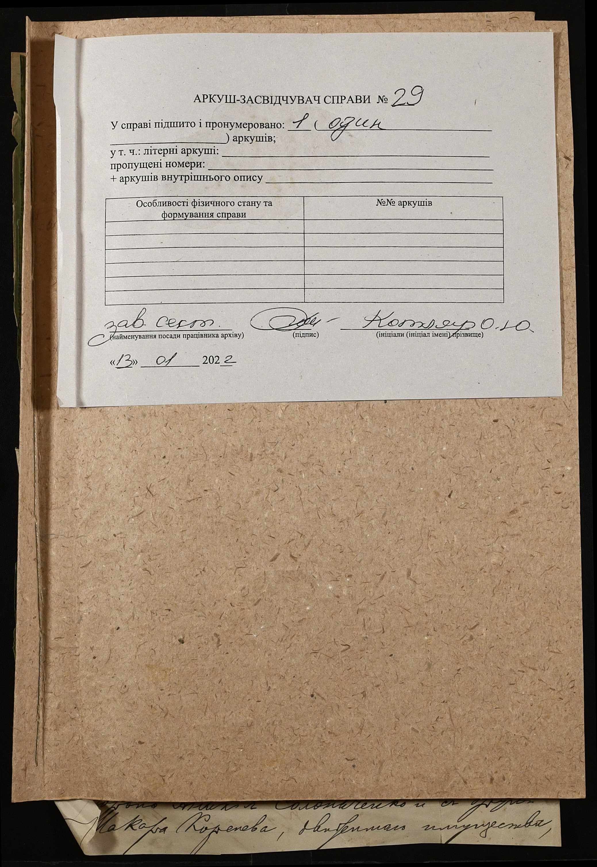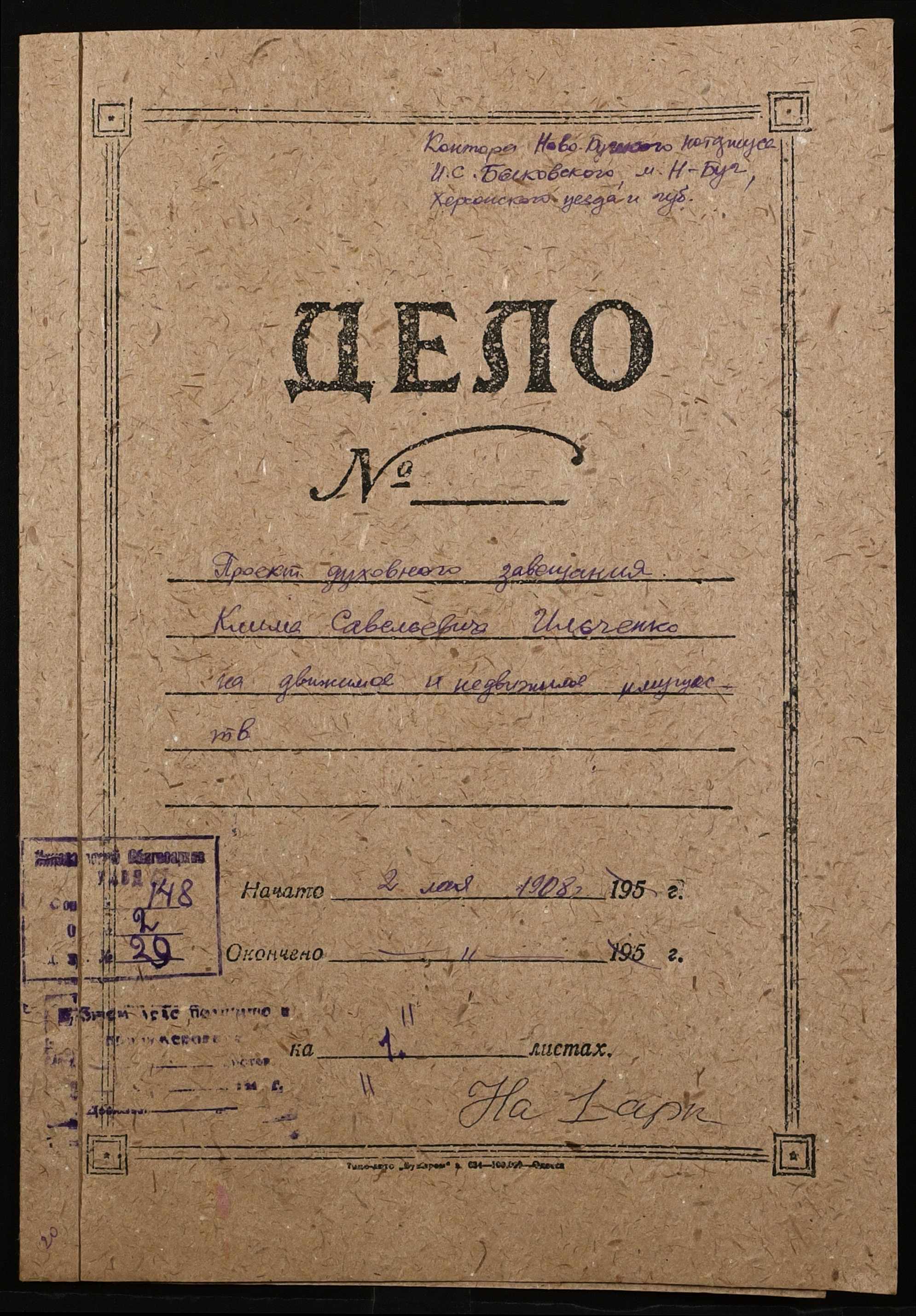 • • • • Справа № 29 “Проєкт духівниці на нерухоме майно Ільченка (Ильченко) Клима Савелійовича (Савельевича)”