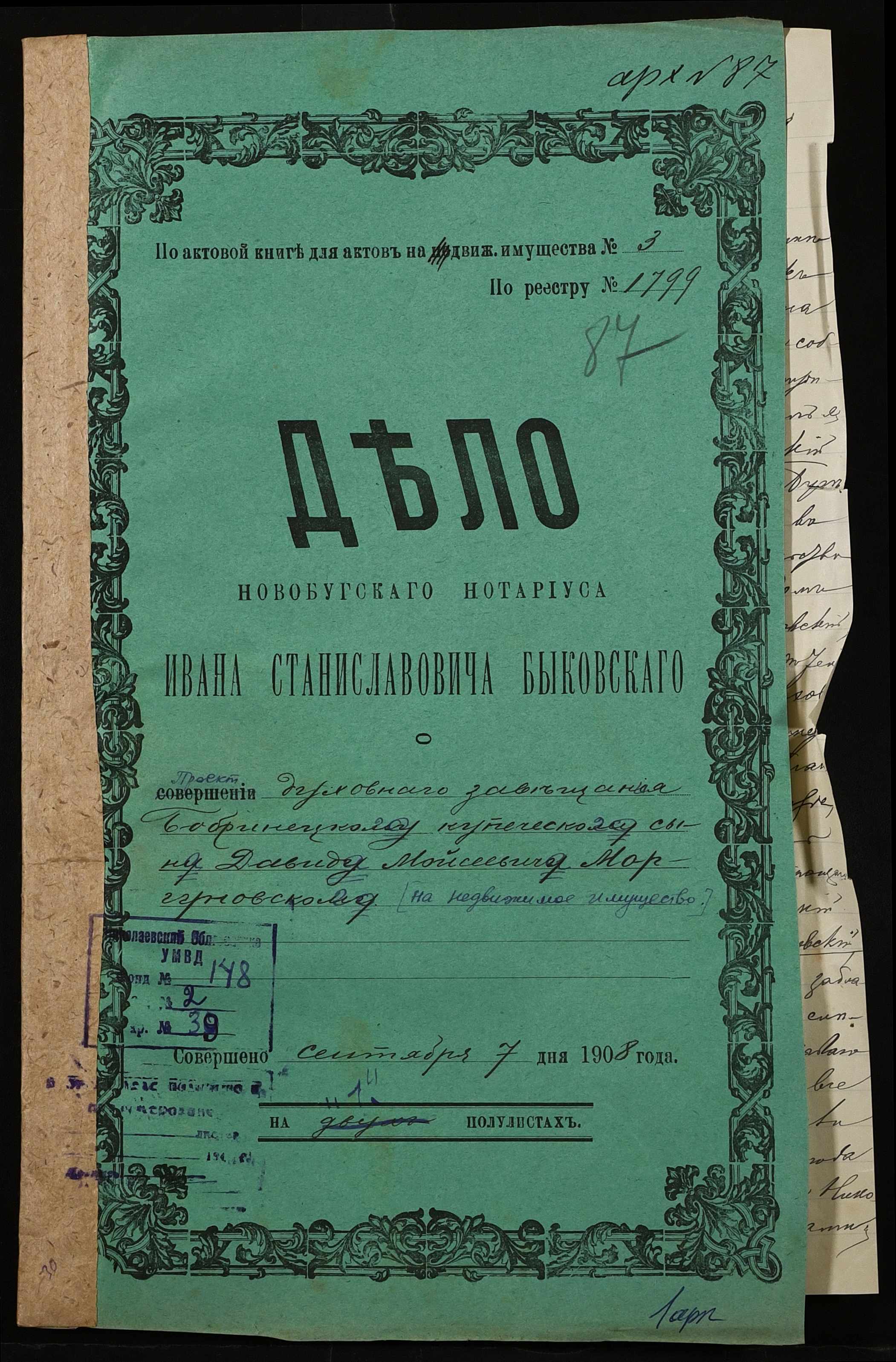 • • • • Справа № 39 “Проєкт духівниці на нерухоме майно Моргуновського (Моргуновского) Давида Мойсейовича (Моисеевича)”