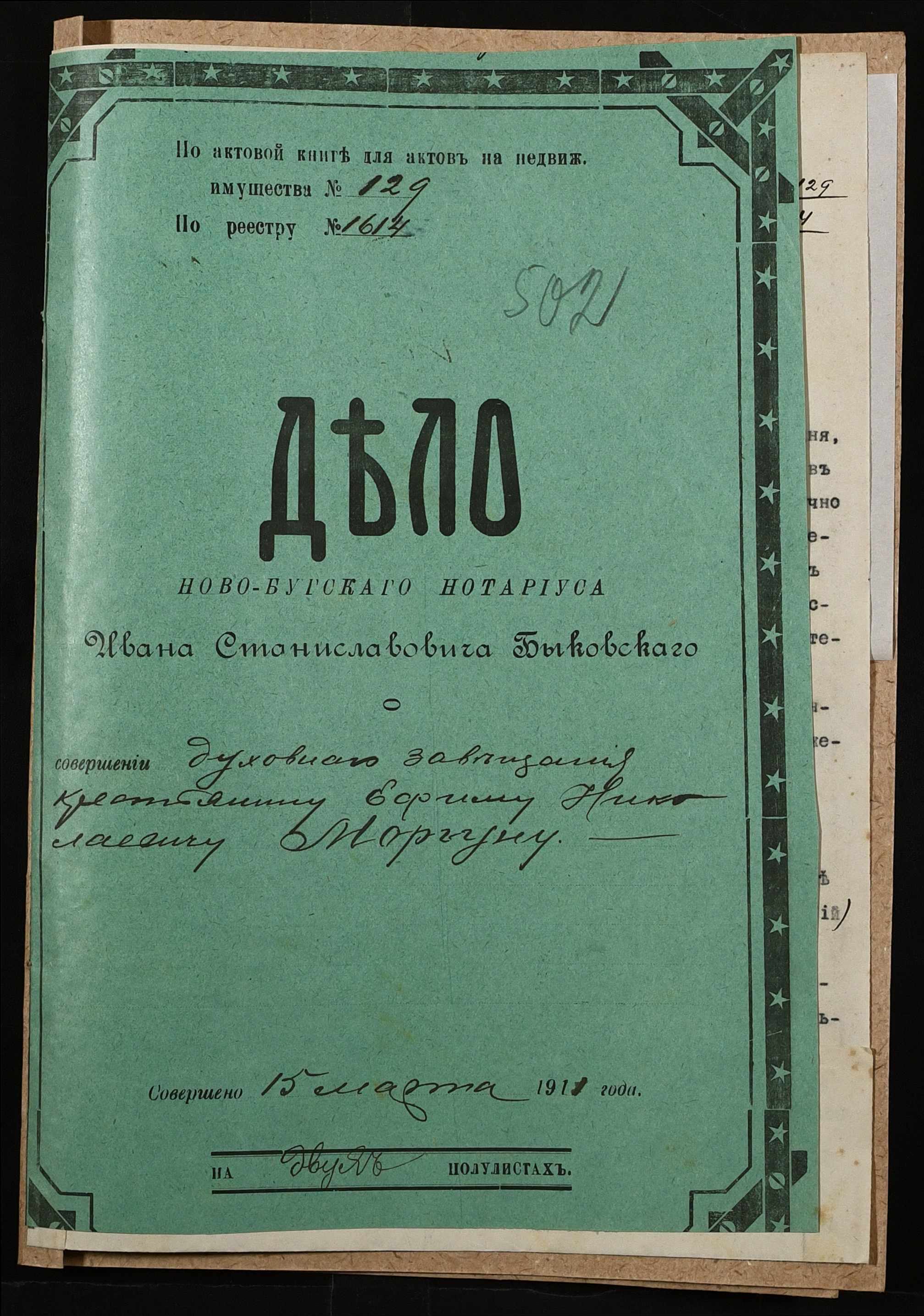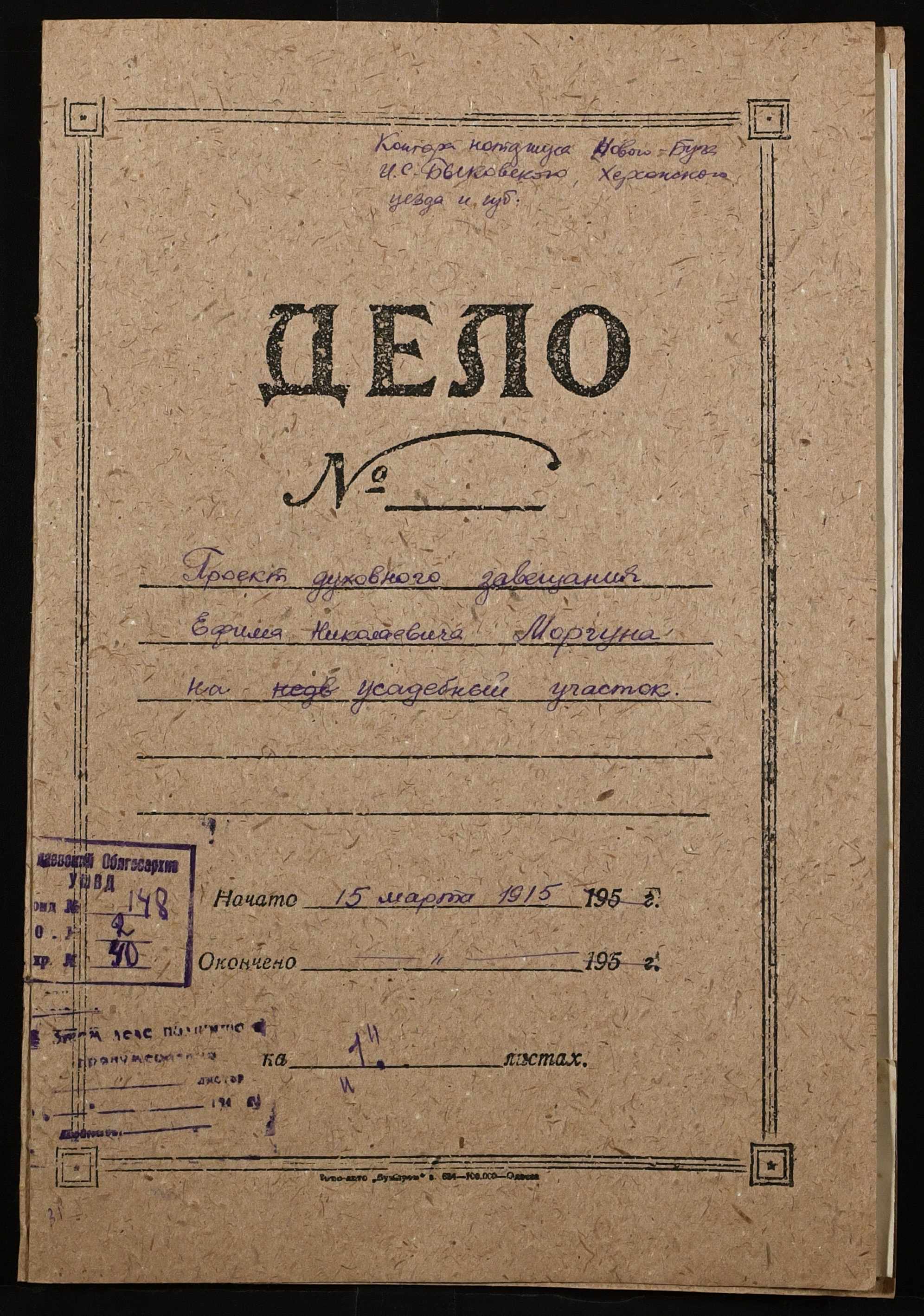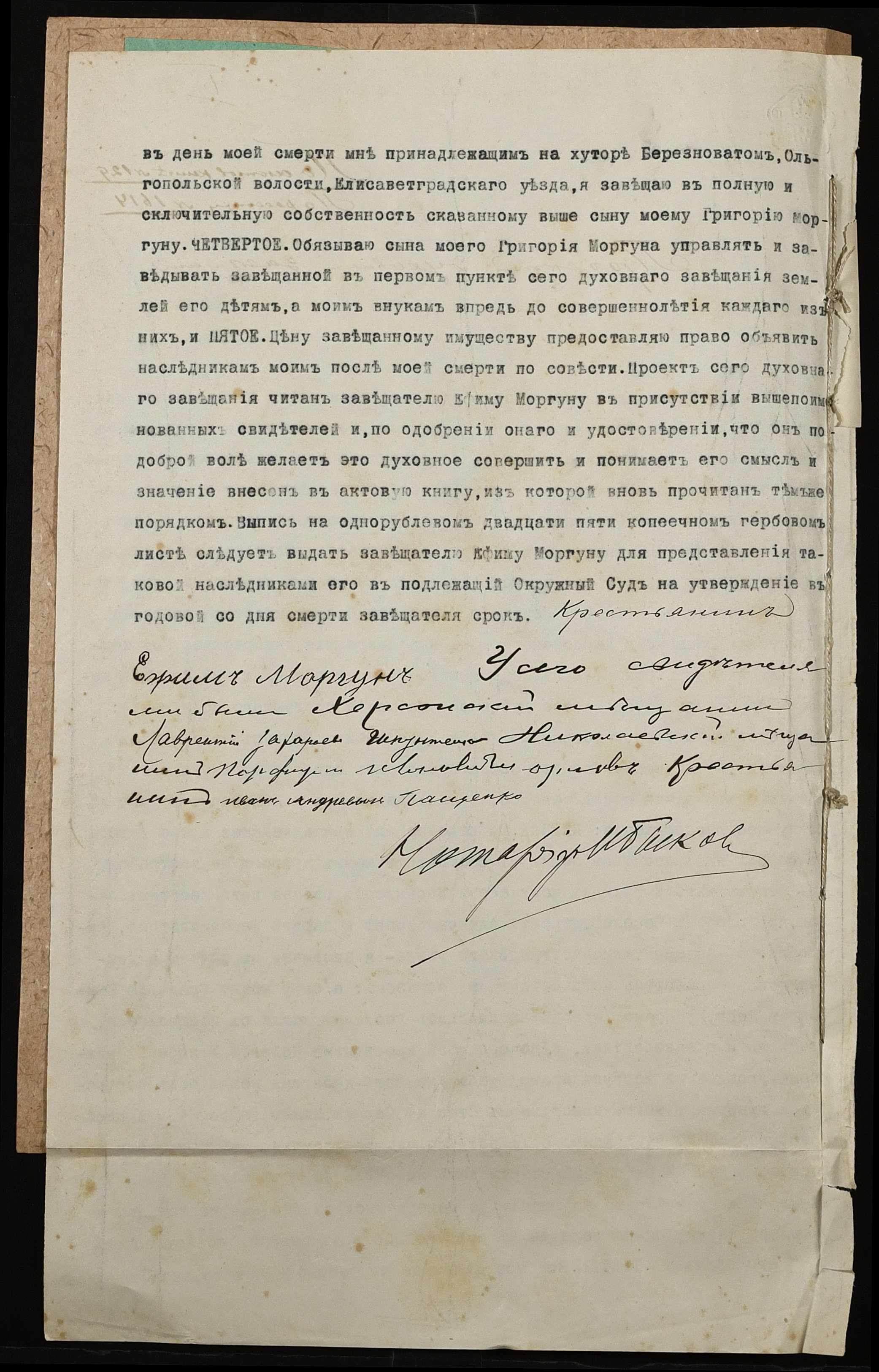 • • • • Справа № 40 “Проєкт духівниці на нерухоме майно Моргуна Юхима Миколайовича (Ефима Николаевича)”