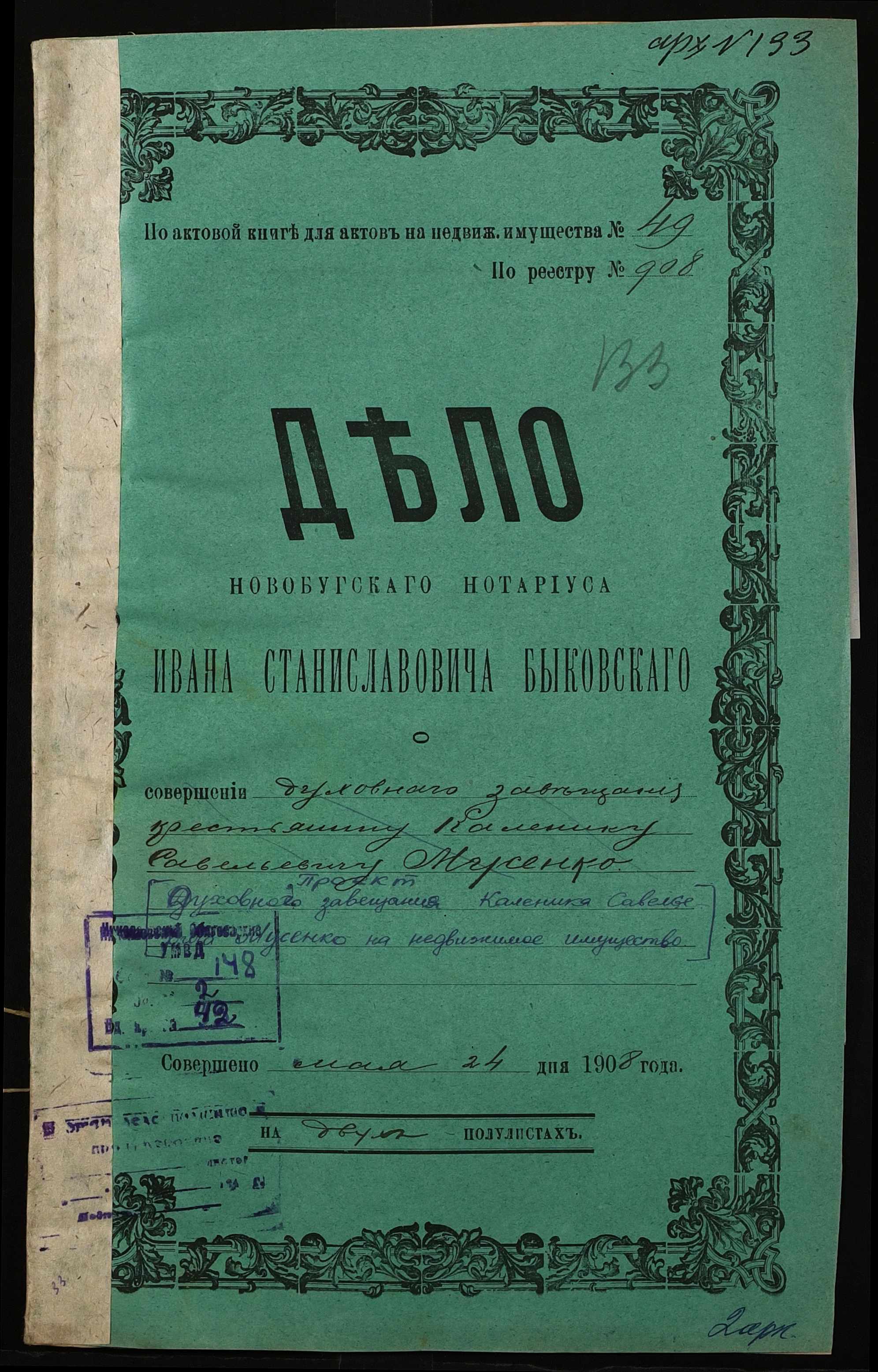 ◦ ◦ Фонд № 148 “Контора новобузького нотаріуса Биковського Івана Станіславовича”