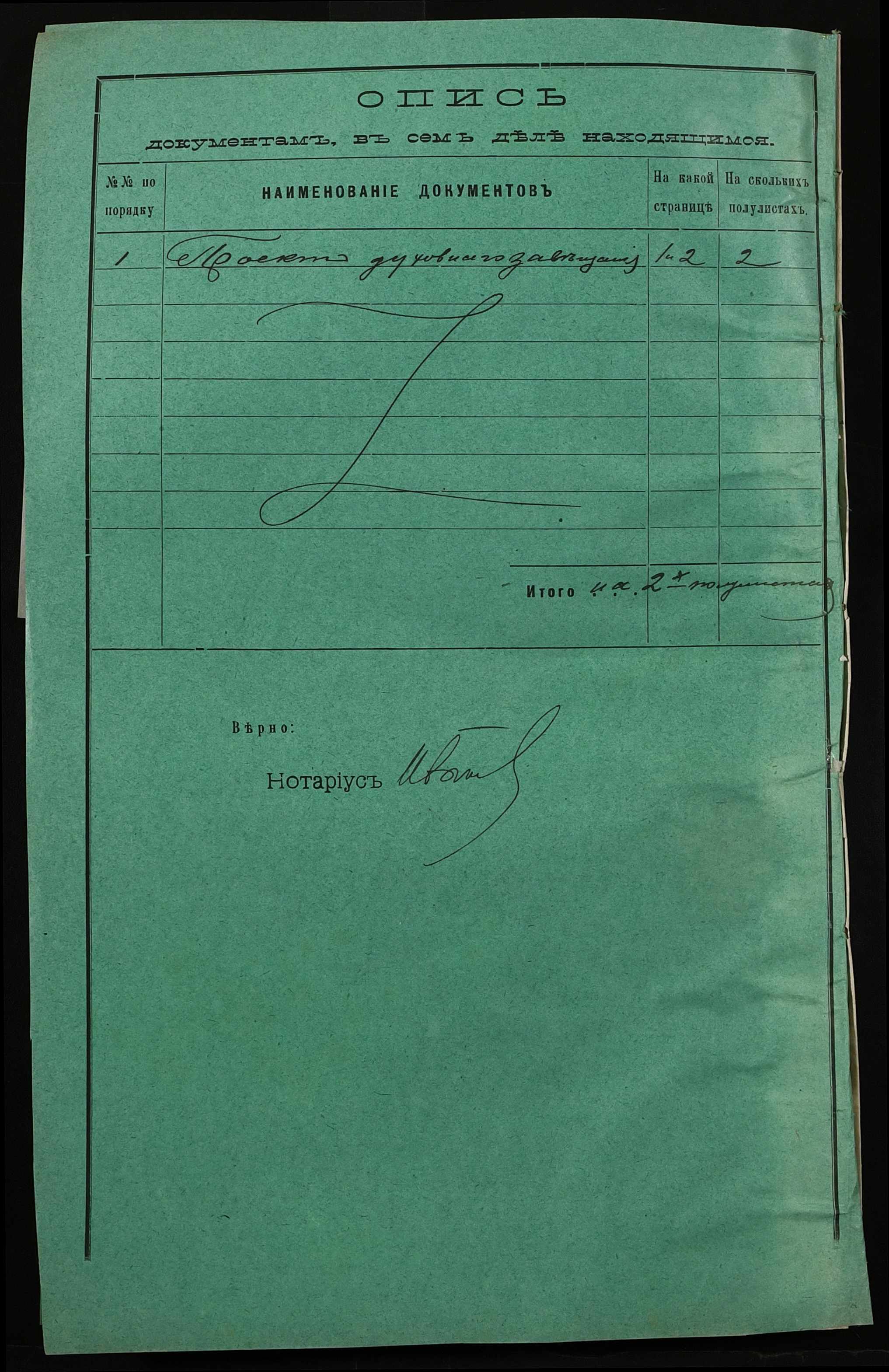 • • • • Справа № 42 “Проєкт духівниці на нерухоме майно Мусенка (Мусенко) Каленика Савелійовича (Савельевича)”