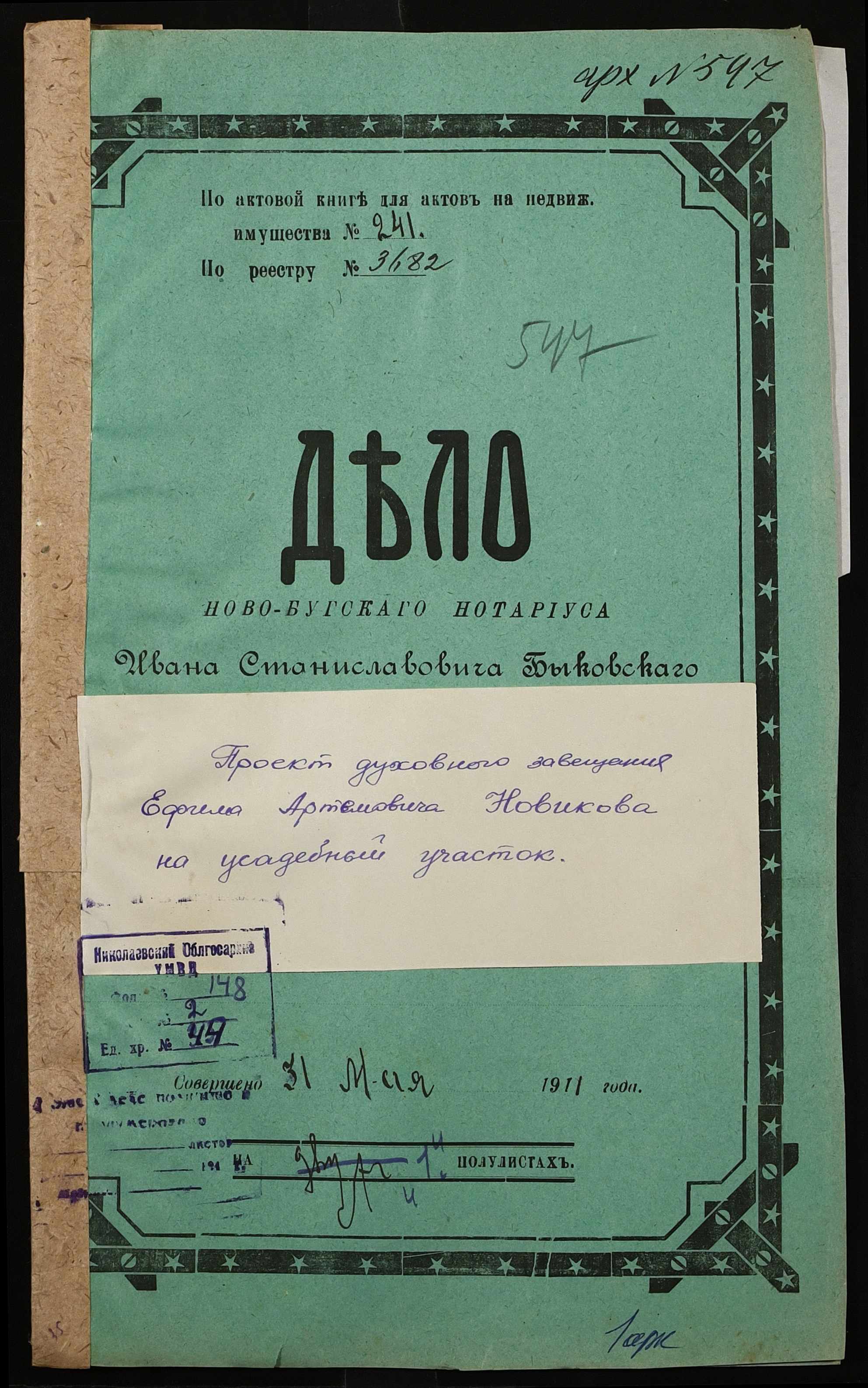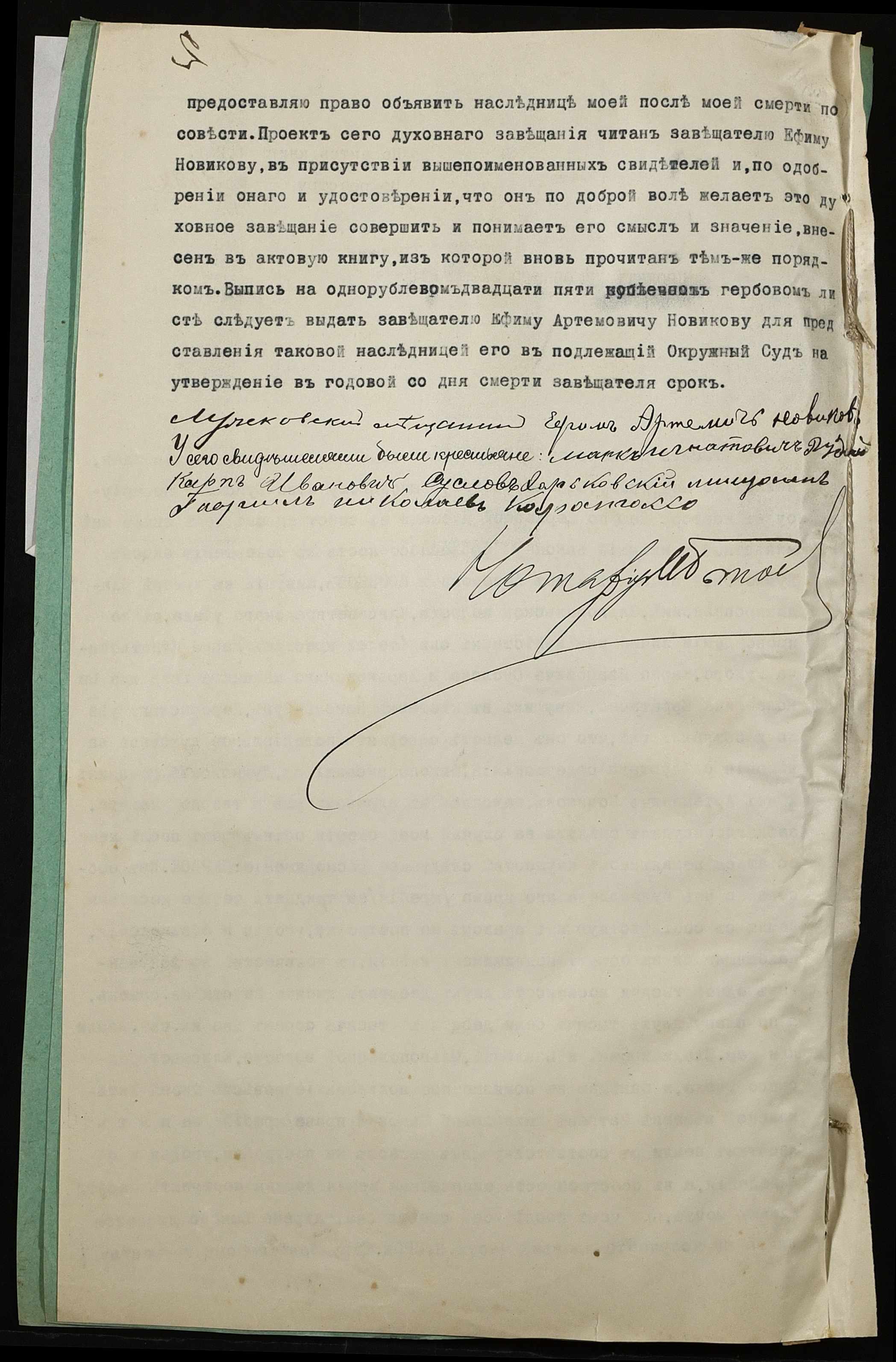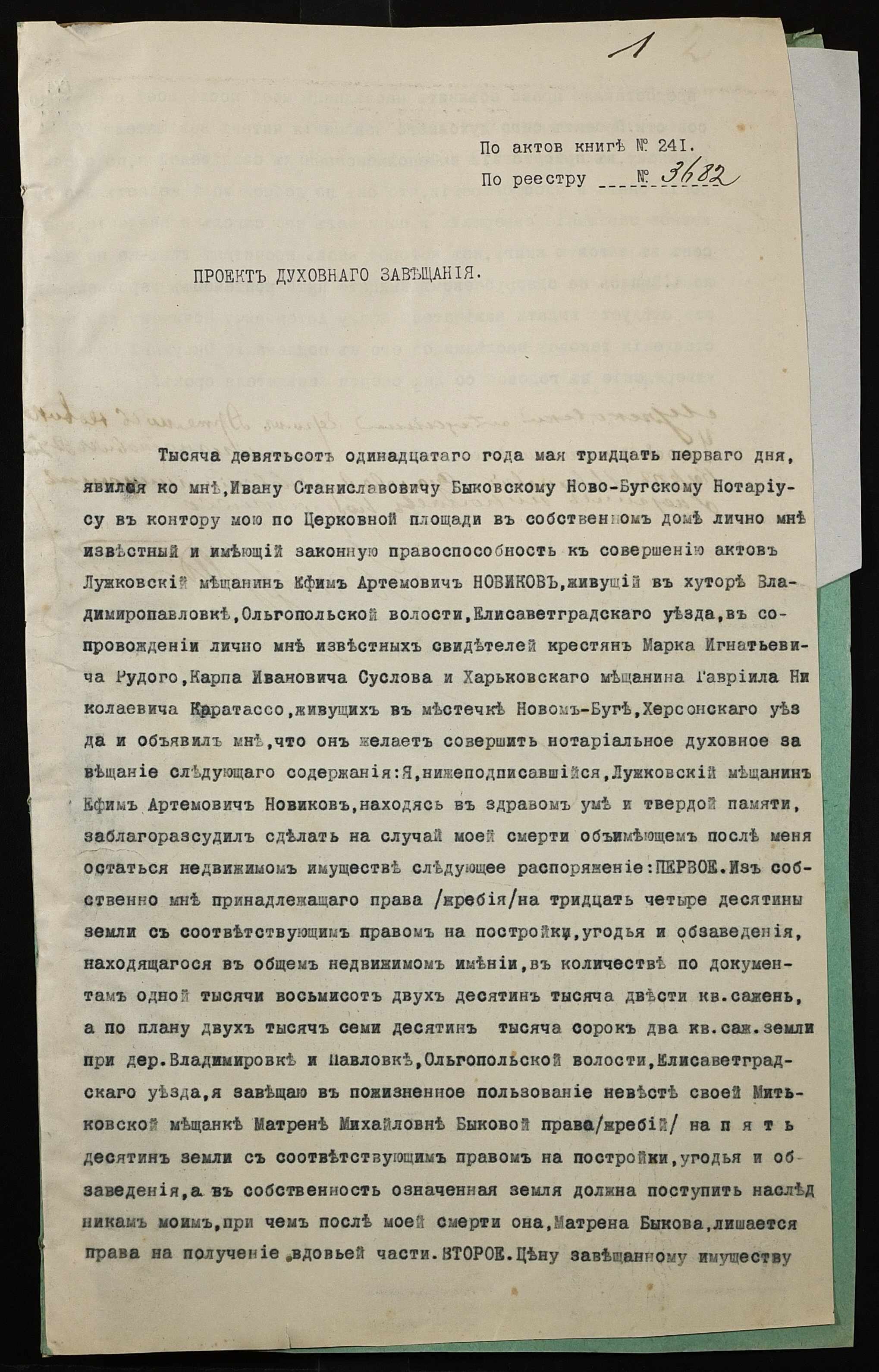 • • • • Справа № 44 “Проєкт духівниці на нерухоме майно Новикова Юхима (Ефима) Артемовича”